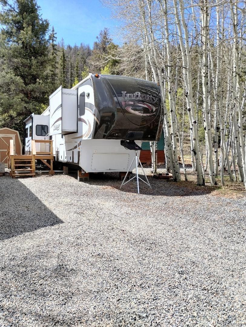 The perfect getaway!!!! This 2014 Infinity 5th Wheel and two sheds are included in the list price and are located in Campground of the Rockies Assoc.(CORA), a unique gated community with many, many amenities including, an indoor full size swimming pool, a community center with kitchen, multiple laundry and shower facilities, full time management staff, tennis/pickleball courts volleyball, archery range, playgrounds for the kids, private fishing pond and even stalls for your horse, if you should have one. From the deck you can sit and enjoy the cool mountain air. This is a great property that is priced to sell at $114,000!!!!