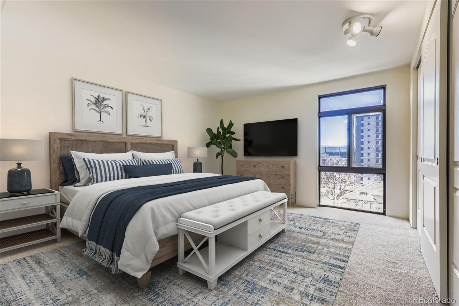 Perched on the 7th floor, this large and light-filled south-facing condominium offers sweeping mountain views and unforgettable sunsets. The thoughtfully designed two-bedroom, two-bath residence features an updated kitchen that is a true joy for cooking and entertaining, along with a convenient laundry room just off the kitchen that provides generous pantry and storage space. Ideally located on the edge of Capitol Hill, the building places you moments from popular restaurants, neighborhood parks, Trader Joe’s, and highly walkable streets, with easy access to major highways and downtown. Residents enjoy an impressive array of amenities, including a pool, hot tub, sauna, fitness center, tennis court, and dedicated spaces for meetings or relaxing with friends over a game of pool. The HOA includes internet and cable, adding to the ease of condo living. Secure underground parking ensures convenience and peace of mind, with additional guest parking available, plus a private storage locker. Quietly situated above the bustle of the street, this home delivers comfort, convenience, and stunning views—an exceptional opportunity in a sought-after location.