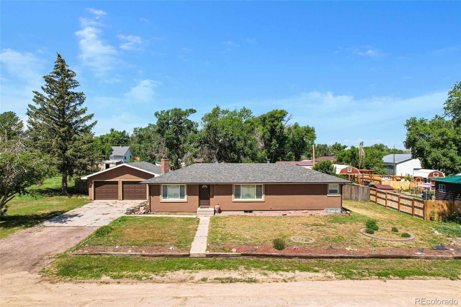 Take a look at this all stucco rancher on almost a half acre. Inside is spacious and set up for main floor living. Walk into the open and bright great room featuring hardwood floors and bay window from the front door. The main also has living area with fireplace, kitchen, laundry, powder room and primary suite. Downstairs boasts 2 additional bedrooms, 3/4 bath, family room and storage. 2 car attached garage is large enough for tools and toys. Backyard is fully fenced and has a large covered patio perfect relaxing or entertaining. Make sure you take a look at this one.