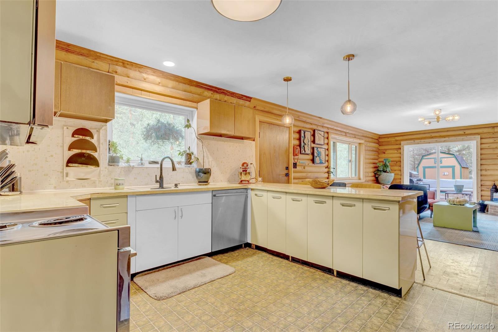 This 2 bedroom, 1 bath mid-century modern log home is just minutes from Highway 285, yet provides a secluded and serene feeling. Located on a 1.04-acre lot, sit out on the newly constructed deck under the towering pines. Enjoy cooking in the retro style kitchen with a new Bosch dishwasher and Samsung refrigerator. Upgrades include all new energy-efficient windows and new Rheem water heater.