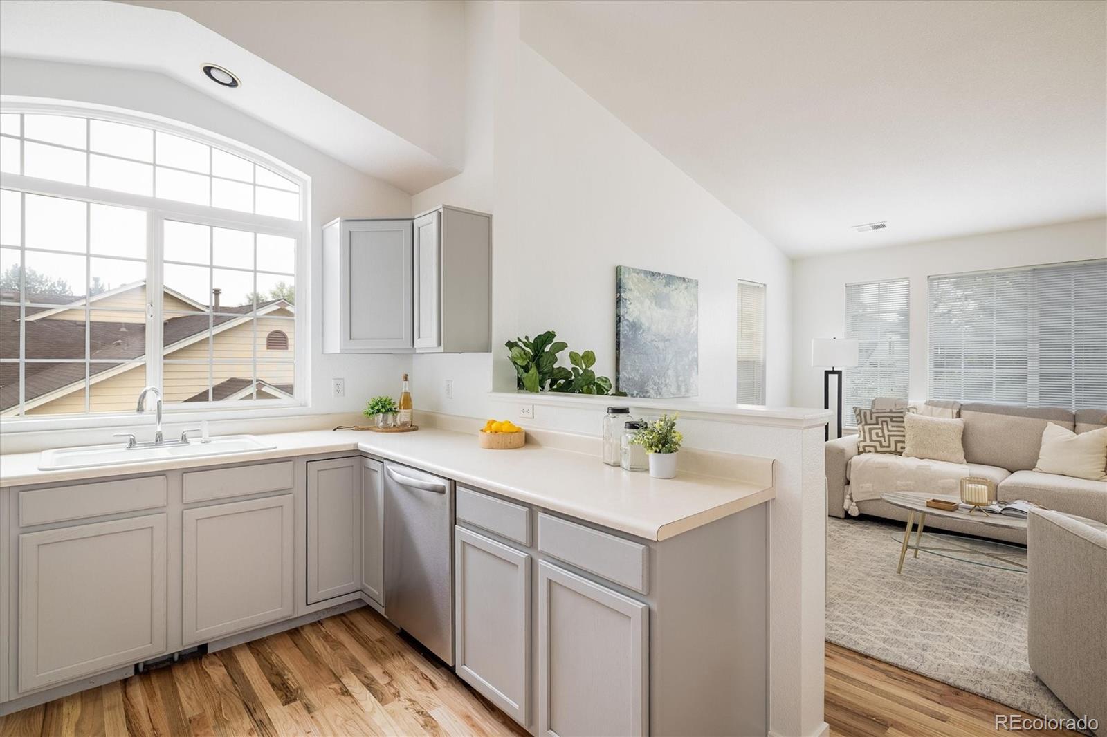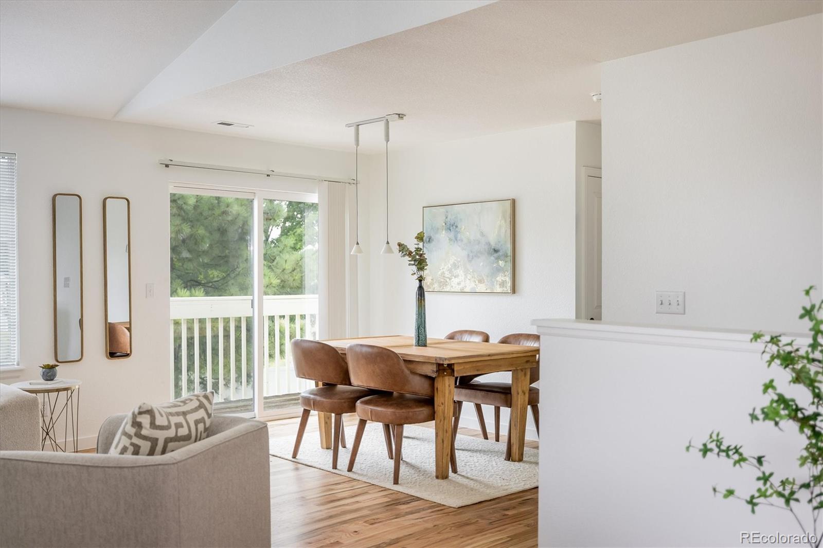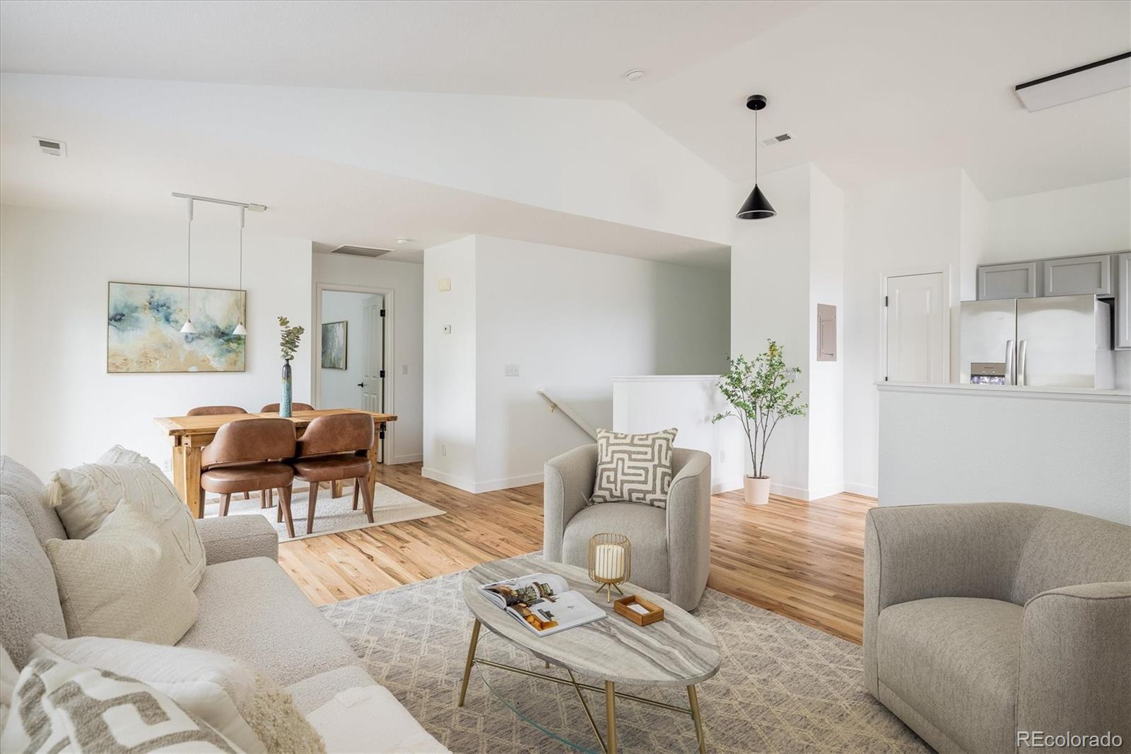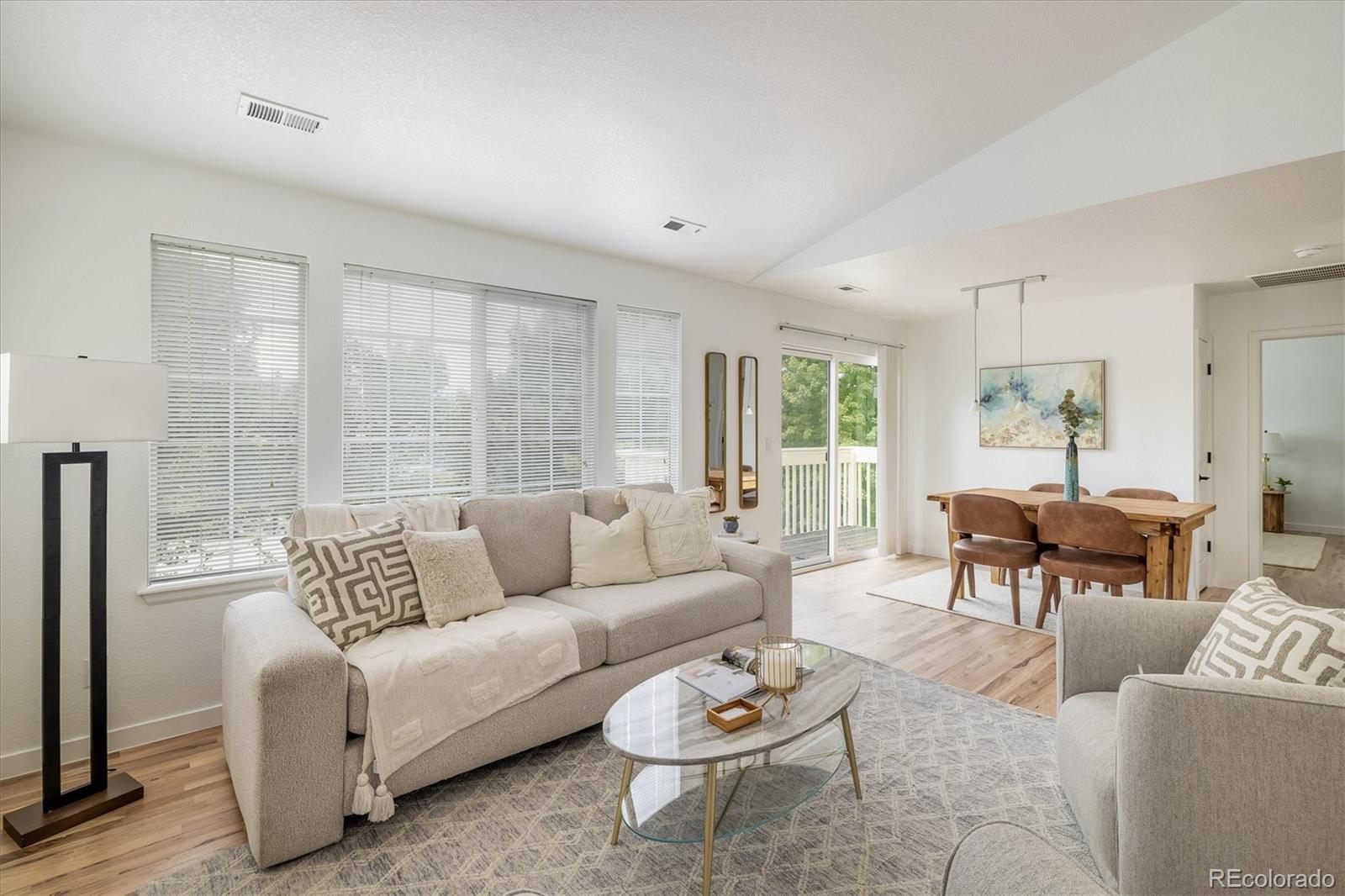 OPEN HOUSE THIS SATURDAY FROM 10AM-12PM!! Rarely Available End Unit Condo with Vaulted Ceilings & Prime Location! Opportunities like this don’t come often - these sought-after condos are rarely on the market! Nestled in a peaceful, tucked-away corner of the Villages at Horizon Pointe community, this ranch-style end unit offers the perfect blend of privacy and modern convenience. Enjoy main-floor living with just one flight of stairs up to your home, with no neighbors above and soaring vaulted ceilings throughout. The oversized attached one-car garage includes extra storage space and a private driveway, a rare and valuable feature. Recently remodeled, this home is truly move-in ready. You'll love the newly installed REAL oak hardwood floors, fresh interior paint, brand-new stainless steel appliance package, updated lighting, and stylish hardware throughout. Soak in the sunshine from your southwest-facing deck, which overlooks the scenic Big Dry Creek Trail and offers seasonal mountain views. With the trail system and open space just steps from your door, it's a Colorado outdoor lover’s dream. The well-maintained community features low HOA dues, beautifully kept grounds, and ample guest parking. Ideally located between Boulder and Denver, commuting is a breeze, and you’re just minutes from shopping, dining, and everyday conveniences.