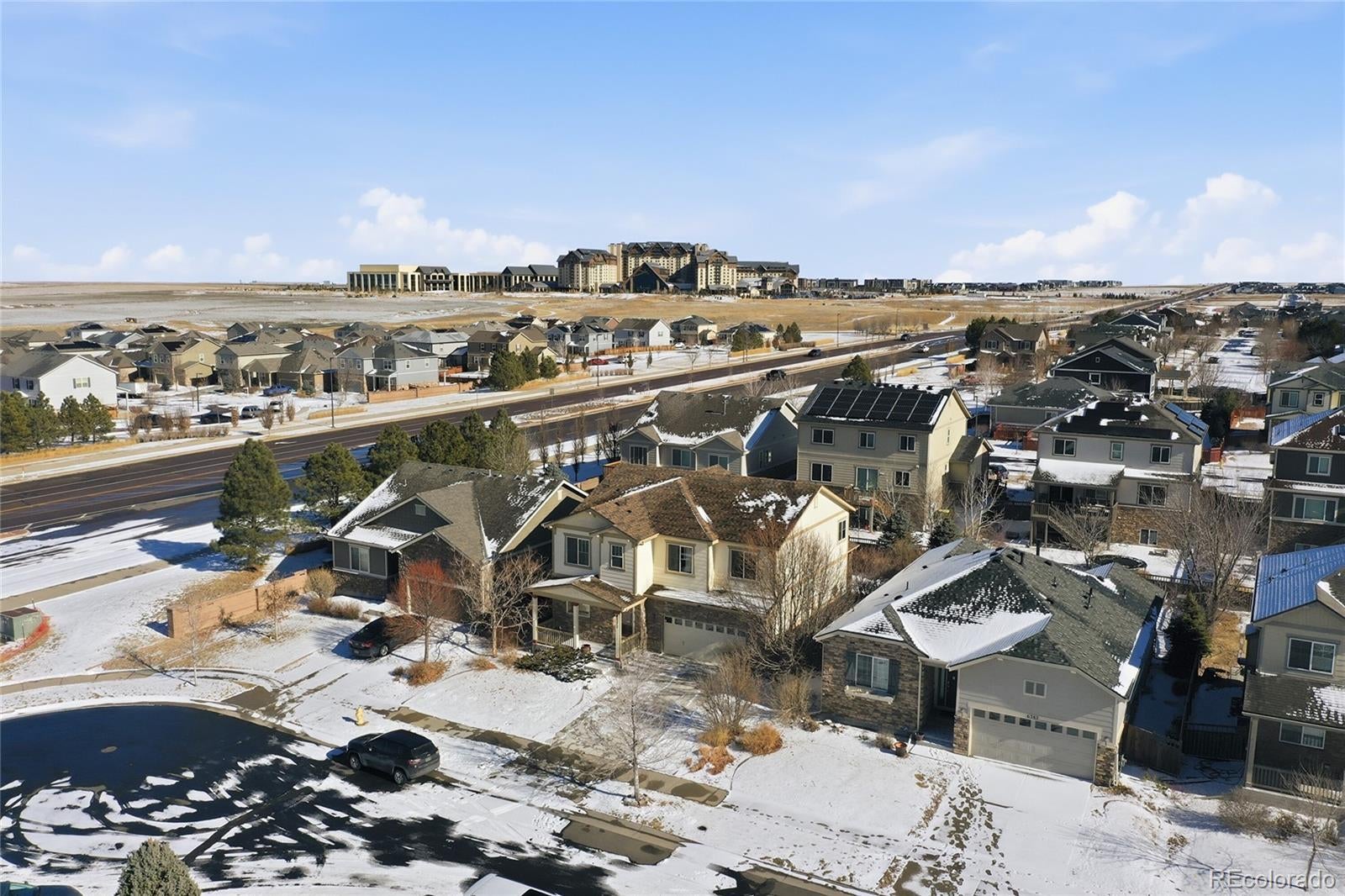 Welcome to a home designed for the rhythm of modern family living—where space, style, and long-term value come together. This former Richmond Homes model offers thoughtful design and flexibility for buyers ready to move into their next chapter without compromise. At the front of the home, a private study provides the ideal setup for working from home, managing daily life, or creating a quiet retreat—perfectly positioned away from the main living areas for added focus and privacy. The heart of the home features a gourmet-style kitchen equipped with stainless steel appliances, a double oven, glass cooktop, and overhead microwave, making it both functional and ideal for entertaining. The kitchen flows seamlessly into the open living and dining spaces, creating a natural gathering place for everyday life and special occasions. Upstairs, a large loft offers flexible additional living space—ideal for movie nights, a game room, or a secondary entertainment area—while spacious bedrooms provide comfort and privacy for every member of the household. Step outside to a covered backyard patio with room for patio furniture and a future hot tub, extending your living space and creating the perfect setting for relaxing evenings and weekend gatherings. Location further elevates this home’s appeal. Enjoy close proximity to the Gaylord Rockies Resort and the convenience of a future walkable shopping center featuring retail, dining, and family-friendly entertainment. The neighborhood is thoughtfully designed with parks throughout, and the home is adjacent to Painted Prairie, home to one of the largest and newest parks in the metro area—ideal for active lifestyles and community connection. Families will appreciate access to local schools serving elementary through high school, supporting stability and long-term ownership. Designed for today’s needs and tomorrow’s growth, this home offers space, flexibility, and a location built for lasting value. Homes like this are rare.