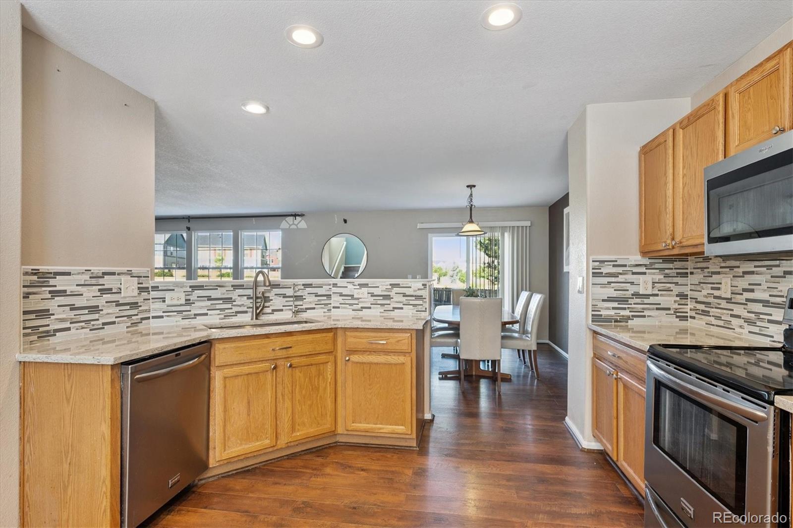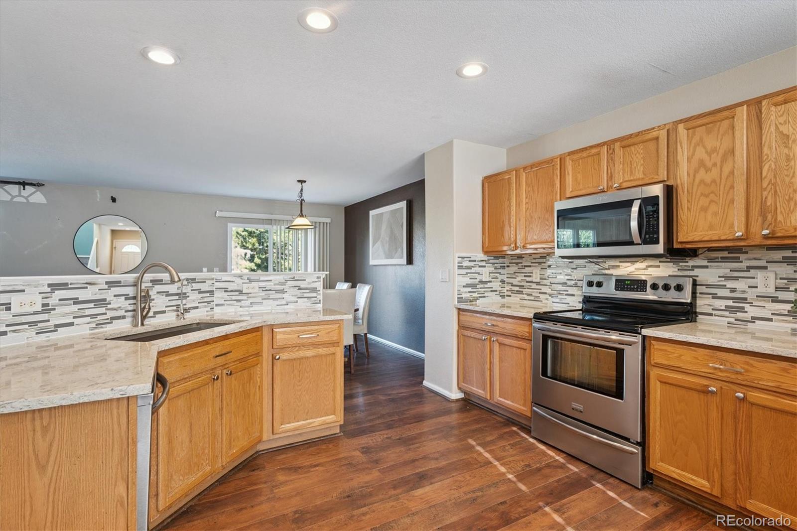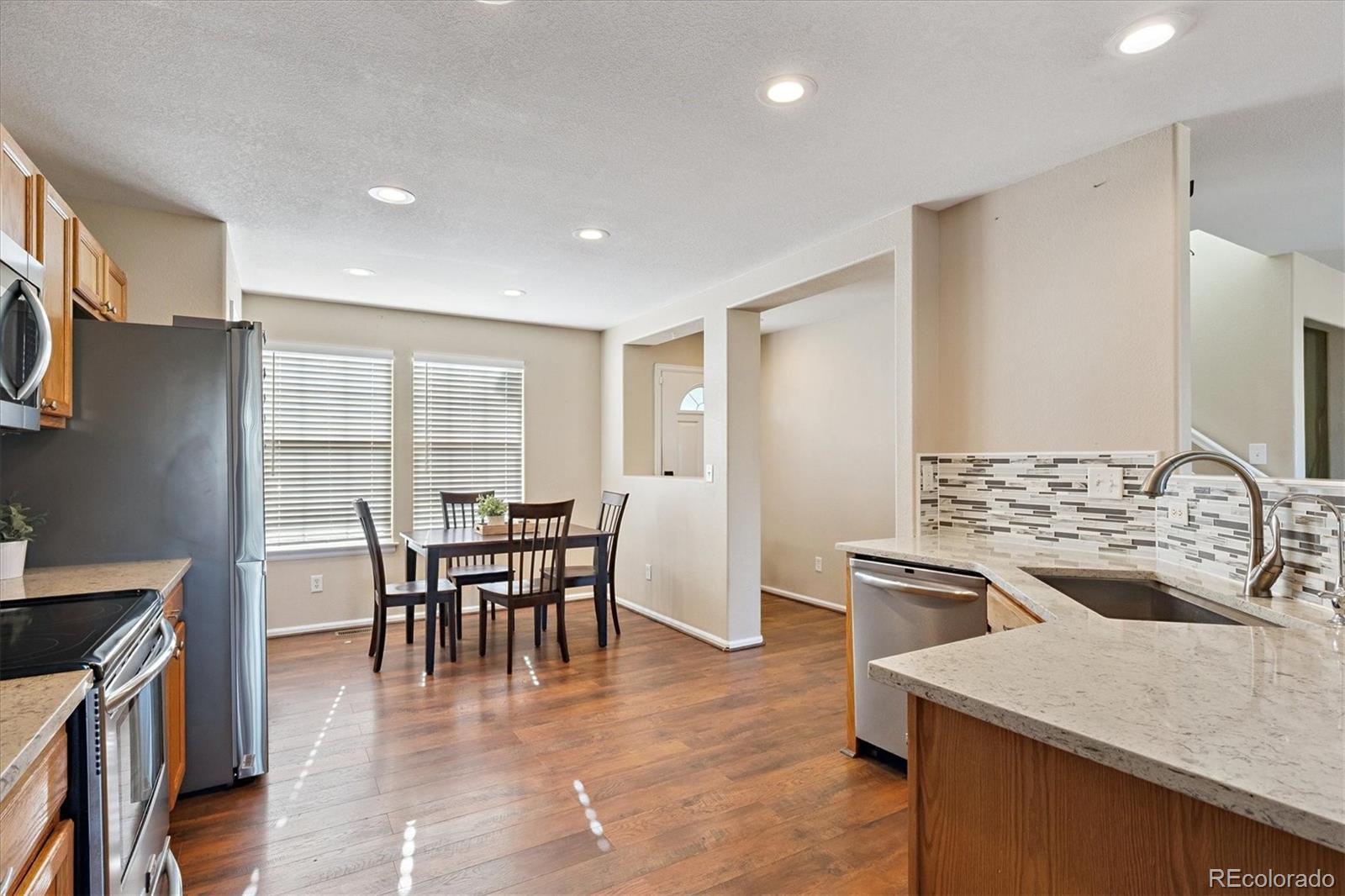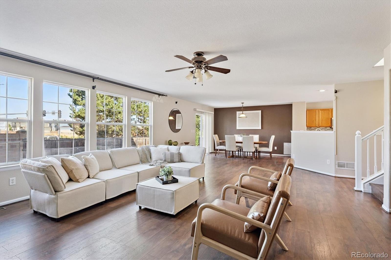 Live Your Best Life in Southcreek! Welcome to your dream home tucked away on a prime cul-de-sac lot in the sought-after Southcreek neighborhood — where comfort, style, and location collide! Come inside and fall for the bright, open-concept kitchen, complete with crisp quartz counters, a sleek tile backsplash, newer stainless steel appliances (including a brand-new fridge with ice ball maker!), cabinet lighting, a walk-in pantry, and a sun-soaked breakfast nook — ideal for morning coffee or midnight cravings. Kick back in the spacious living room with a cozy gas fireplace for movie nights, or host dinner parties in your open dining area. A chic powder room and laundry zone with linen closet make the main floor as functional as it is fabulous. Head upstairs and be greeted by a versatile loft — think home office, play space, or chill zone — plus a primary suite with an updated 3/4 bath, dual-sink vanity, and a walk-in closet. Two additional roomy bedrooms and a full bath complete the upper level. Ready to entertain? Head to the finished basement — your new hangout haven — with a built-in wet bar, fridge, wine fridge, game/family room, 3/4 bath, and a workshop with built-in benches. Major updates include a radon detection system (2021), a new furnace with humidifier and electrostatic filters (2021 & 2025), and a roof repair and sliding door replacement following hail damage (June 2024), house painted (2025) and newer windows = peace of mind for years to come! Outside, the fully fenced backyard with large patio is BBQ-ready and perfect for stargazing soirées or puppy playtime. All this in the Cherry Creek School District, near E-470, Parker Road, Broncos Training Camp, and steps from the Cherry Creek Regional Trailhead. Added bonus: a whole lineup of smart home features- automated door locks, garage door opener, Ecobee thermostat, RainMachine sprinkler system, Ring doorbell, and WiFi-enabled LED lighting. This home has it all — don’t let it slip away!