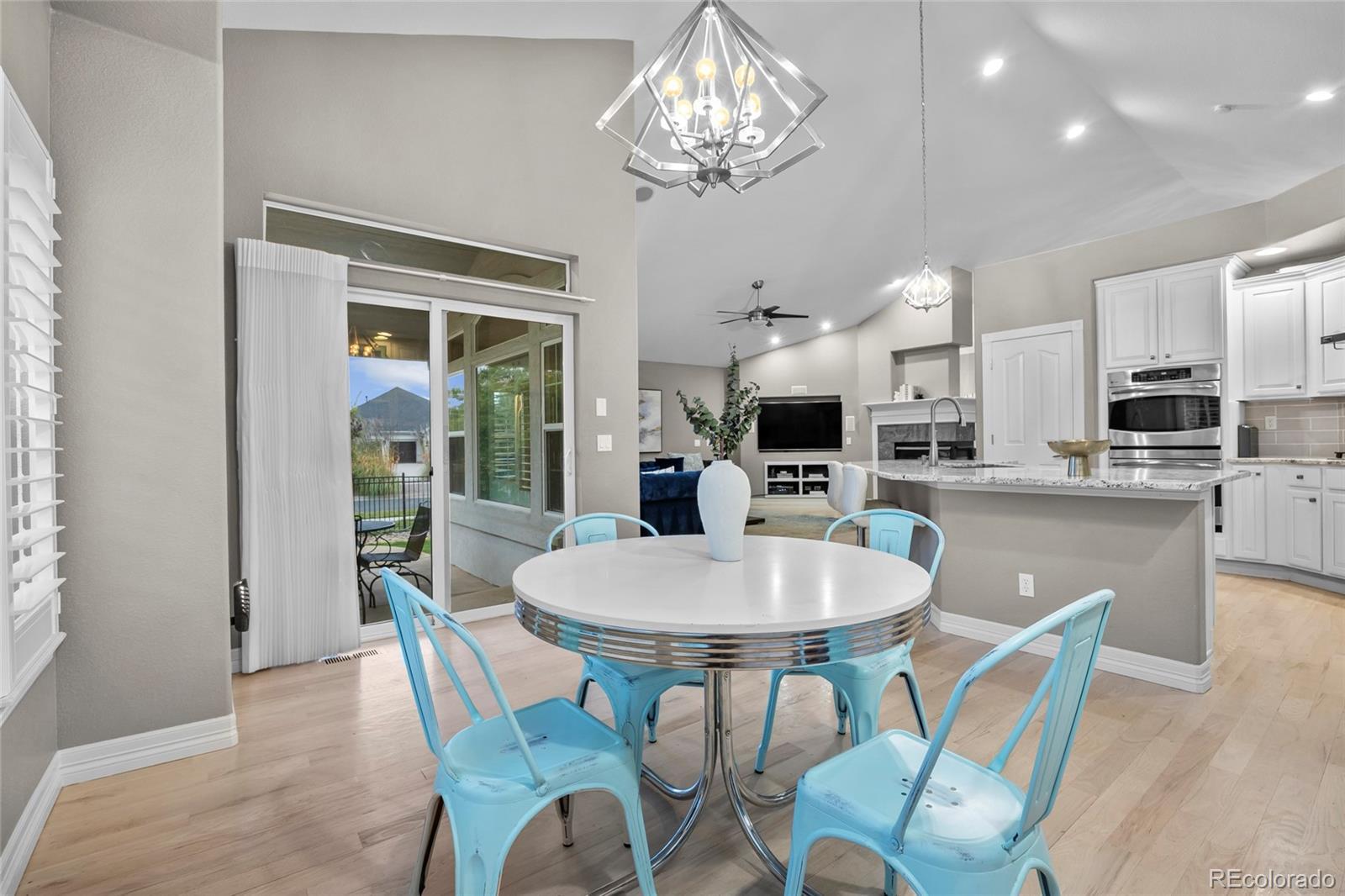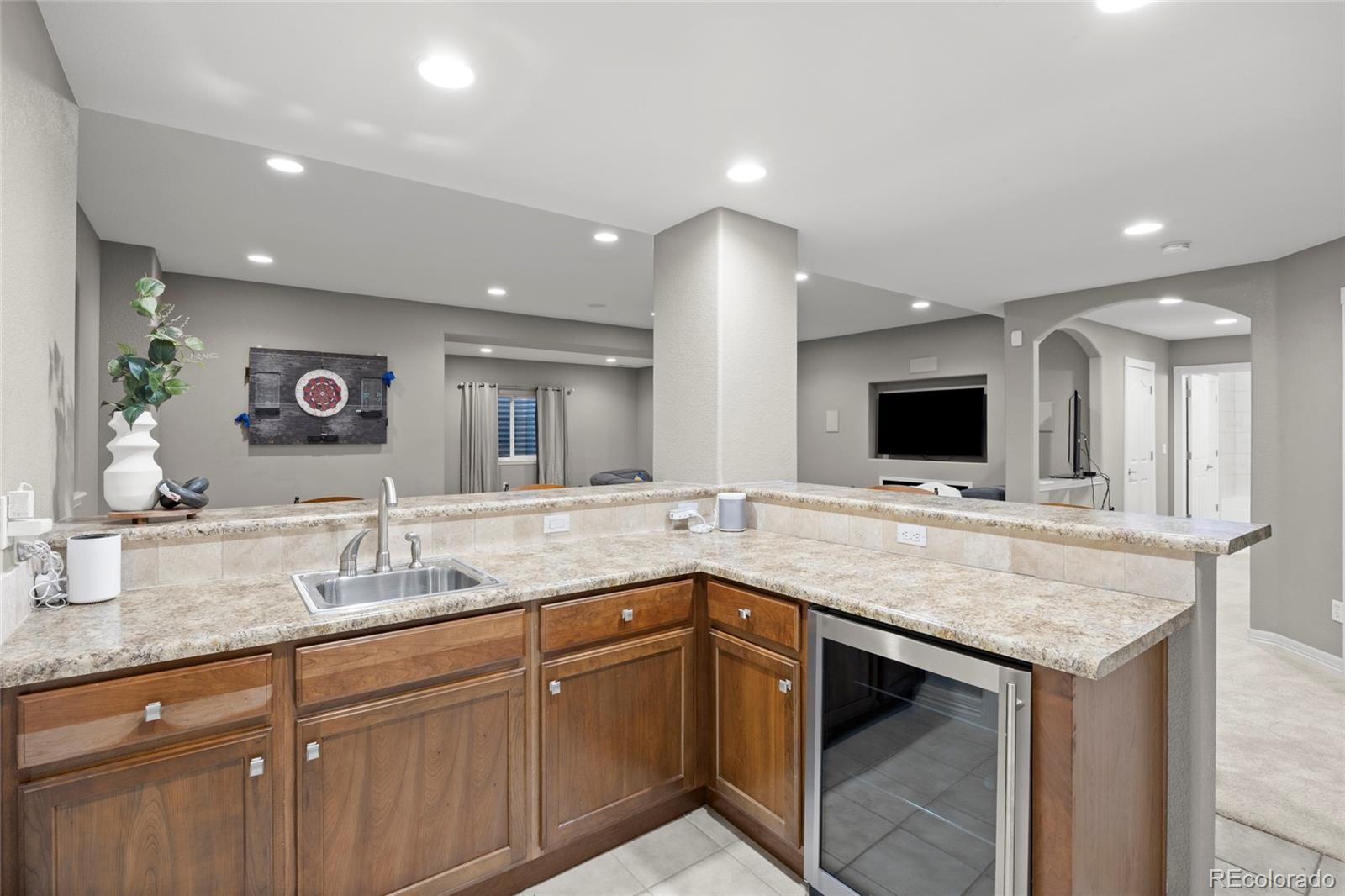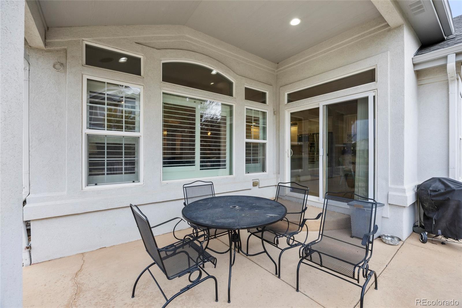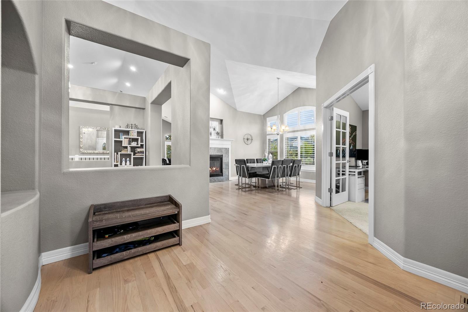 Your stunning ranch home in Blackstone Country Club awaits! This desirable corner lot features expansive main floor living, just steps from the golf course. You’ll enjoy cathedral ceilings, an open-floor plan, and a fully finished basement. Inside, find a bright, inviting living space with a modern kitchen - complete with a double oven, gas range and range hood, and plenty of pantry space. The kitchen expands into the eating area with a full coffee bar set up which is perfect for entertaining. The kitchen opens up quintessentially to the family room where you can catch your favorite show featuring un upgraded sound system, or cozy up to the dual-sided, gas fireplace which opens up to both the family and dining room areas. The main floor office is tucked away from the living space providing a dedicated spot for work-at-home. The main-level primary suite offers a peaceful retreat with a fireplace and five piece bath, while additional bedrooms and the living room provide flexibility for guests, hobbies, flex space or a home office. The finished basement expands your options with a generous family room, additional bedroom, full bath, wet bar, and plenty of space for a gym, media area, or playroom. Outside, enjoy your nearly 1/3 acre corner-lot yard — perfect for barbecues, gatherings, or relaxing after a day at the country club. This location is truly unbeatable: bike the trails of Sampson Gulch, paddleboard or fish at Aurora Reservoir, or enjoy time with your pups by simply walking the neighborhood. After a long day, unwind with dinner or drinks at the club or grab a craft beer with friends on the patio at Bent Barley Brewery. Winter brings ice skating and year-round shopping at nearby Southlands. This home offers the perfect blend of comfort and convenience all while gaining access to a private club where you can enjoy the fitness center or join a round of golf in Colorado’s great outdoors.