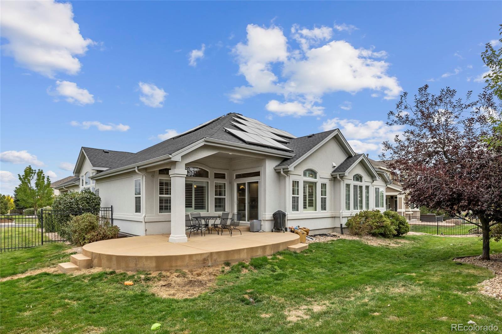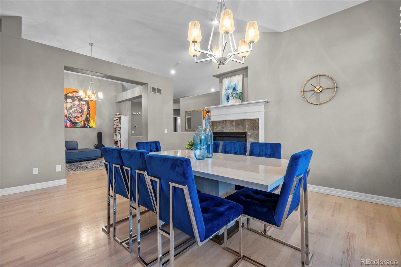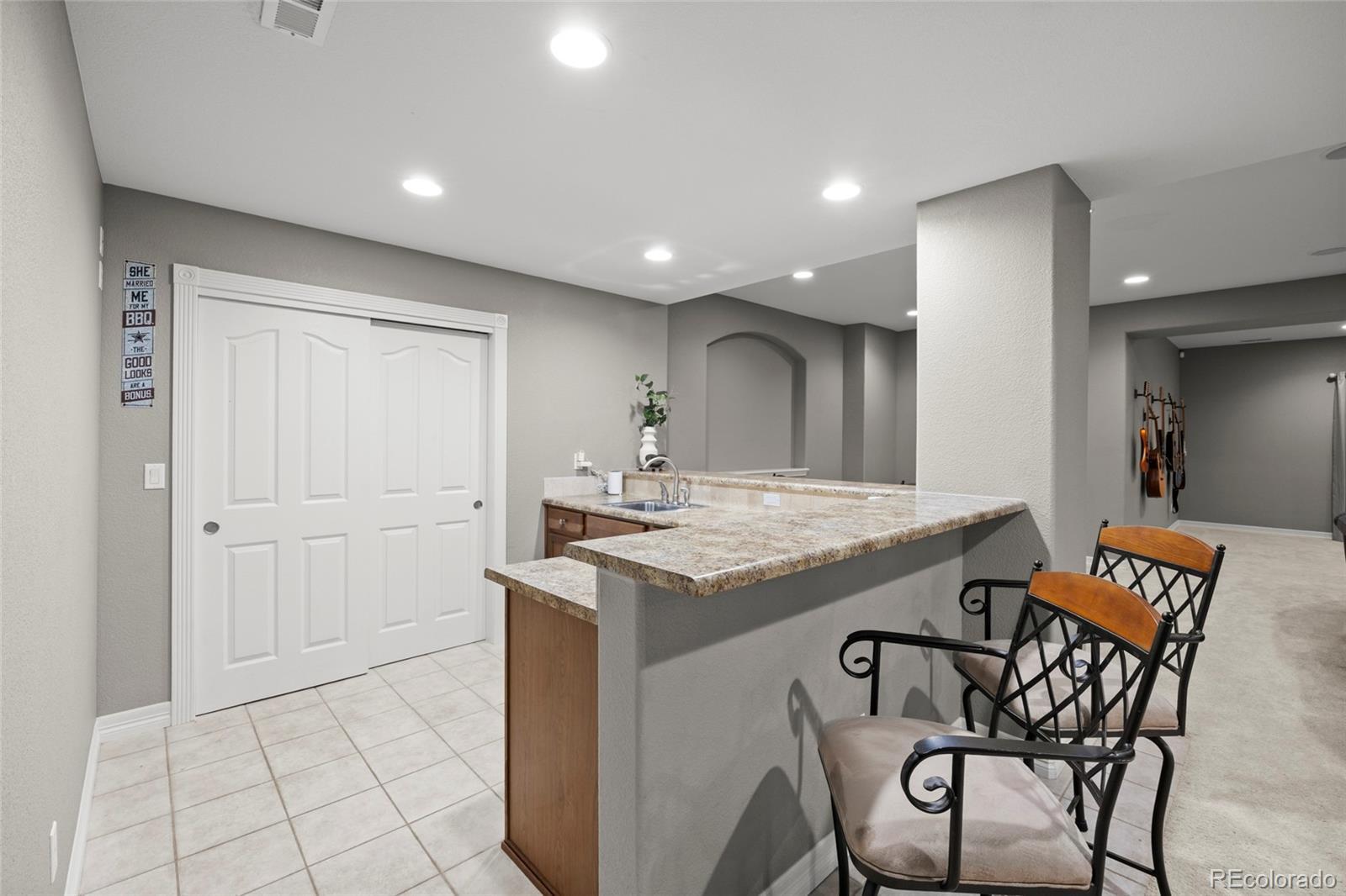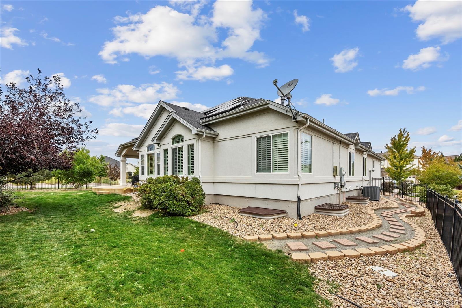 Your stunning ranch home in Blackstone Country Club awaits! This desirable corner lot features expansive main floor living, just steps from the golf course. You’ll enjoy cathedral ceilings, an open-floor plan, and a fully finished basement. Inside, find a bright, inviting living space with a modern kitchen - complete with a double oven, gas range and range hood, and plenty of pantry space. The kitchen expands into the eating area with a full coffee bar set up which is perfect for entertaining. The kitchen opens up quintessentially to the family room where you can catch your favorite show featuring un upgraded sound system, or cozy up to the dual-sided, gas fireplace which opens up to both the family and dining room areas. The main floor office is tucked away from the living space providing a dedicated spot for work-at-home. The main-level primary suite offers a peaceful retreat with a fireplace and five piece bath, while additional bedrooms and the living room provide flexibility for guests, hobbies, flex space or a home office. The finished basement expands your options with a generous family room, additional bedroom, full bath, wet bar, and plenty of space for a gym, media area, or playroom. Outside, enjoy your nearly 1/3 acre corner-lot yard — perfect for barbecues, gatherings, or relaxing after a day at the country club. This location is truly unbeatable: bike the trails of Sampson Gulch, paddleboard or fish at Aurora Reservoir, or enjoy time with your pups by simply walking the neighborhood. After a long day, unwind with dinner or drinks at the club or grab a craft beer with friends on the patio at Bent Barley Brewery. Winter brings ice skating and year-round shopping at nearby Southlands. This home offers the perfect blend of comfort and convenience all while gaining access to a private club where you can enjoy the fitness center or join a round of golf in Colorado’s great outdoors.