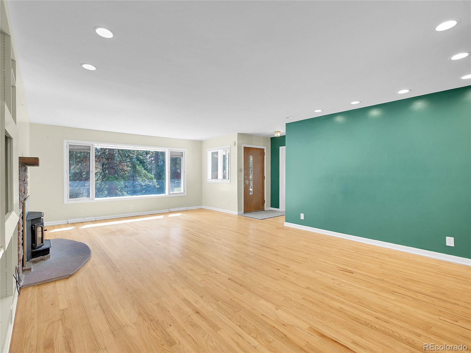 This home offers the best of Evergreen living — peaceful mountain ambiance combined with the ease of single-level comfort. The kitchen, dining, and living room flow together seamlessly, creating a warm, inviting space perfect for gatherings with family and friends. Hardwood floors lead down the hall to three spacious bedrooms, each with walk-in closets, while the layout includes a three-quarter bath in the hall and a full bath in the end bedroom for convenience. At the front of the home, the bright family room provides additional living space and excellent storage with large closets. Step outside to the covered patio, a private oasis for relaxing evenings under the trees. The three-car garage is easily accessed from the patio — perfect for vehicles, gear, or workshop needs. Located in a highly sought-after Evergreen neighborhood, this home is surrounded by towering pines and scenic walking trails leading to Evergreen Lake and the Dedisse Park. Enjoy the quiet of the mountains while being just a short stroll from downtown Evergreen’s shops, restaurants, and local charm.