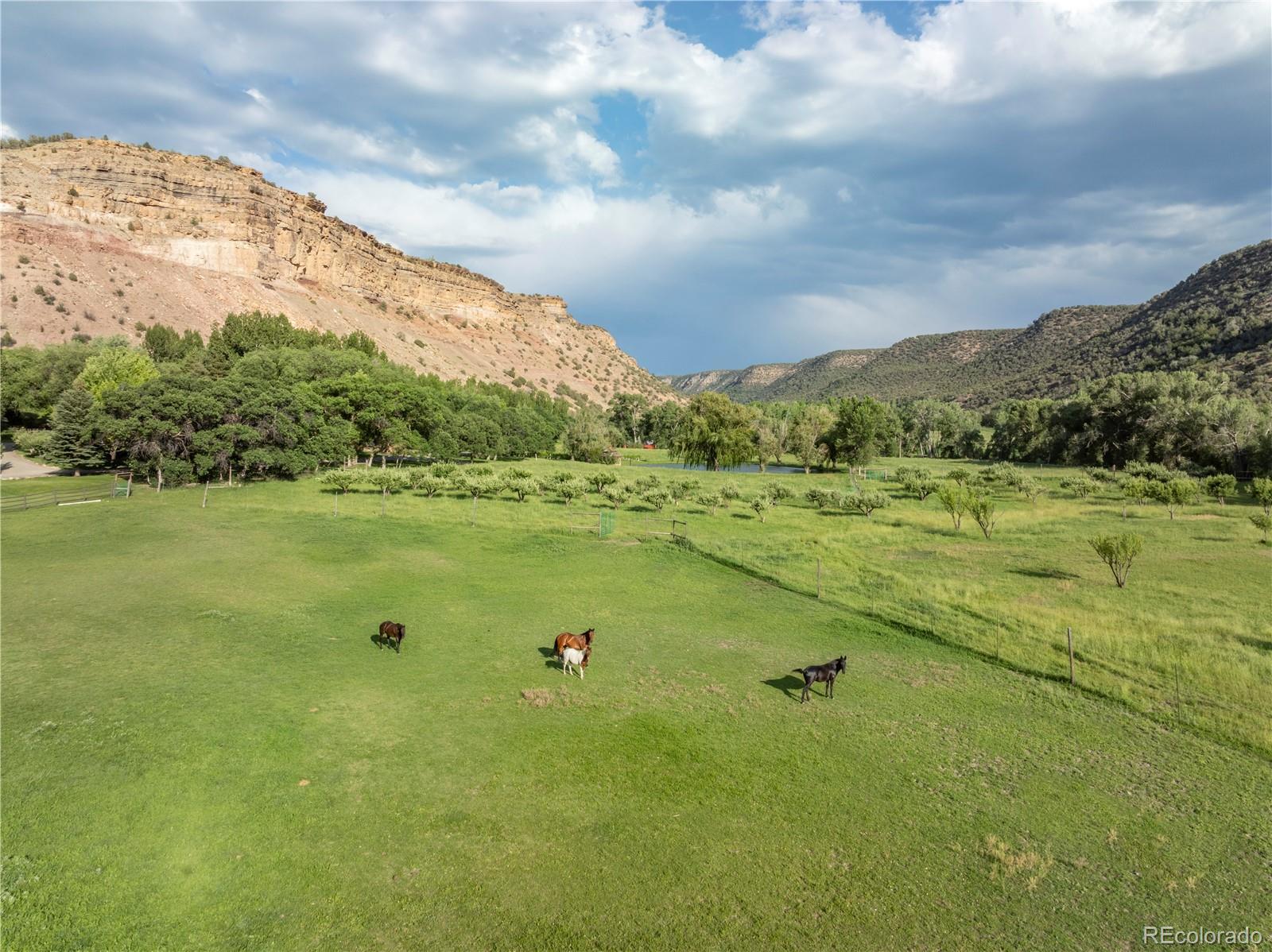 Traveling across lush farmland approaching the road down to the Canyon Ranch gate, a stunning experience awaits the unsuspecting visitor. Rounding the corner and taking in the first glimpse of what can best be described as an Eden-like setting, lies the 663± acre Canyon Ranch. Smith Fork Creek, a large fishing pond, hayfields, a vineyard, equestrian facilities, main lodge that can sleep 20 guests, and multiple additional residences & cabins are all framed by a private picturesque canyon rising along the ranch boundary. Smith Fork Creek is the heart of the property, and the ranch enjoys substantial water rights, allowing for many of the ranch's features. Wildlife is abundant because, like every waterway, Smith Fork Creek provides a corridor for many species, including mule deer, elk, black bear, bobcats, and various smaller mammals and birds. The ranch is protected by a flexible Conservation Easement, allowing for an additional building site and one subdivision. Trail riders will enjoy access from the ranch to trails in adjacent Bureau of Land Management (BLM) land. The Black Canyon of the Gunnison National Park is only 5± miles from the ranch as the crow flies. Canyon Ranch's central-western Colorado location lends reasonable driving times to many desirable destinations, such as the Roaring Fork Valley and Aspen, Telluride, Montrose, Gunnison, and Grand Junction. Of course, the Crawford Airport and FBO are only minutes from the ranch and offer a great alternative to driving. There are income-producing opportunities, both agricultural and from a possible guest ranch or retreat. This ranch will surprise you with its beauty and wealth of possibilities.