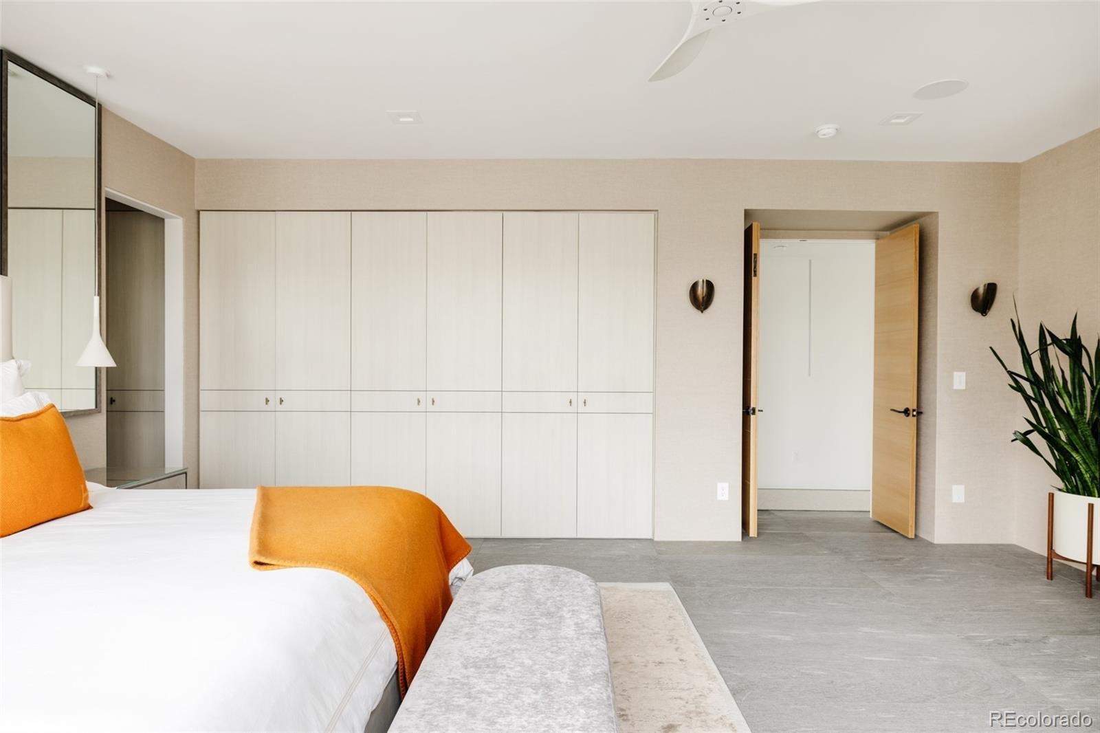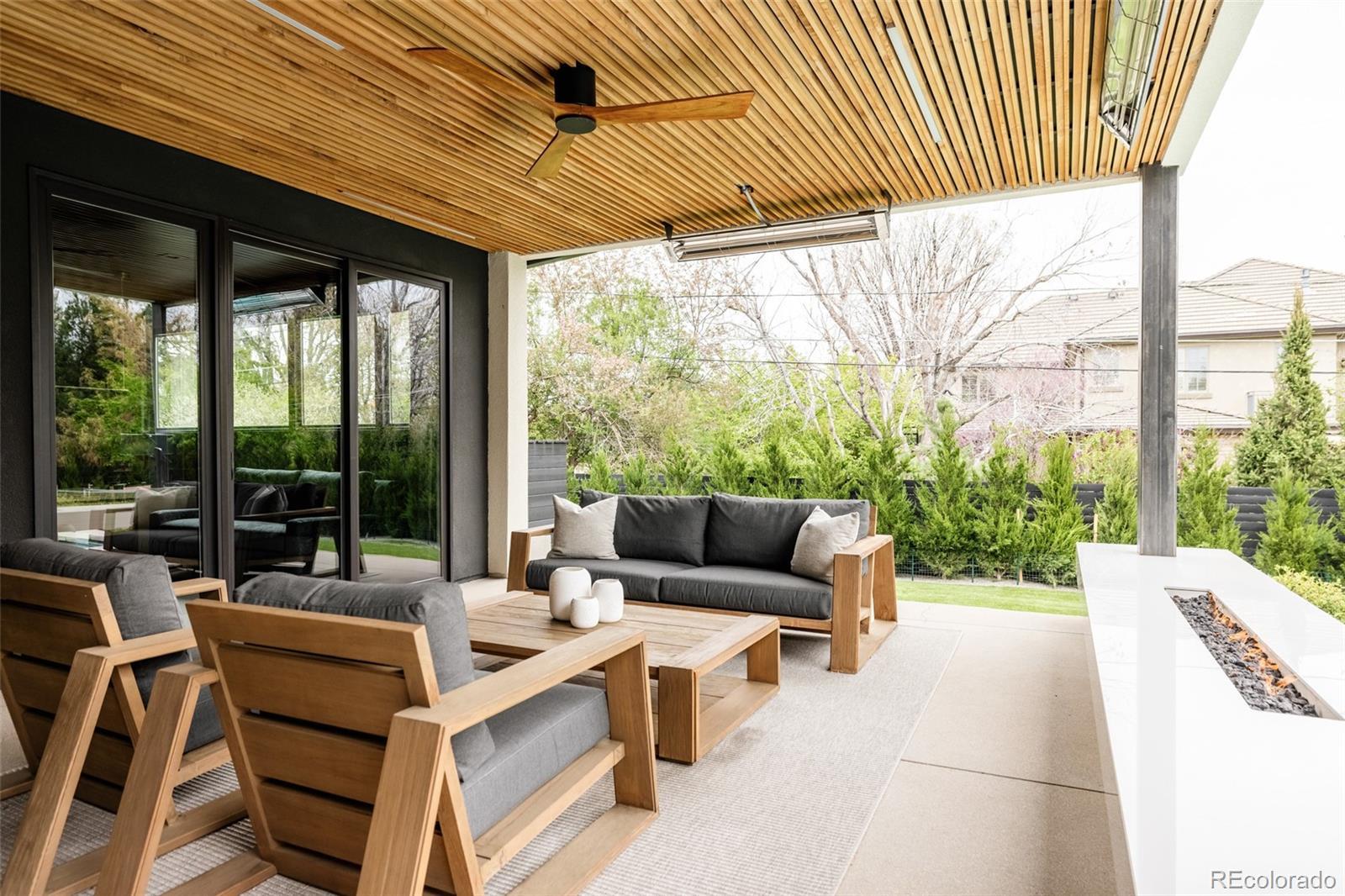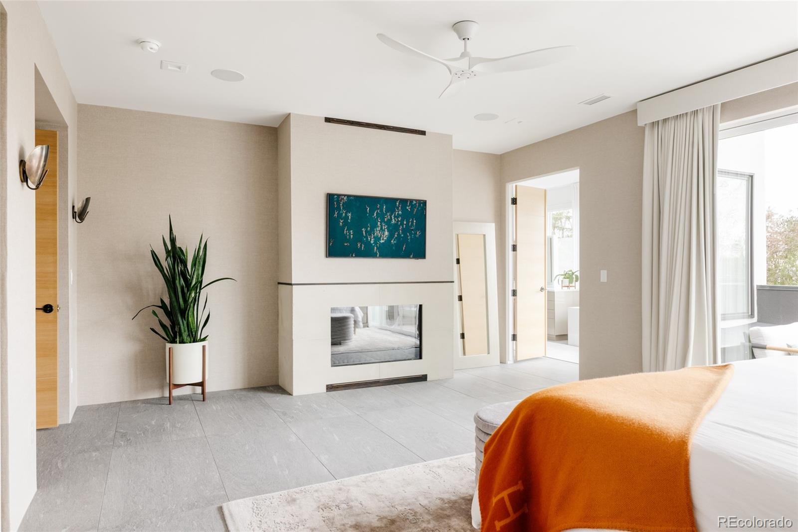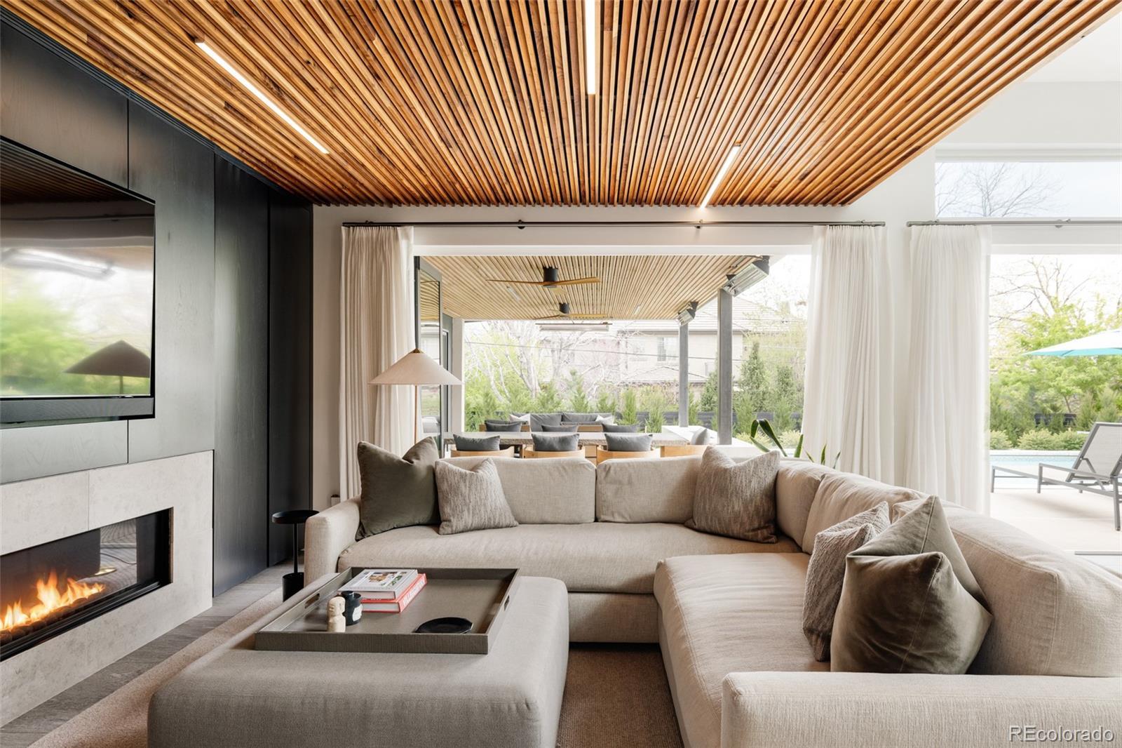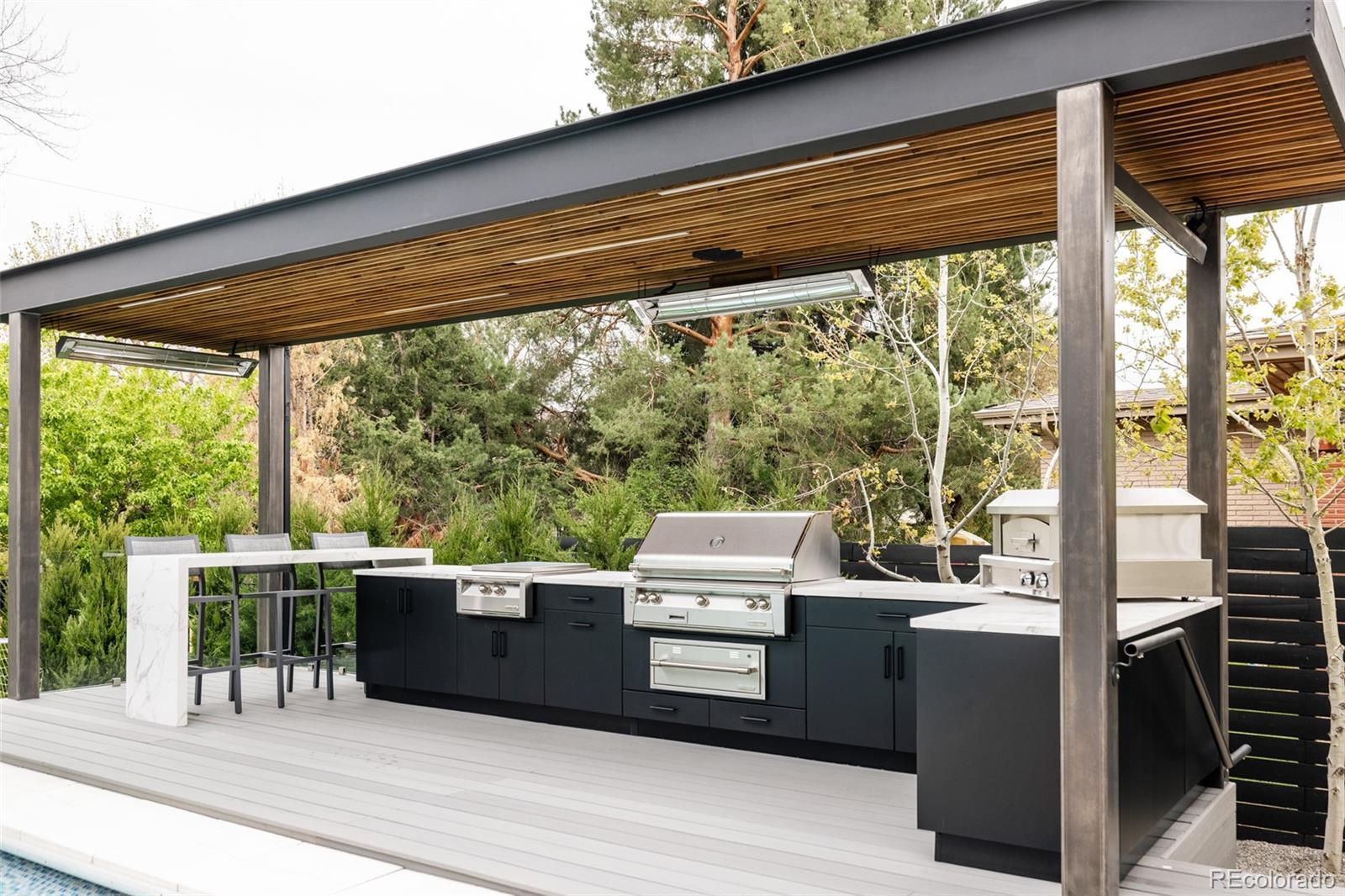 A rare opportunity to own one of Denver’s most architecturally significant contemporary estates. Set on a 12,500 sq ft lot in a premier location, this custom-designed residence masterfully blends high design, luxury materials, and flawless functionality. A commanding exterior showcases stonework, a solid wood front door, and custom fencing enclosing a manicured front yard with a bocce court. Inside, seamless stone flooring and tailored cabinetry with soft-close finishes set a sophisticated tone. The open-concept main level centers around a sculptural slab marble island, matte black oak cabinetry, exotic honed marble countertops, pro-grade appliances, a coffee bar, and a fully appointed walk-in pantry. A custom glass wine wall anchors the dining area, while the family room stuns with walnut accents, sleek fireplace, and concealed mudroom access. Accordion doors open to a heated covered patio, resort-style pool and spa, full outdoor kitchen with grill, cooktop, pizza oven, fire pit, turf lawn, and mature trees. The main floor also includes a refined office. Upstairs, the primary suite is a sanctuary with a fully custom walk-in closet, wall of built-ins, spa bath with dual showers (steam), dual vanities and toilets, and an adjacent Pilates retreat. Two additional ensuite bedrooms and a laundry room with double W/Ds complete the level. The third-floor sky lounge opens to a rooftop terrace with fireplace. The over-excavated basement features a marble bar, gym, sunken courtyard, rec room with fireplace, and guest suite with sitting area. The 4-car tandem garage is conditioned with epoxy floors, built-ins, wine fridge, and sauna. Just off the garage, a second private office with built-ins, fireplace, and powder room offers an ideal in-law suite conversion. Additional amenities include radiant heat (14 zones), Sonos, smart home automation, six fireplaces/fire pits, custom lighting, window coverings, turf dog run, and backup forced air.
