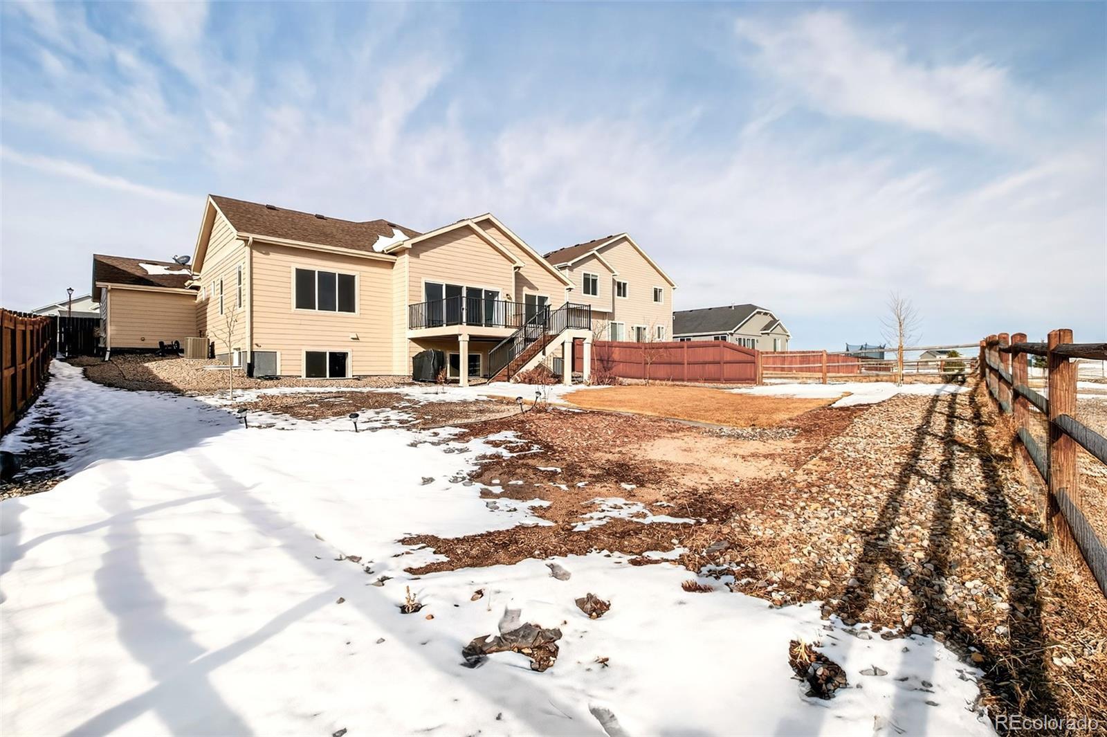 Welcome Home! This home was finished in 2022 and is thoughtfully designed for comfort and style. This ranch home is located on a quiet cul-de-sac in the highly desirable Meridian Ranch community. Offering 3,528 total square feet, this home features 5 bedrooms, 3 bathrooms and an attached 3 car garage, all set against the backdrop of open space and a scenic community path. The main level showcases an open concept floor plan with vaulted ceilings that enhance the sense of space and natural light throughout. The gourmet kitchen is the heart of the home, featuring granite countertops, stainless steel appliances, a large center island, gas range and seamless flow into the living room, perfect for everyday living and entertaining. Step outside onto a large composite deck with stairs leading to the fully landscaped and fenced backyard. The primary suite is a true retreat complete with walk-in closet, dual vanities and an impressive bathroom featuring dual showers. Convenient main level laundry adds to the home's functional design. The finished basement expands the living space with three additional bedrooms, a full bathroom, a large family room and loads of storage space! Additional highlights include forced air heating, central air conditioning, a whole house humidifier, radon mitigation system and sump pump offering comfort and peace of mind year-round. As part of Meridian Ranch, residents enjoy access to outstanding amenities including a clubhouse, fitness center, pool, playgrounds, dog park and miles of hiking and biking trails. This home offers the perfect blend of modern construction, thoughtful upgrades and an active Colorado lifestyle.