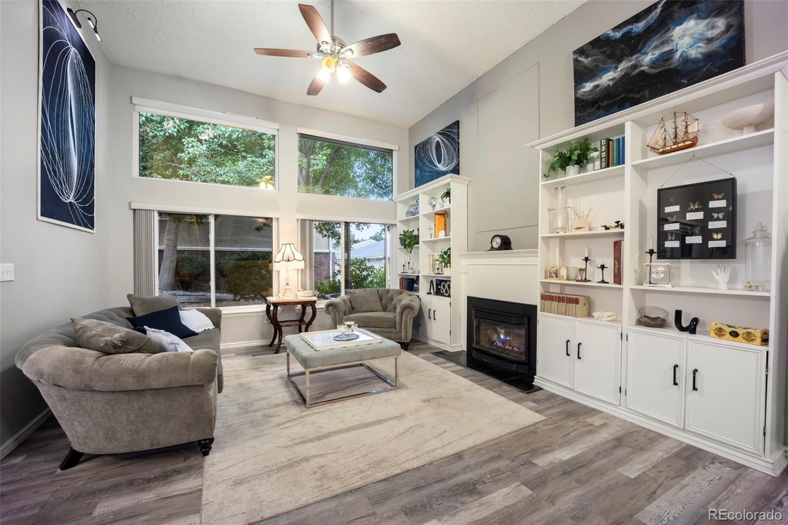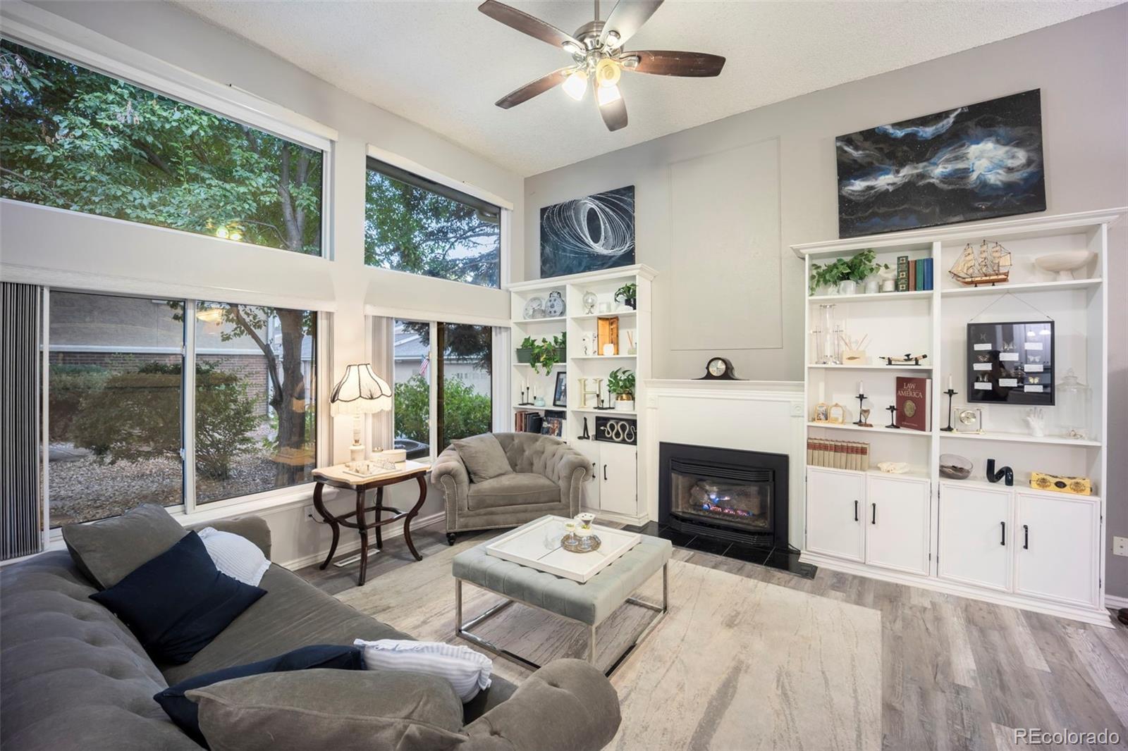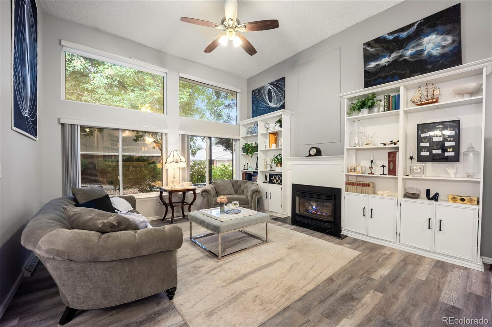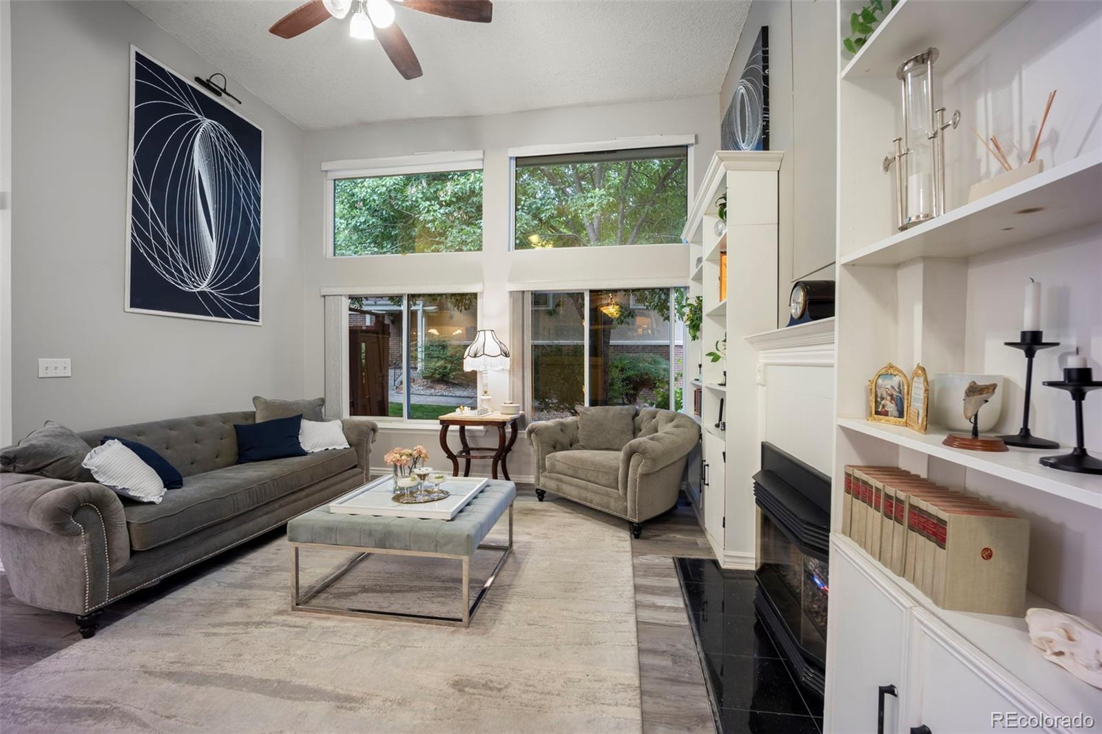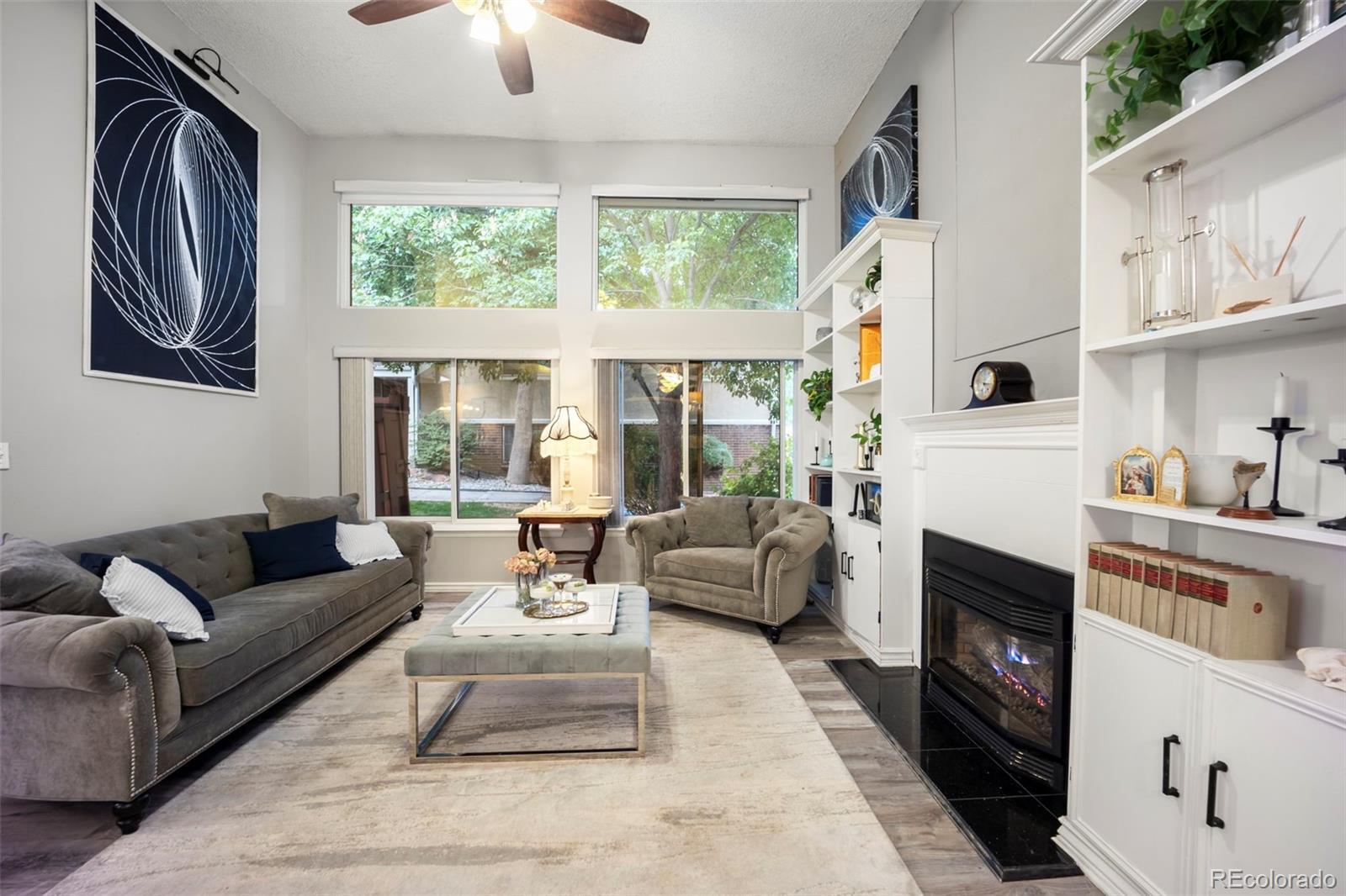 Welcome Home to One of the Best Open Floor Plans in the Three Fountains Community! Step into this beautifully designed townhome, where the main level embraces the open-concept “great room” layout—perfect for modern living and entertaining. Enjoy a spacious family room with soaring ceilings and a cozy gas fireplace, an inviting dining area that opens to your own private patio, and a stylish kitchen with a breakfast bar that ties it all together. Upstairs, the generous primary suite includes a large bedroom and private bathroom. A comfortable guest bedroom, full bathroom, and an expansive loft—easily convertible into a third bedroom or flex space—complete the upper level. Just below the main floor, you’ll find a versatile study with wood flooring and built-in shelving—ideal for a home office or creative studio—alongside a dedicated laundry room with washer and dryer included. The oversized 2.5-car garage offers exceptional storage space, accommodating vehicles, gear, and more. Enjoy low-maintenance living with access to Three Fountains' seasonal community pool, clubhouse with a library, and professional grounds maintenance—no more yard work or snow shoveling! Located just minutes from premier shopping and dining along Hampden Avenue, and offering convenient access to both downtown Denver and the DTC, this is the perfect place to call home.
