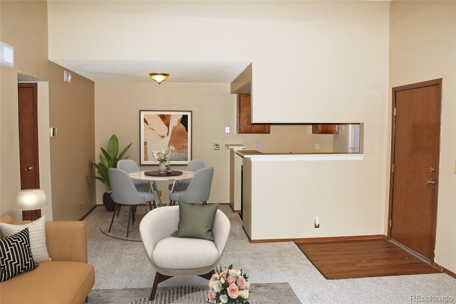Come home to this wonderful two-bedroom condo with new carpet and updated paint throughout! Kick your shoes off in the comfortable living room and enjoy the wood burning fireplace and skylight. Cook your favorite meals in the lovely kitchen with Oak cabinets and new flooring, then share them with your friends in the dining room. Escape to the spacious primary bedroom with a bay window, walk-in closet, and private bath. New flooring and toilets in both baths. The 2nd bedroom is great for guests or to use as an office. Relax on the shaded patio with an extra storage room and enjoy a maintenance free lifestyle with the added benefit of a clubhouse, community pool and tennis courts! Close to Buckley AFB/SFB, good access to Airport Blvd/Pena.