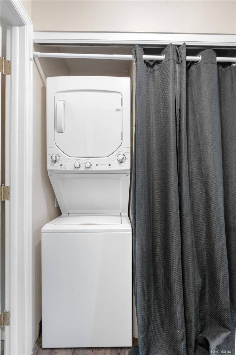 Welcome to your perfect blend of comfort, convenience, and style! This bright and airy 2nd-floor 1 bed / 1 bath condo features brand-new wide-plank vinyl flooring throughout and a cozy, open layout. The light-filled living area opens to a private covered patio overlooking the community pool—ideal for morning coffee or evening wind-downs. Enjoy the charm of a wood-burning fireplace, a fully equipped kitchen, and the ease of an in-unit stackable washer and dryer. Reserved off-street parking included. Located just steps from the pool, RTD bus lines, and light rail, with shopping, dining, and entertainment just minutes away. Move-in ready and low maintenance—perfect for first-time buyers, investors, or anyone looking to enjoy easy city living.