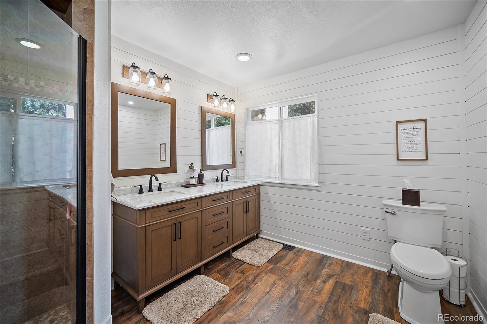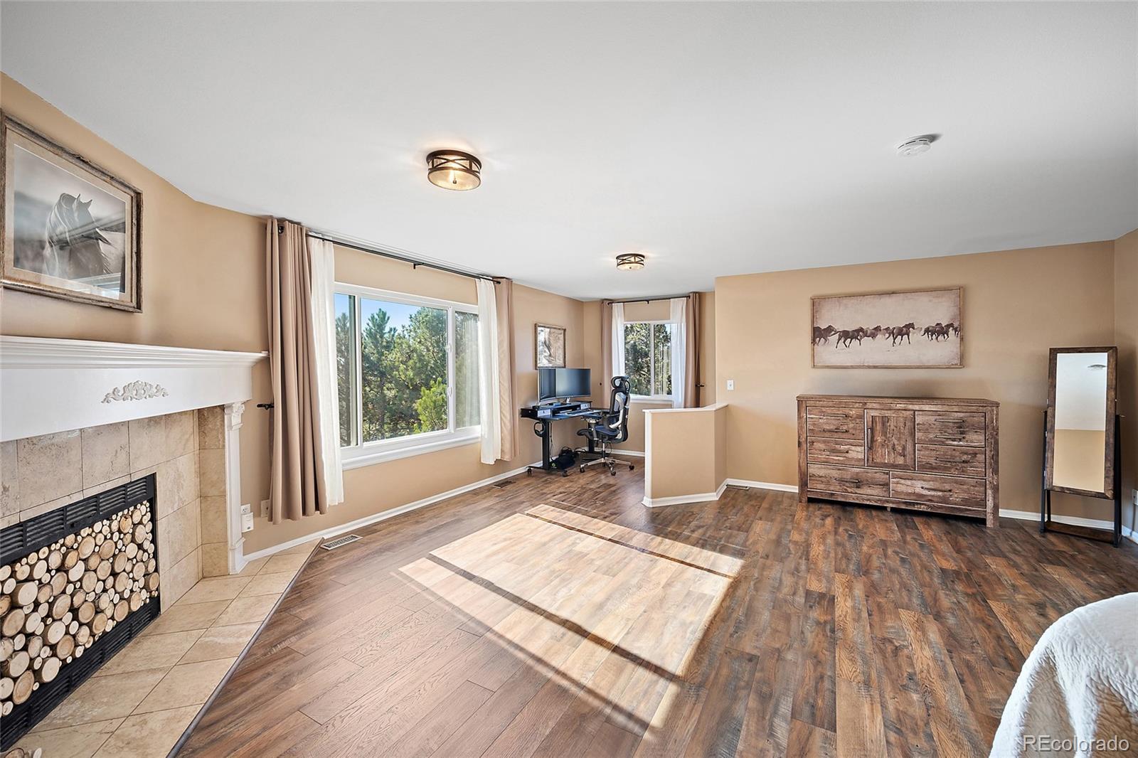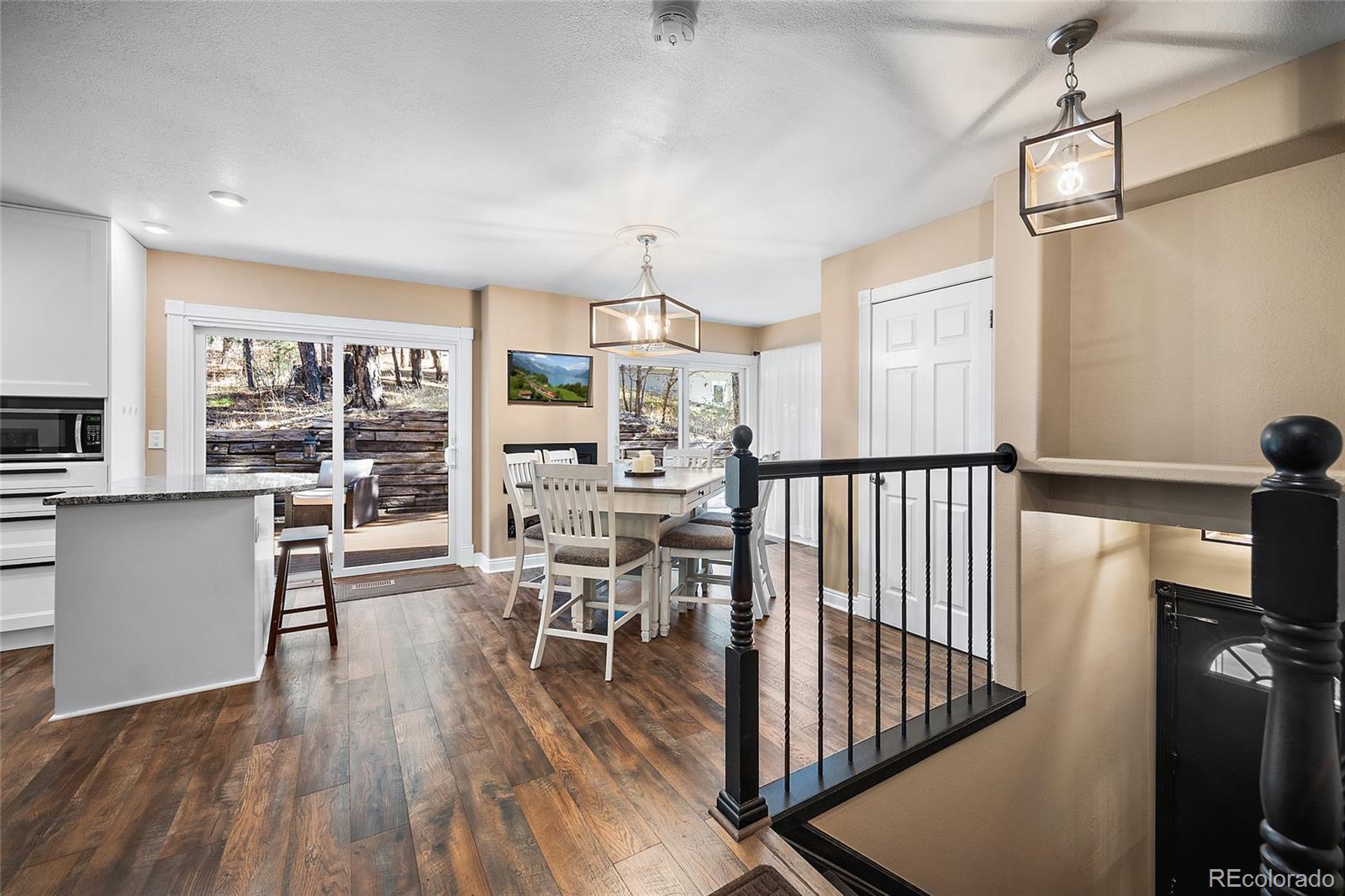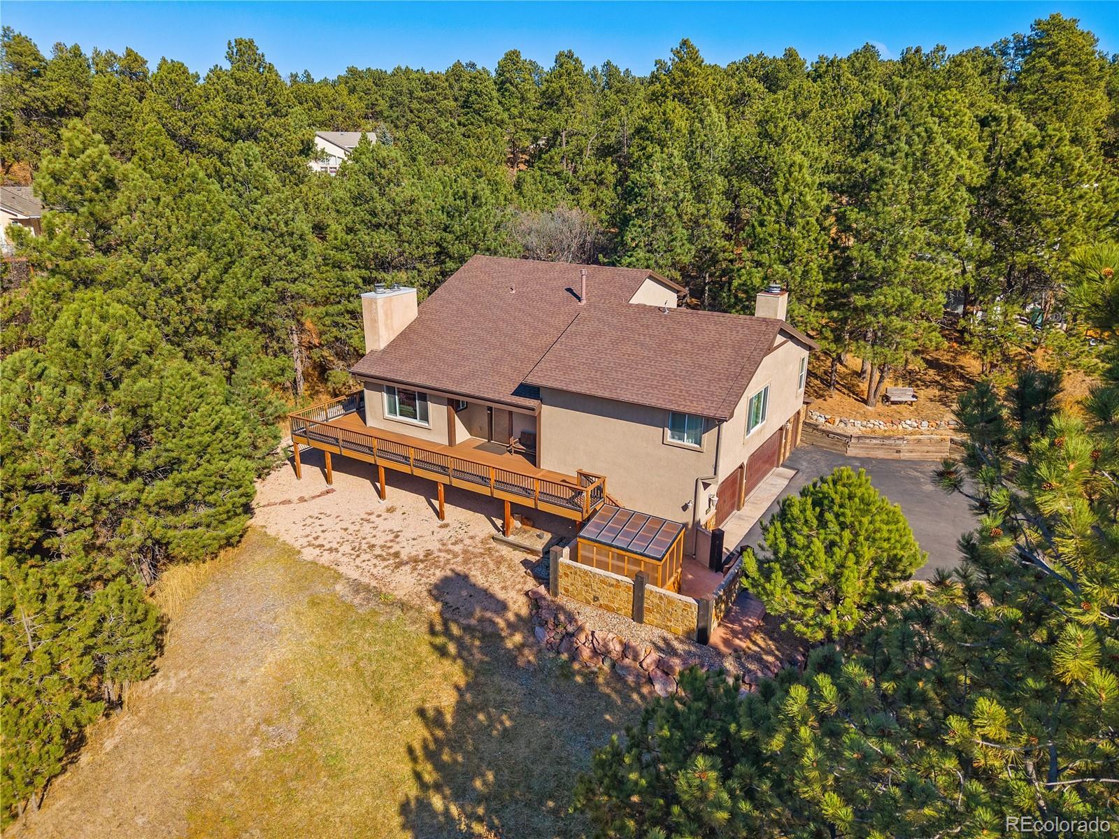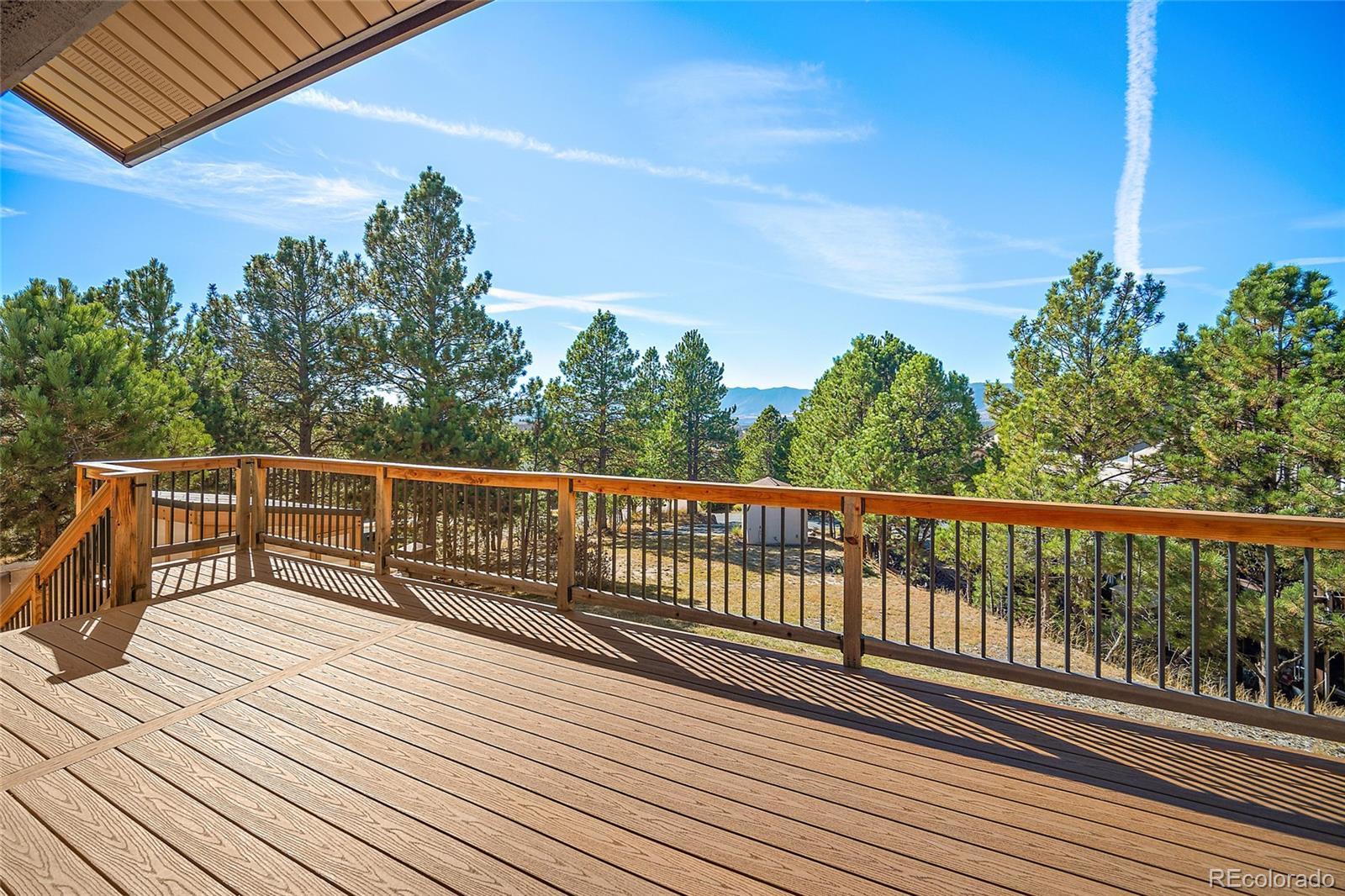 Discover this stunning mountain retreat nestled among towering ponderosa pines in the highly sought-after Woodmoor neighborhood of Monument, offering breathtaking mountain views and located in the desirable D-38 School District. This beautifully updated home features 4 bedrooms, 4 bathrooms, a 3-car garage, a loft, an office with French doors and deck access, and a finished basement. The brand-new kitchen is a true showpiece, showcasing sleek stainless steel appliances, soft-close cabinets and drawers, elegant under-cabinet lighting, and modern finishes that make it both stylish and functional. Enjoy updated bathrooms, new flooring, baseboards, and fresh paint throughout, plus four cozy fireplaces perfect for Colorado’s snowy evenings. The spacious primary suite is a true sanctuary with a sitting area, fireplace, remodeled spa-like bathroom, and a secret staircase leading to the garage below. Outdoor living shines with nearly 1,000 sq ft of wrap-around composite decking, a tranquil water feature, a greenhouse, and open space behind the home for added privacy and wildlife watching. Combining comfort, style, and functionality, this exceptional home offers a perfect blend of mountain charm, modern updates, and easy access to restaurants, shopping, entertainment, and I-25. This home is truly one of a kind, so schedule your showing today!