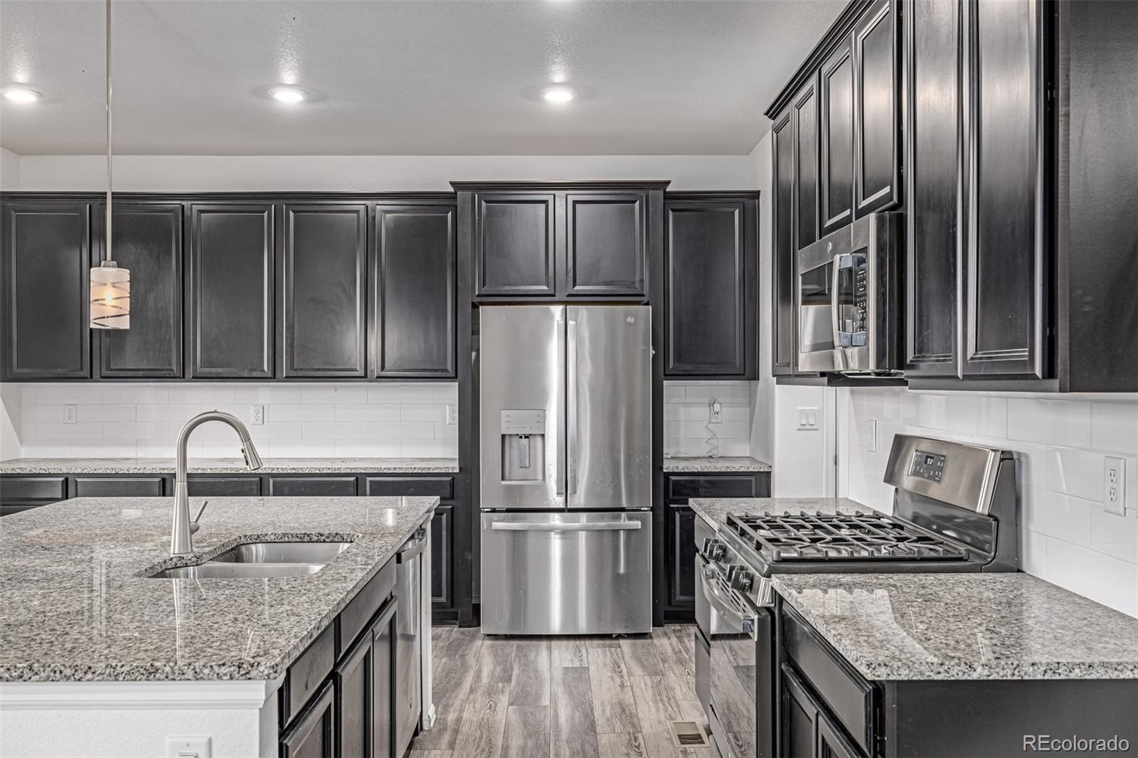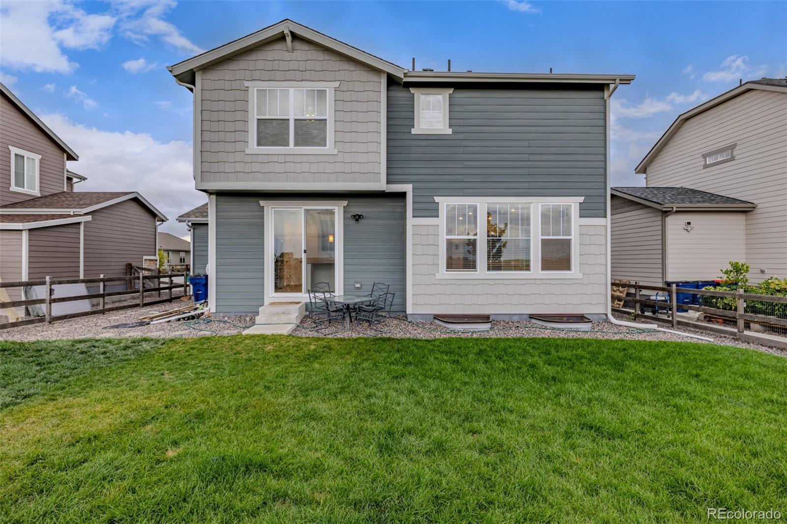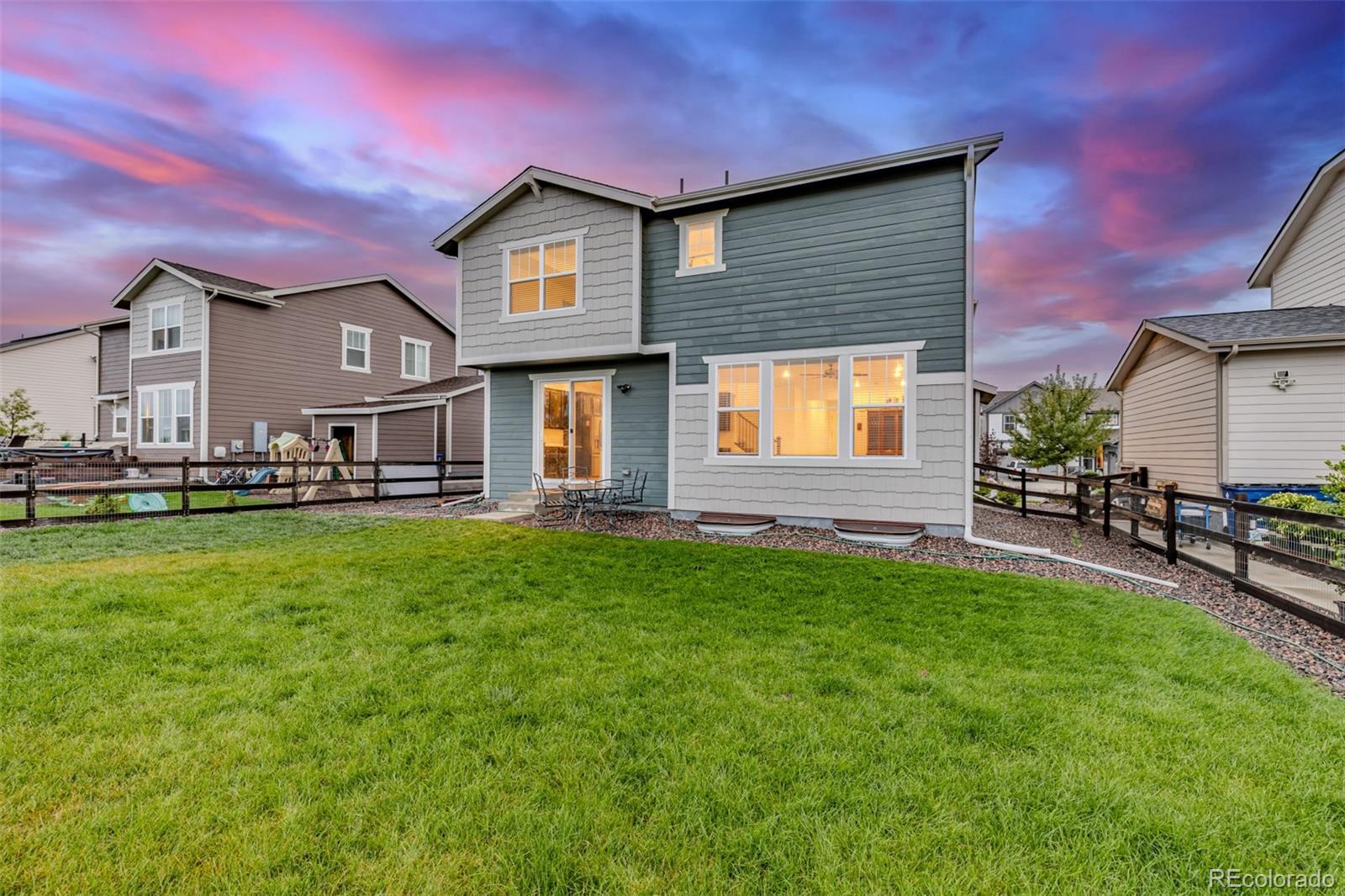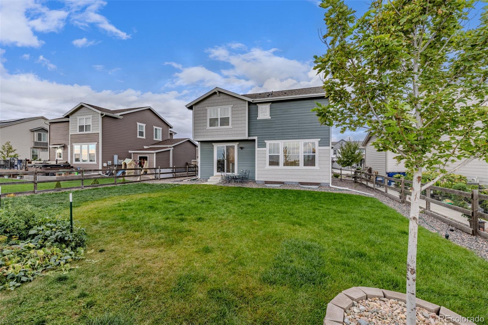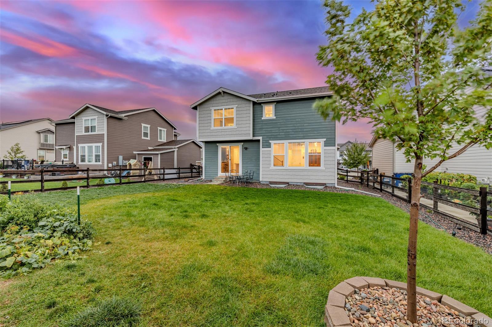 Life feels better at 5053 Lake Port Avenue, where wide-open spaces meet thoughtful design. Nestled in the vibrant Barefoot Lakes community, this 4 bedroom 3 bath home offers trails, mountain views, and outdoor living just steps from your door. This stunning home wows from the curb with its Craftsman inspired exterior, stone accents, and spacious three car garage. Step inside to discover a bright and airy floor plan featuring wide plank flooring and fresh finishes. Right when you walk in, a bright and flexible front den, home office, or quiet lounge greets you with generous windows and effortless flow into the main living and dining area. At the heart of the home, the chef’s kitchen shines with a massive granite island, stainless steel appliances, sleek espresso cabinetry, and tons of storage. The open layout creates an inviting setting that’s just as comfortable for quiet nights at home as it is for lively get-togethers with friends and family. Upstairs, discover four spacious bedrooms, including a dreamy primary suite with a tray ceiling, spa-style bath featuring dual vanities, granite counters, and a walk-in shower, plus a generous walk-in closet. The additional bedrooms are equally inviting, each with ceiling fans and plenty of light, while the shared full bath boasts double sinks perfect for busy mornings. A convenient upstairs laundry room keeps chores simple and the full unfinished basement provides endless possibilities for a home gym, theater, or extra living space. Step outside to enjoy your backyard with Colorado sunsets as your backdrop and the peaceful greenbelt just beyond your fence. Whether you’re grilling, relaxing, or playing, this space offers both beauty and privacy while being ready for your personal touch. Don’t miss your chance to own this stylish Firestone gem—5053 Lake Port Avenue is ready to welcome you home!