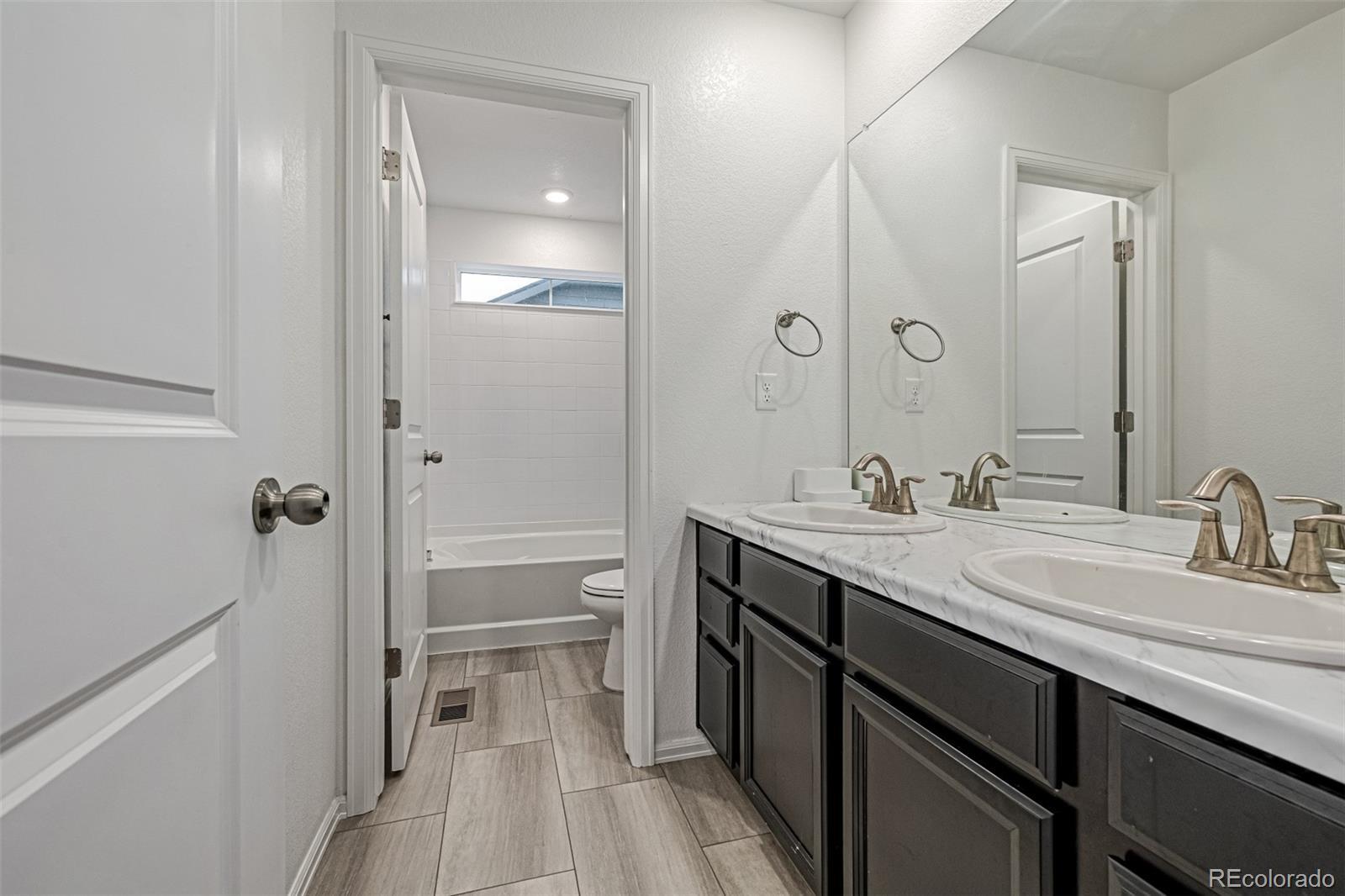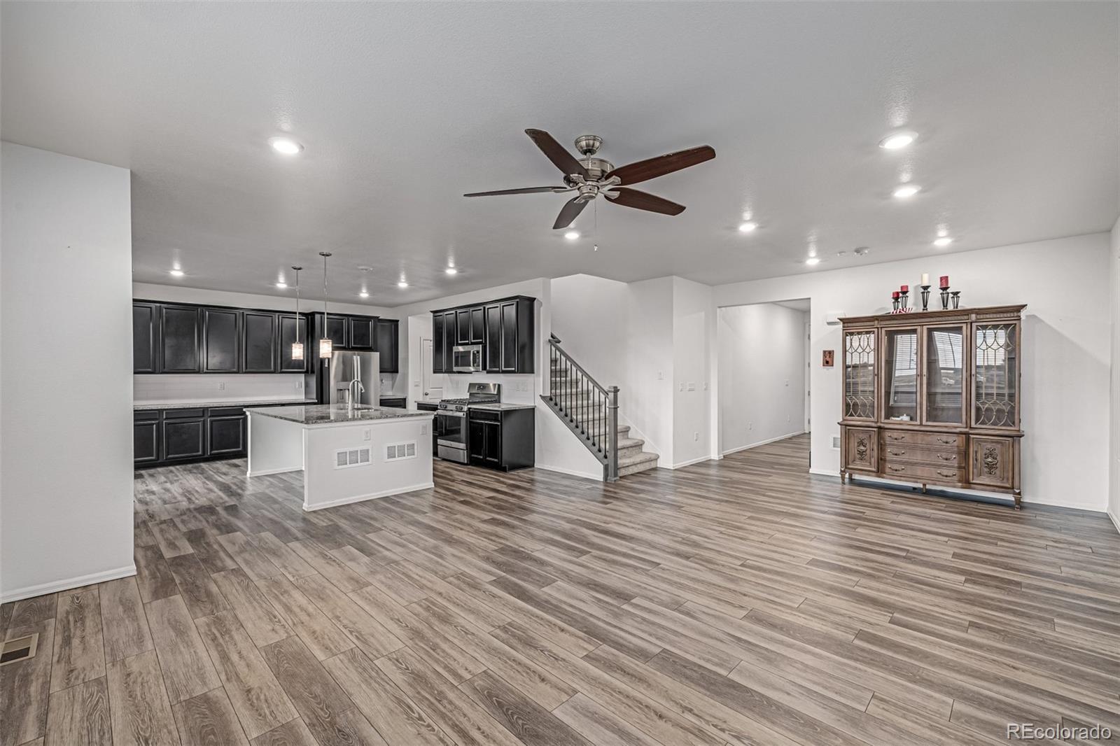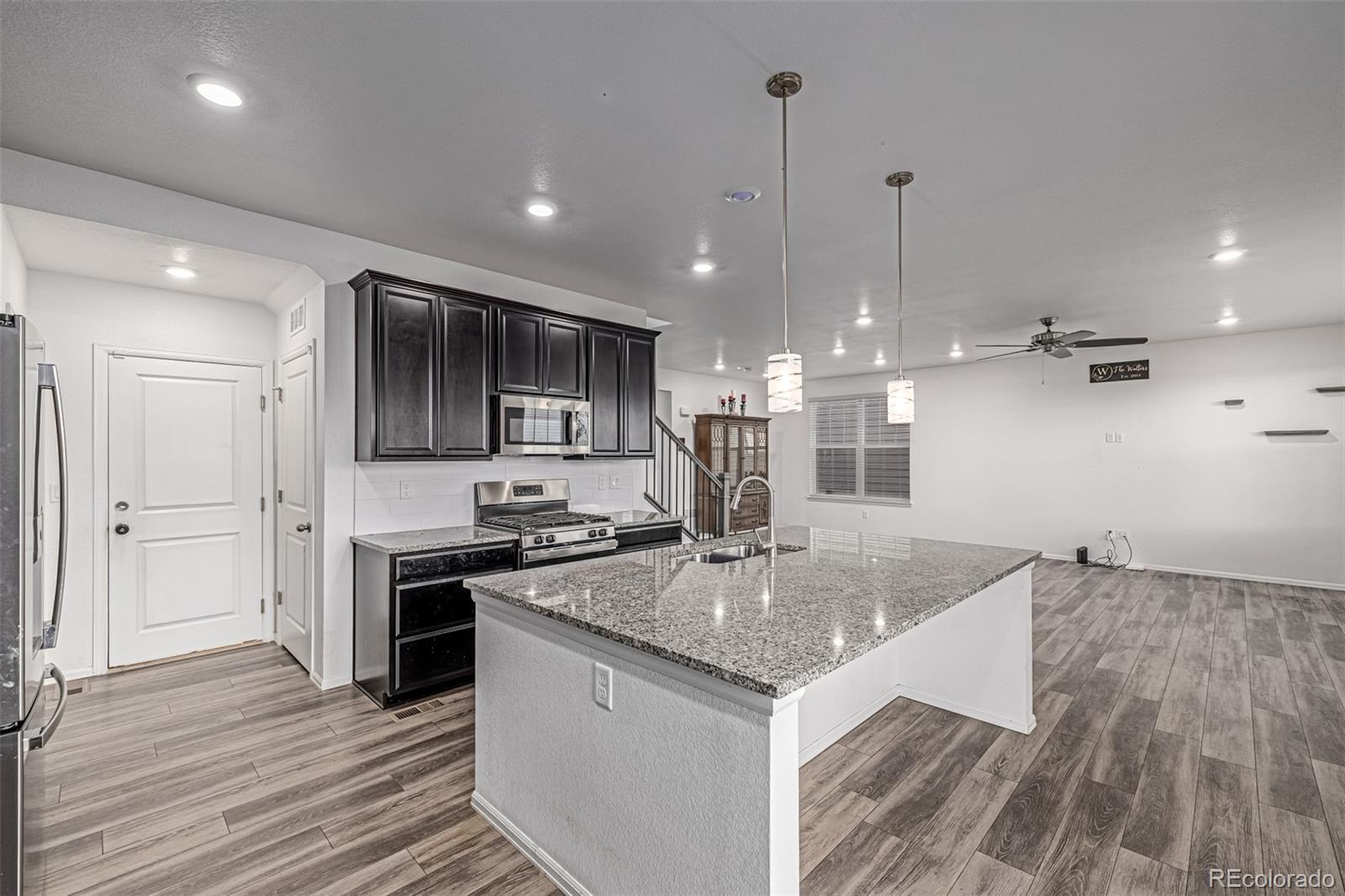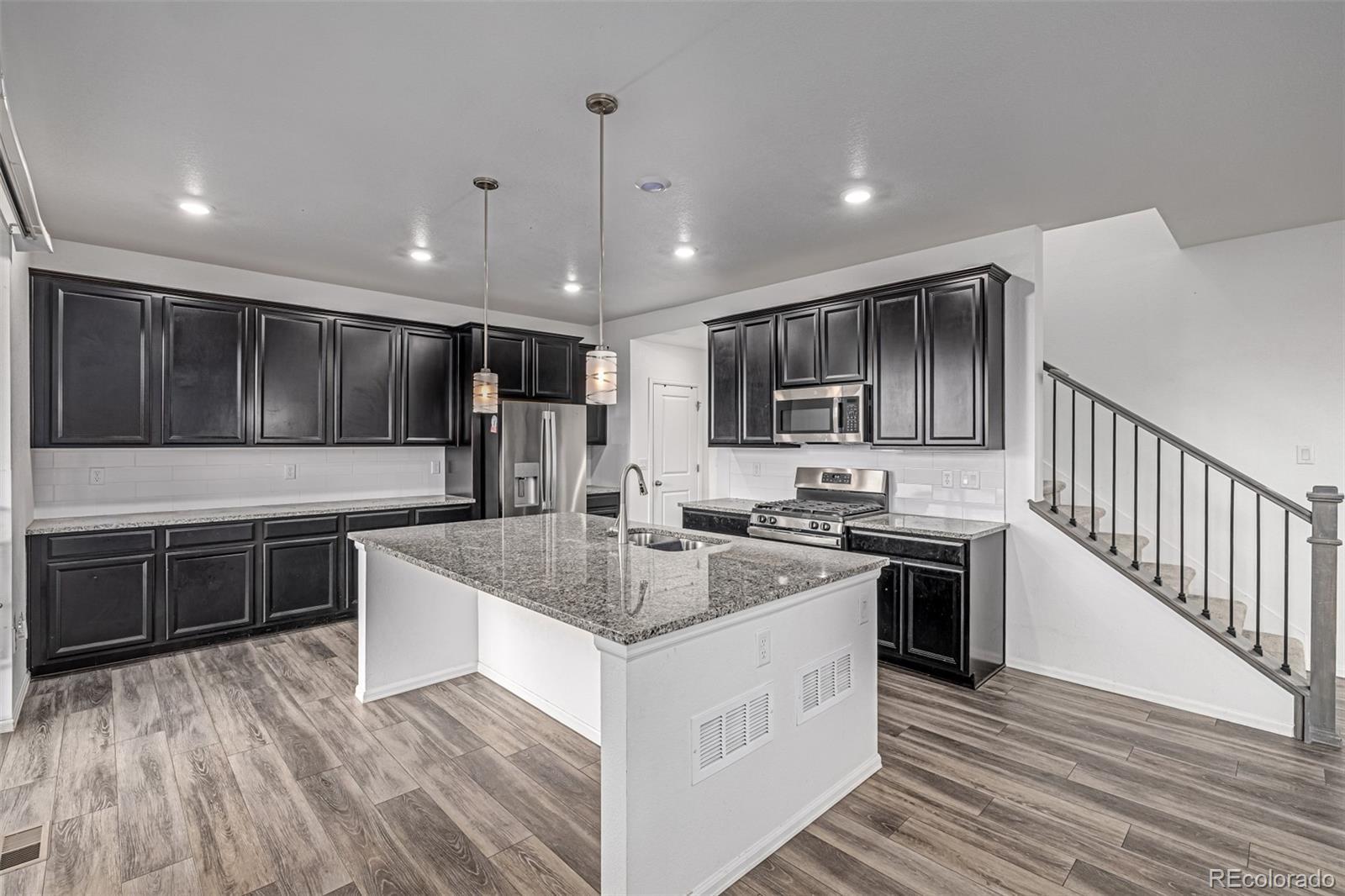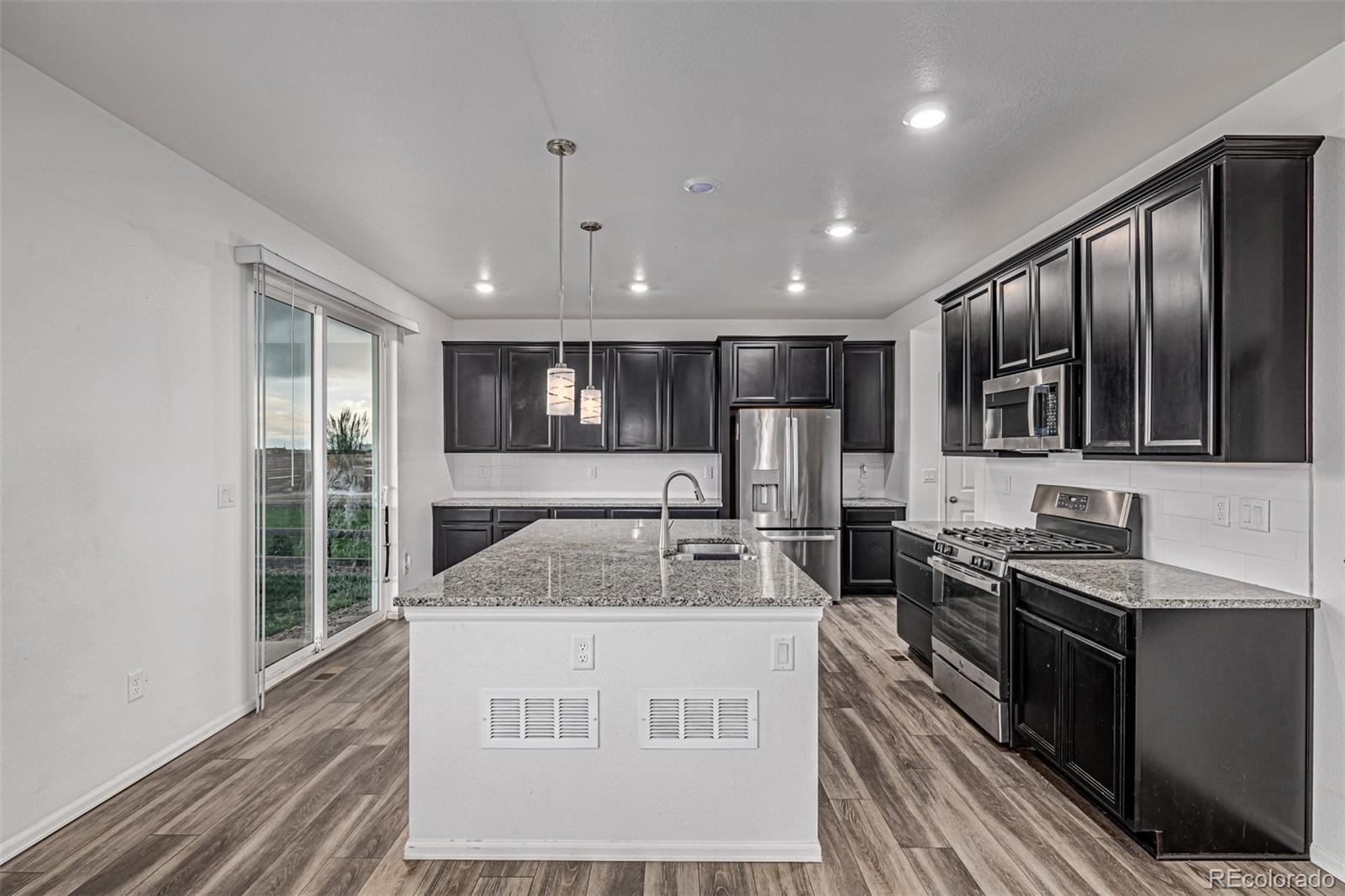 Life feels better at 5053 Lake Port Avenue, where wide-open spaces meet thoughtful design. Nestled in the vibrant Barefoot Lakes community, this 4 bedroom 3 bath home offers trails, mountain views, and outdoor living just steps from your door. This stunning home wows from the curb with its Craftsman inspired exterior, stone accents, and spacious three car garage. Step inside to discover a bright and airy floor plan featuring wide plank flooring and fresh finishes. Right when you walk in, a bright and flexible front den, home office, or quiet lounge greets you with generous windows and effortless flow into the main living and dining area. At the heart of the home, the chef’s kitchen shines with a massive granite island, stainless steel appliances, sleek espresso cabinetry, and tons of storage. The open layout creates an inviting setting that’s just as comfortable for quiet nights at home as it is for lively get-togethers with friends and family. Upstairs, discover four spacious bedrooms, including a dreamy primary suite with a tray ceiling, spa-style bath featuring dual vanities, granite counters, and a walk-in shower, plus a generous walk-in closet. The additional bedrooms are equally inviting, each with ceiling fans and plenty of light, while the shared full bath boasts double sinks perfect for busy mornings. A convenient upstairs laundry room keeps chores simple and the full unfinished basement provides endless possibilities for a home gym, theater, or extra living space. Step outside to enjoy your backyard with Colorado sunsets as your backdrop and the peaceful greenbelt just beyond your fence. Whether you’re grilling, relaxing, or playing, this space offers both beauty and privacy while being ready for your personal touch. Don’t miss your chance to own this stylish Firestone gem—5053 Lake Port Avenue is ready to welcome you home!