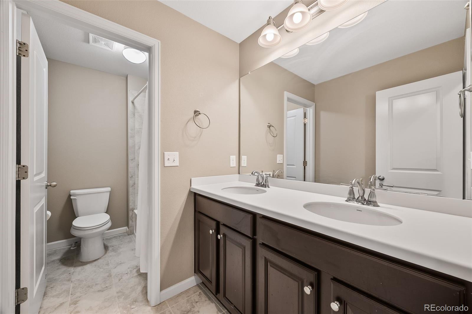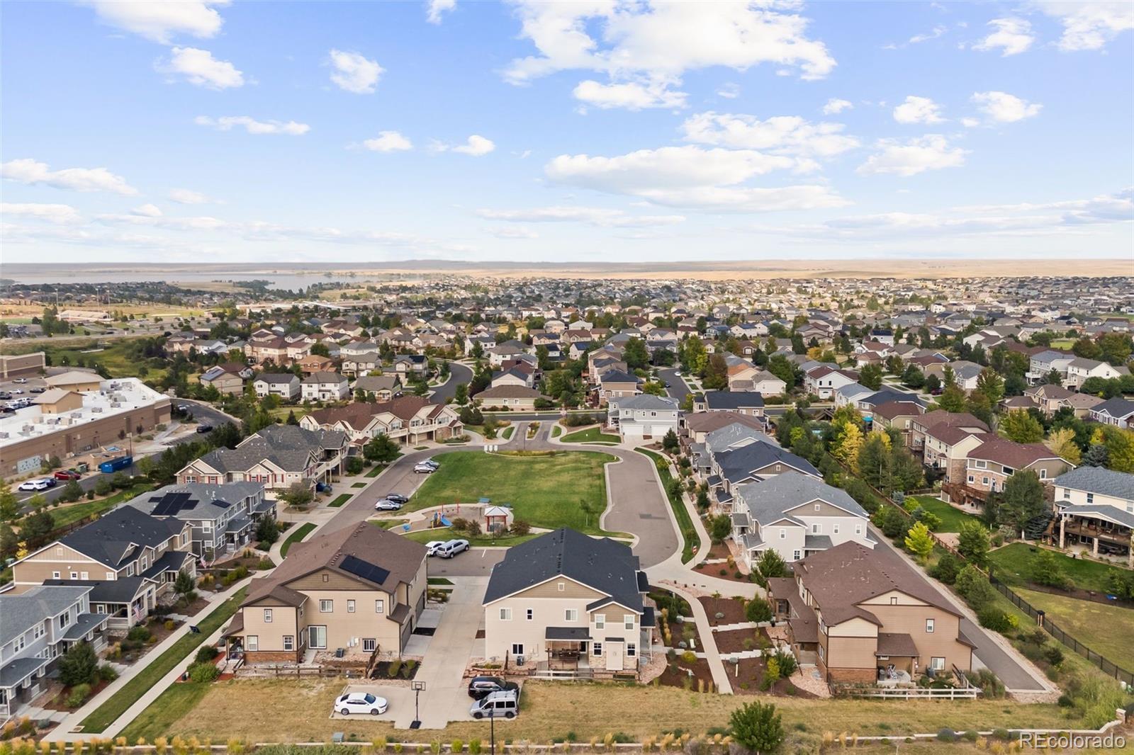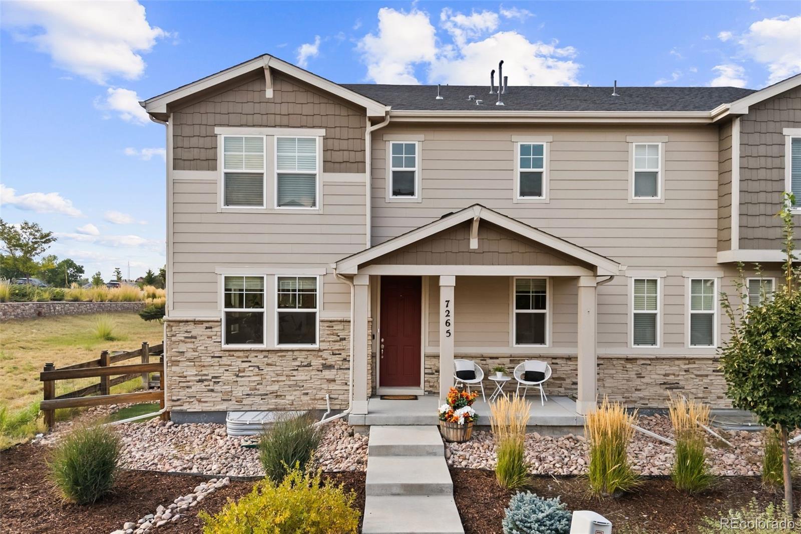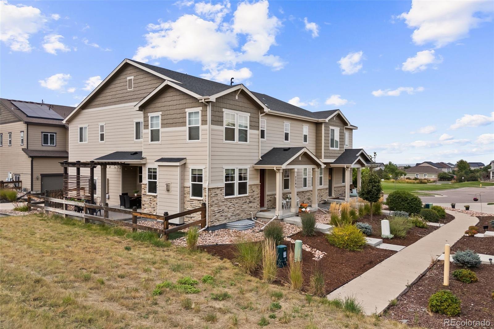Welcome to this bright and spacious duplex in the desirable Serenity Ridge community. With over 3,000 sq. ft. including the unfinished basement, this home offers room to spread out and enjoy, in highly desirable Cherry Creek School District. The main level is filled with natural light and features an open floor plan with a welcoming living area and an upgraded kitchen. You’ll love the stainless appliances, double ovens, granite counters, 42” cabinets, and large island that makes both cooking and gathering easy. Just off the dining area, the covered porch is perfect for dining al fresco or simply relaxing outdoors while overlooking open space. Upstairs, the loft provides a second living space in addition to the private primary suite with walk-in shower, dual sinks, and granite counters. Two more bedrooms, a full bath, and laundry room complete the upper level. The 800+ sq. ft. unfinished basement is ready for your vision, whether that’s a gym, rec room, or extra storage. Serenity Ridge is a quiet, welcoming neighborhood that circles a central park with a playground. With its private feel yet easy access to shopping, dining, and schools, it’s a wonderful place to call home. Add in the two-car attached garage, move-in ready condition, and thoughtful updates, and this home is truly a standout.