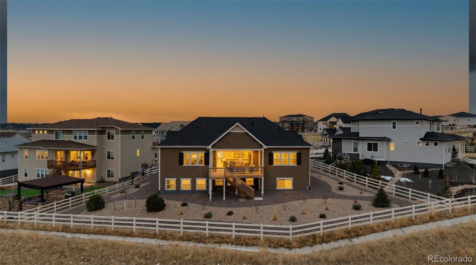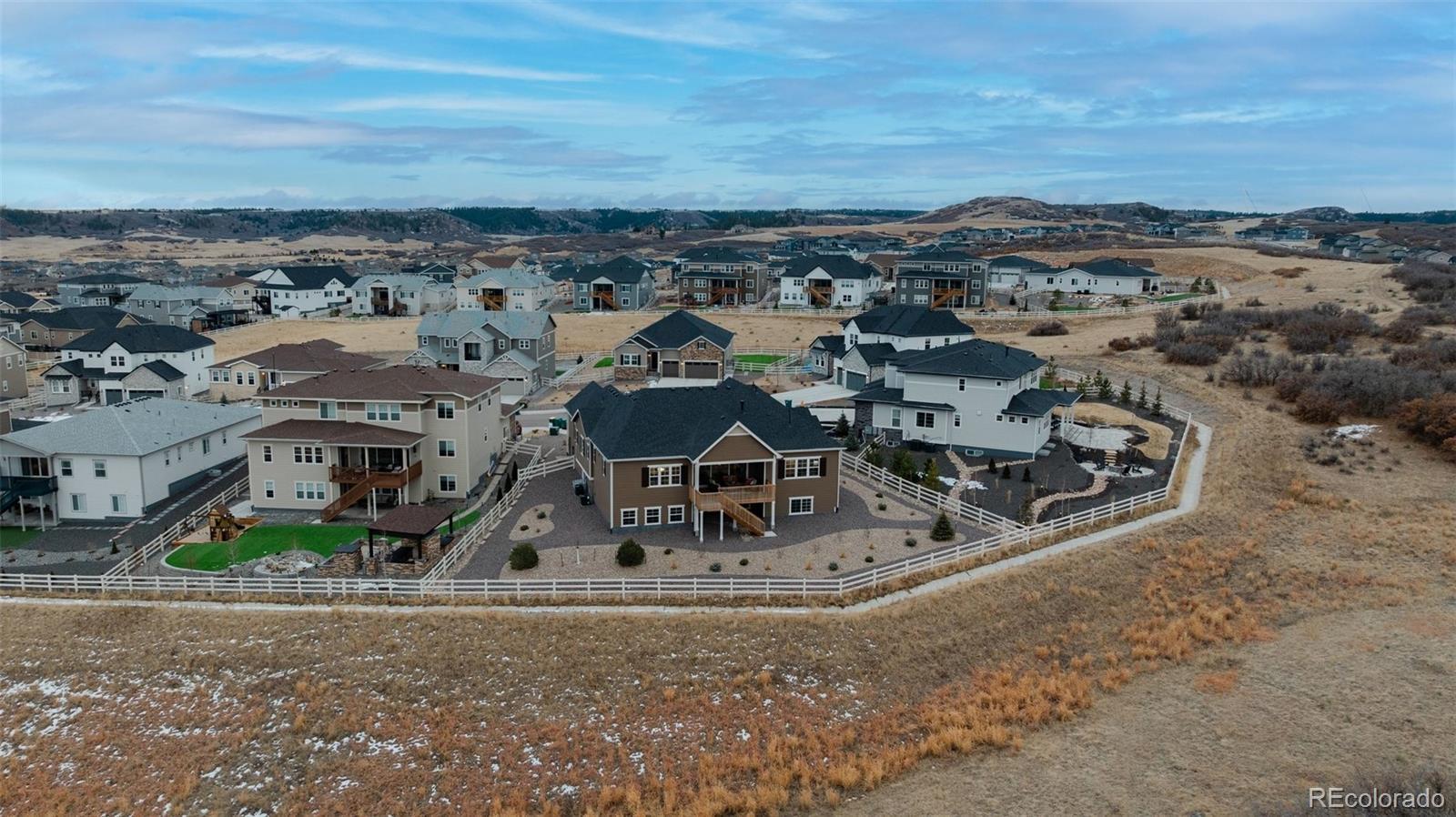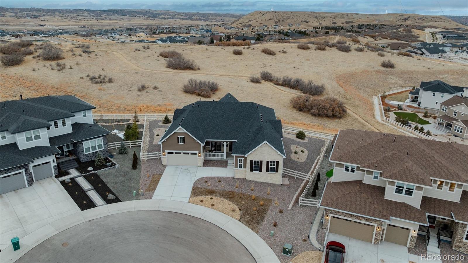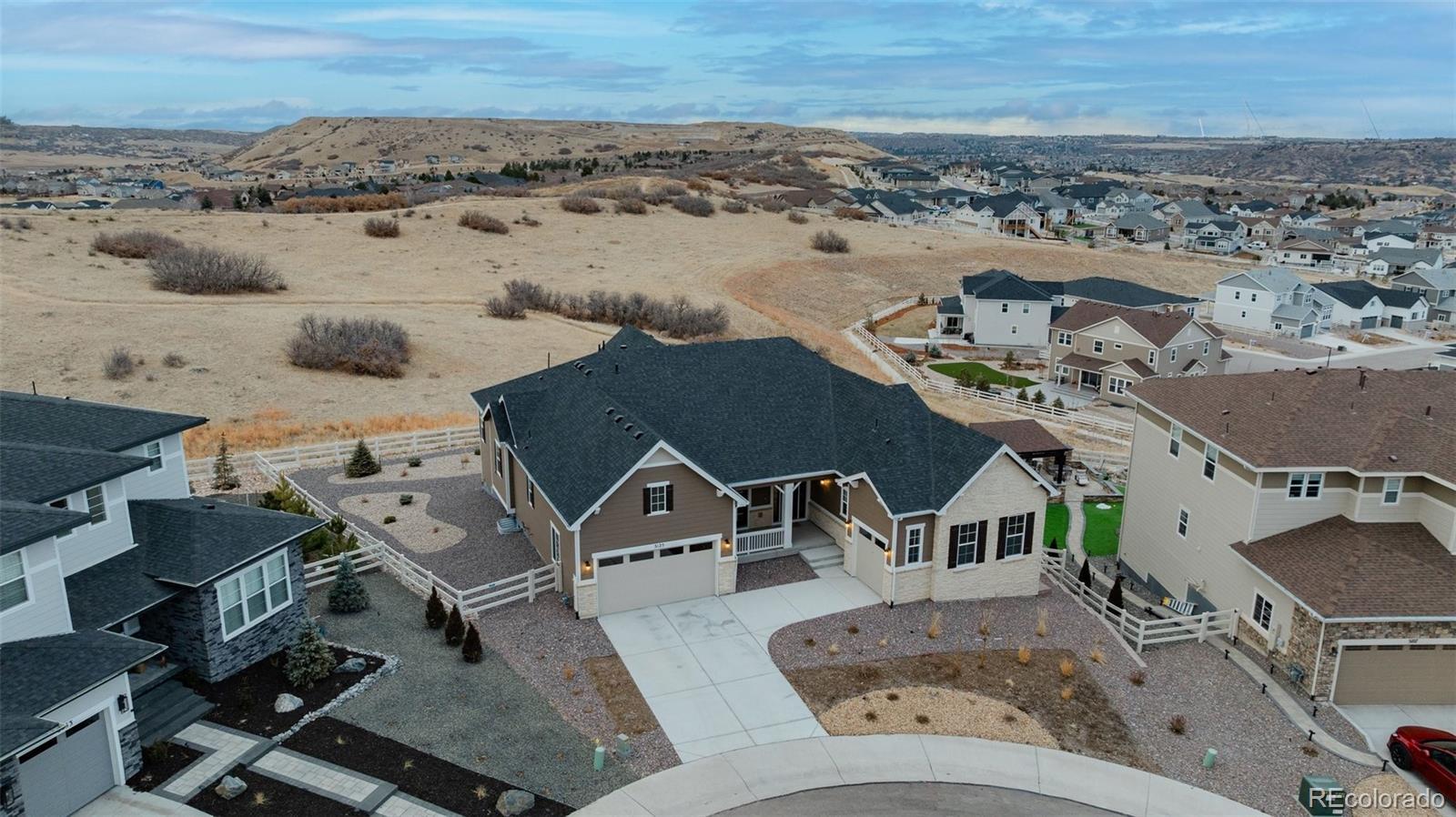 Welcome to 5125 Hickory Oaks St, a ranch-style Hanford designed for easy main-level living, elevated finishes, and a setting that delivers. Home sits at the end of a cul-de-sac on an oversized lot backing to open space, this home pairs privacy and views with a long list of after-purchase upgrades that new construction often skips or charges extra for. The main level features two secondary bedrooms connected by a Jack-and-Jill bath, plus a dedicated study with double French doors opening to the front porch. At the heart of the home, a gourmet kitchen anchors the open layout with an oversized quartz island with additional storage, stainless steel appliances, and a walk-in pantry. Just off the kitchen, an alcove office space with a built-in desk and overhead cabinets creates the ideal command center for homework, remote work, or household planning. The kitchen flows into the dining area and a welcoming great room with a fireplace, prewired for five ceiling-mounted speakers. Step outside to a large covered patio and extended deck cover, creating a true indoor-outdoor living space with open-space views. The primary suite offers a spacious walk-in closet and a private five-piece bath. A convenient laundry room and mudroom complete the main level, and the laundry room includes an added sink. The finished basement expands the lifestyle with a wide-open recreation room, a stunning wet bar, a shared bath, and two large bedrooms with walk-in closets. Major value-add improvements after purchase: Low maintenance landscaping, custom window coverings (including remote-controlled blinds for the 3-door telescoping slider), extended deck cover, remote-controlled irrigation system, security system, plus refrigerator, washer and dryer included. Minutes from downtown Castle Rock, trails, parks, dining, shopping, and quick access to I-25, this home delivers both convenience and the Castle Rock lifestyle, without paying builder premiums after you move in.