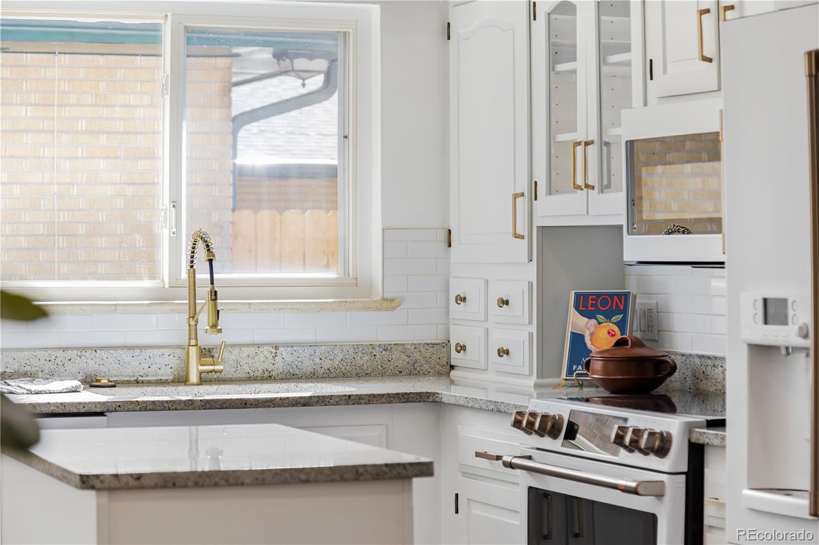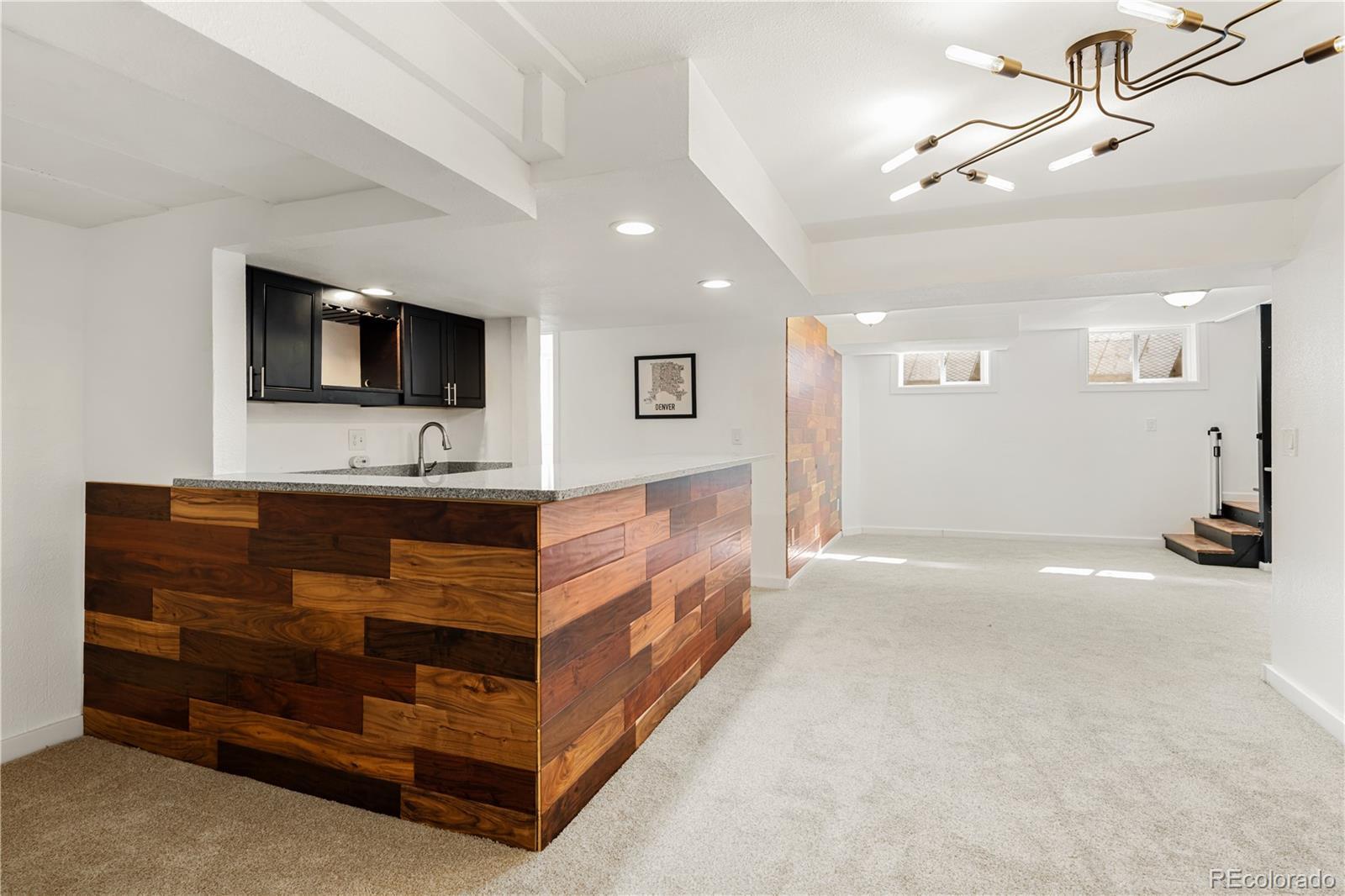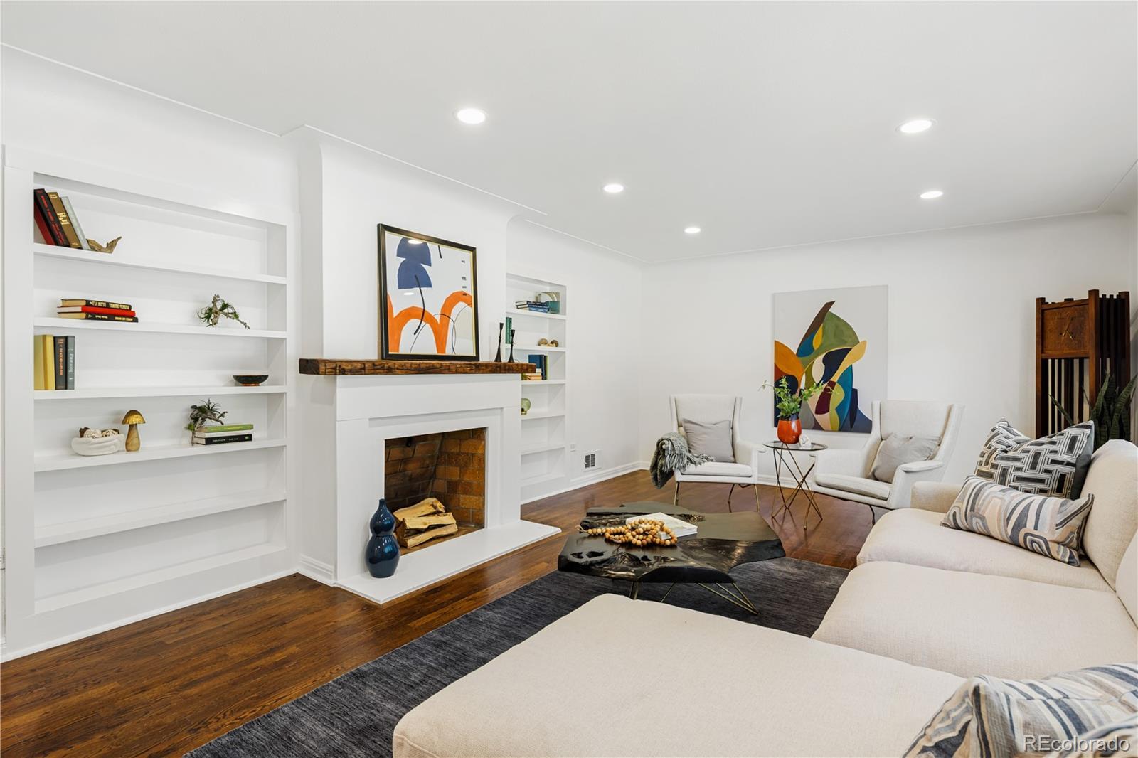 This is North Park Hill living at its best and it just got even more charming with this move-in ready, ranch-style home on a spacious lot. This mid-20th-century gem blends timeless character with thoughtful modern updates throughout. Step inside to find gleaming hardwood floors, original built-ins, and an open, inviting layout designed for everyday living and effortless entertaining. The remodeled eat-in kitchen is the heart of the home, featuring crisp white cabinetry, granite countertops, a center island, and a full suite of new Café appliances, perfect for the dedicated home cook or enthusiastic host. The main living room, anchored by a cozy gas fireplace, creates a welcoming gathering space, while a separate den offers wood-beam ceilings, painted exposed brick, a second fireplace, and direct backyard access for seamless indoor-outdoor flow. A formal dining room with built-in cabinetry and updated lighting sits at the center of the home, ready for memorable meals and celebrations. The oversized bedrooms provide generous closet space, while the primary suite feels like a private retreat with a bonus sitting area and easy walk-out access to the backyard. The main-level bathroom impresses with a dual-sink granite vanity, walk-in shower, and jetted soaking tub. The fully finished basement expands your living options with reclaimed wood accents, a kitchenette, a bedroom with egress, and a ¾ bath, deal for guests, in-laws, roommates, or a home office/workspace. Step outside to a private, fully fenced backyard with a large patio, plenty of room for outdoor dining, gardening, play, and pets. Major updates provide peace of mind, including newer furnace, gutters, siding, sewer line to tap, and solar panels for energy efficiency. Mature landscaping adds to the quiet, welcoming setting.Just a short stroll to Oneida Park and Kearney Plaza for coffee, dining, shopping, and community fun. Easy access to City Park, Downtown Denver, Central Park amenities and no HOA.