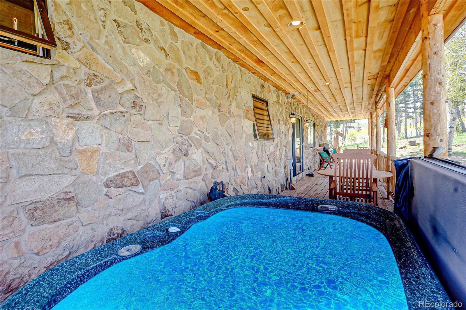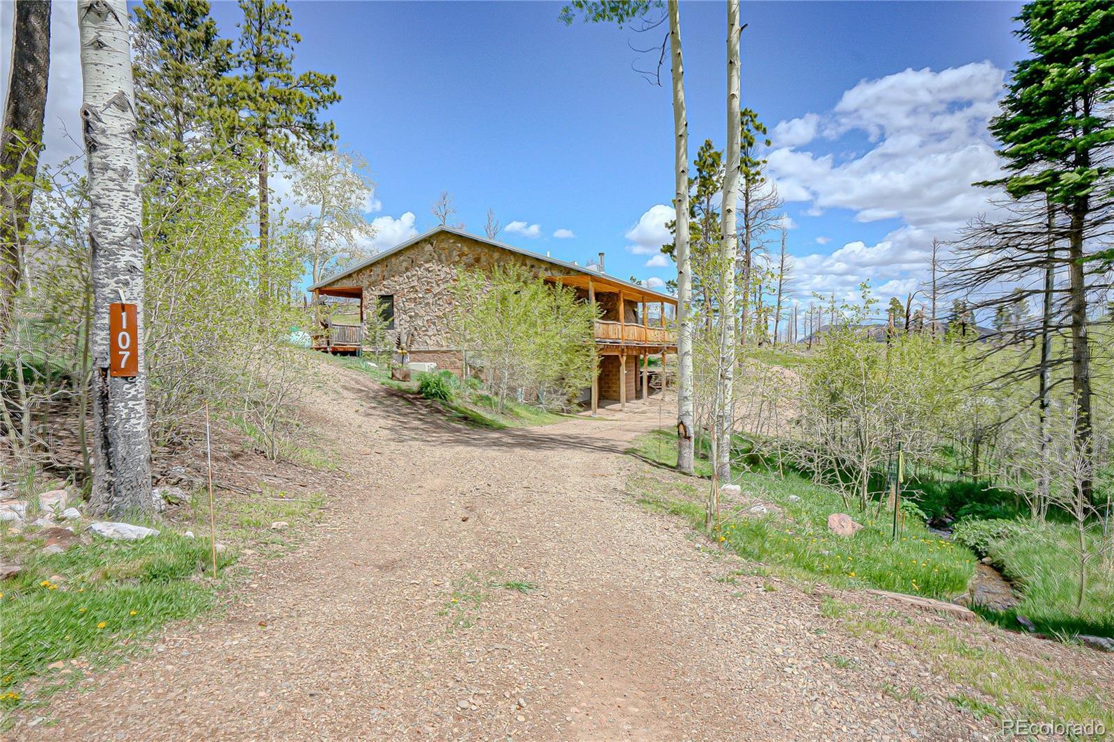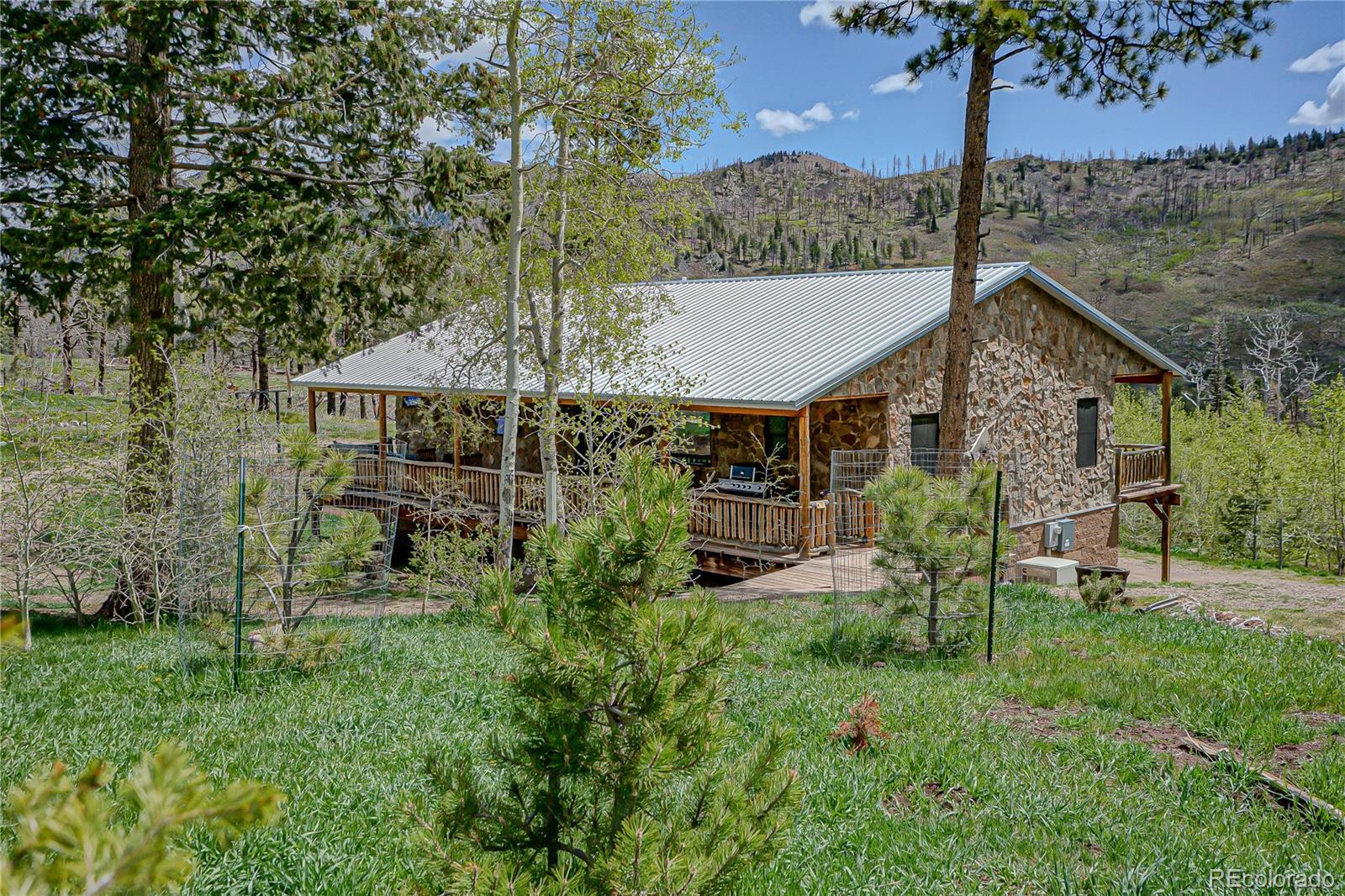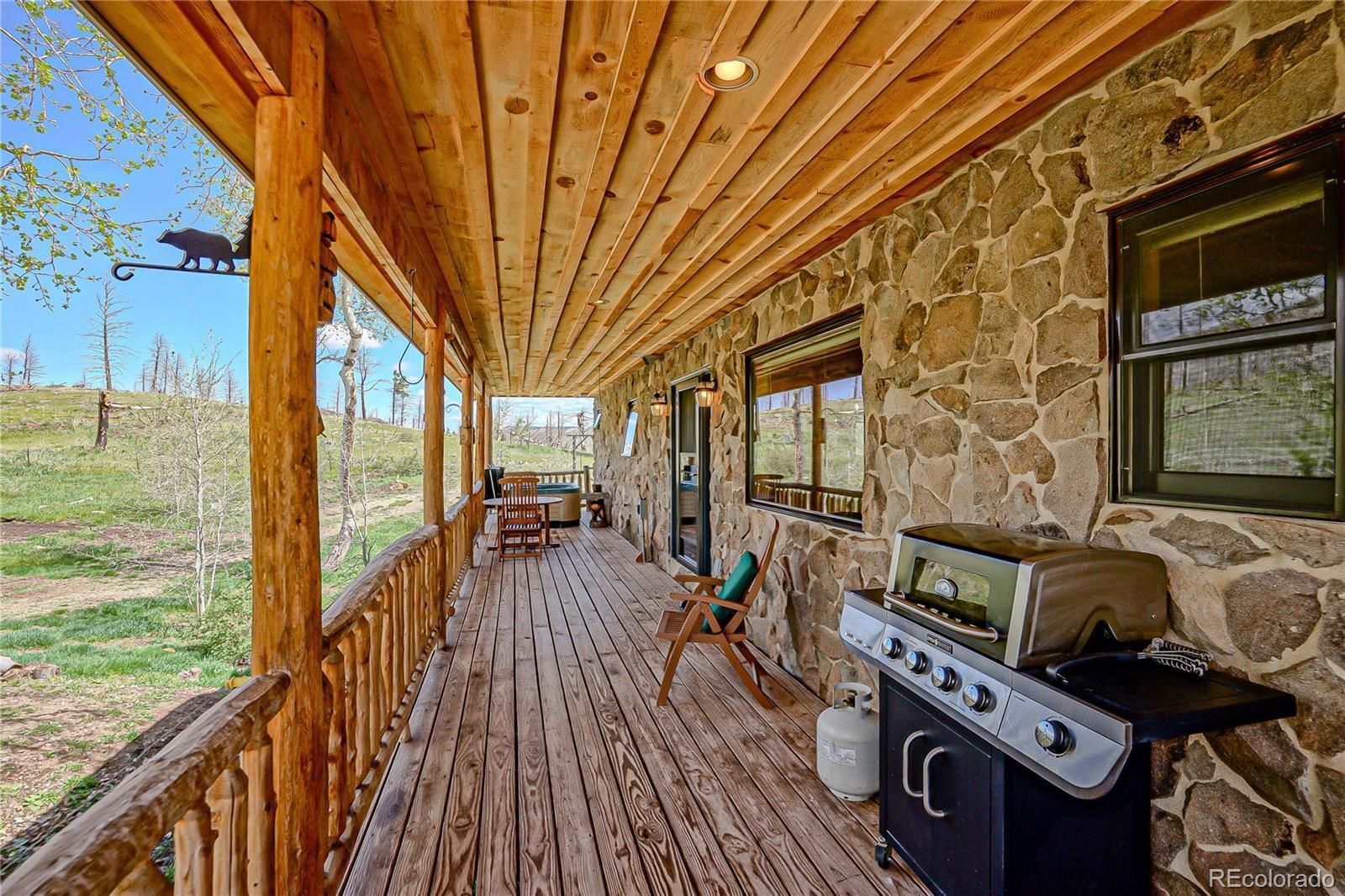 Exquisite Stone Home on 4 Acres - A Masterpiece of Craftsmanship. Discover your dream retreat in this stunning stone home, meticulously crafted with every detail in mind. Nestled on a sprawling 4-acre lot, this 3-bedroom, 3-bathroom sanctuary offers approx. 1,900 sq ft of luxurious living space, surrounded by breathtaking views and serene natural beauty. As you step inside, you're greeted by the warmth of a magnificent stone fireplace, complete with a wood-burning insert and fan, creating a cozy centerpiece for the open-concept living area. The custom kitchen is a chef's delight, featuring blue-stained pine cabinetry and top-of-the-line Jenn-Air appliances, blending rustic charm with modern sophistication. The home boasts a thoughtful layout, with three spacious bedrooms and two well-appointed bathrooms, offering ample space for family, guests, or a home office. The heated 1,100+ sq ft 3-car garage provides convenience and comfort, perfect for year-round use, whether for vehicles or a workshop. Outside, the property truly shines. Relax in the on-deck hot tub while soaking in panoramic views and the soothing sounds of your very own private stream meandering through the land. The expansive 4-acre lot is perfect for outdoor activities, gardening, or simply enjoying the tranquility of nature. This one-of-a-kind stone home combines timeless elegance, modern amenities, and a harmonious connection to its natural surroundings. Don't miss the opportunity to own this extraordinary property. Schedule your private tour today and experience the lifestyle you've always envisioned! HOA fee is $1,300 which includes road maintenance, water and trash.