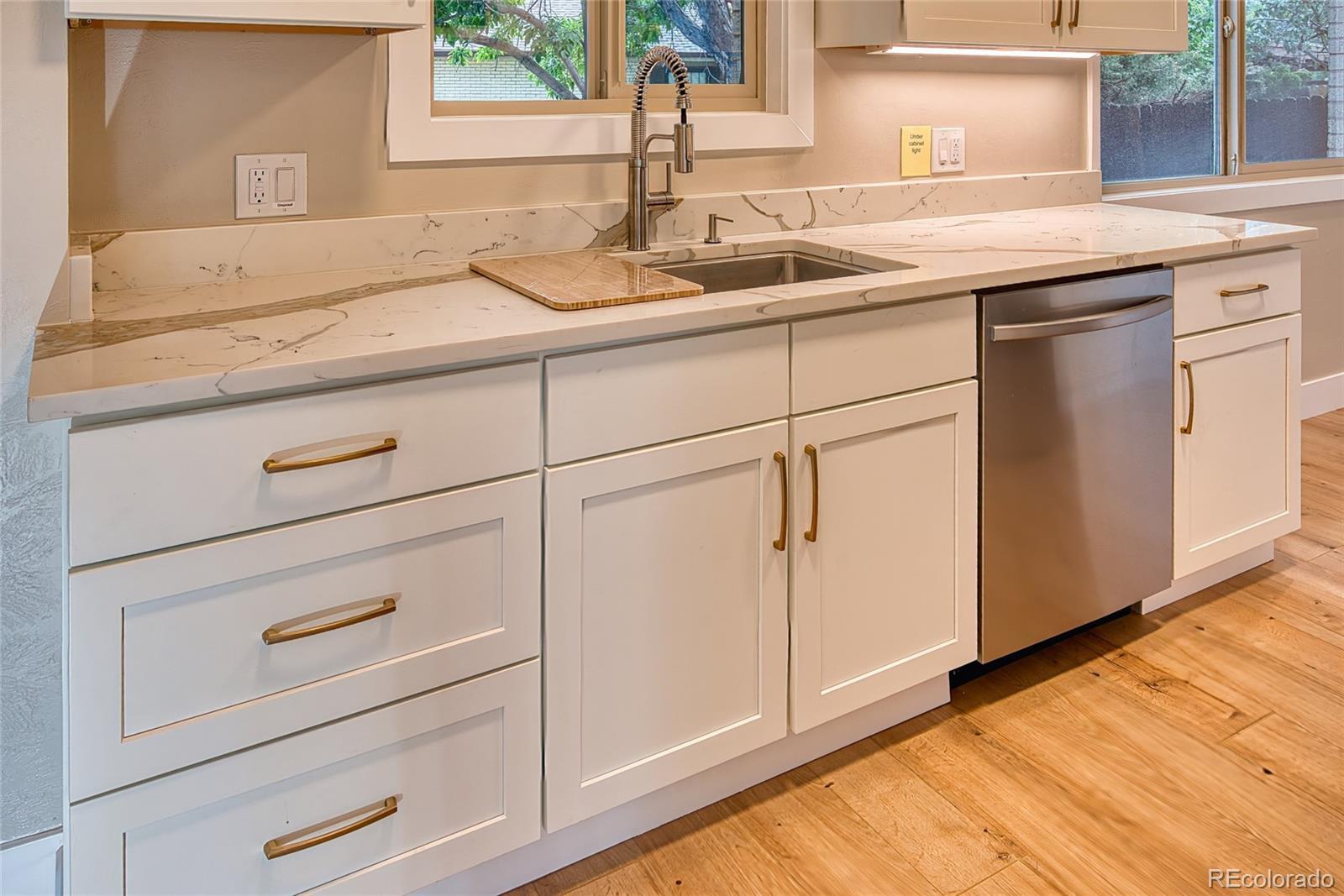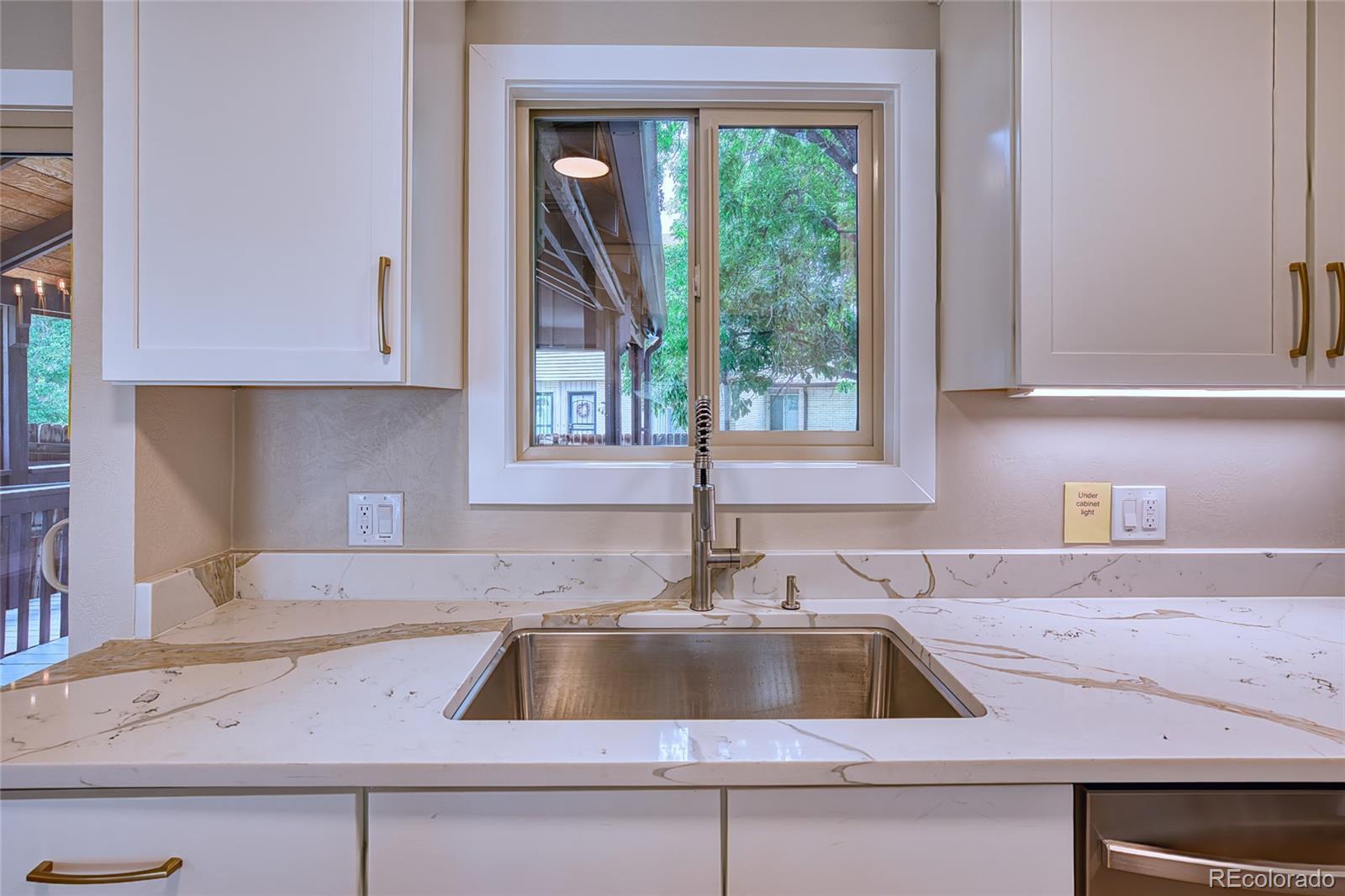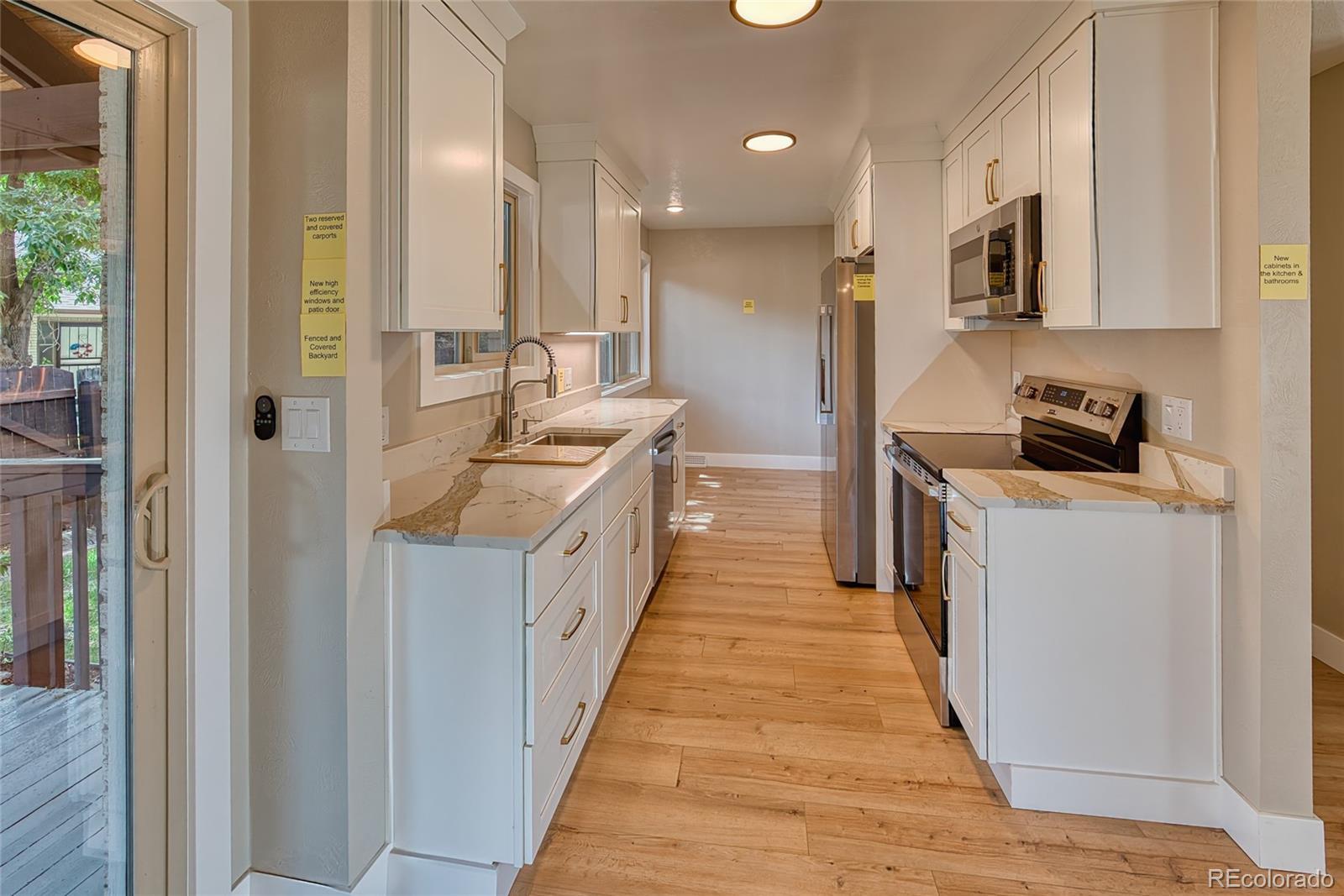 Welcome home to a fabulous remodel of a lovely ranch style townhome in Columbine Lakes! This home offers a perfect setup with a detached carport, covered deck, fenced backyard, two bedrooms and two bathrooms on the main floor, and an additional bedroom and bathroom in the basement. This flexible floor plan provides numerous options, whether for a family, roommates, or rental purposes. The basement also boasts extra space and storage, including a large laundry room, which is a rare find in a townhome. The extensive remodel includes: Kitchen: All new with white shaker cabinets, quart counters, and new stainless steel appliances. Lighting: New LED light fixtures throughout. Windows: All new high-efficiency windows. Flooring: New tile, new carpet, and new wide vinyl plank flooring. Interior Details: New metal railings, new paint, and new doors, hardware and trim. Bathrooms: All three bathrooms have been updated. Ceiling: No popcorn ceiling. Smart Home: New Wi-Fi thermostat, entry lock, and smart kitchen range. Amenities: Wood-burning fireplace and a wet bar in the basement. Conveniently located within the highly-rated Littleton Public Schools district, across the street from Wilder elementary, this home offers easy access to shopping, restaurants, and highways. You'll also enjoy a generous fenced backyard with a covered deck, perfect for grilling or pets. Plus, it's just steps away from open space, ponds, fishing, and trails, providing plenty of room to run and play.
