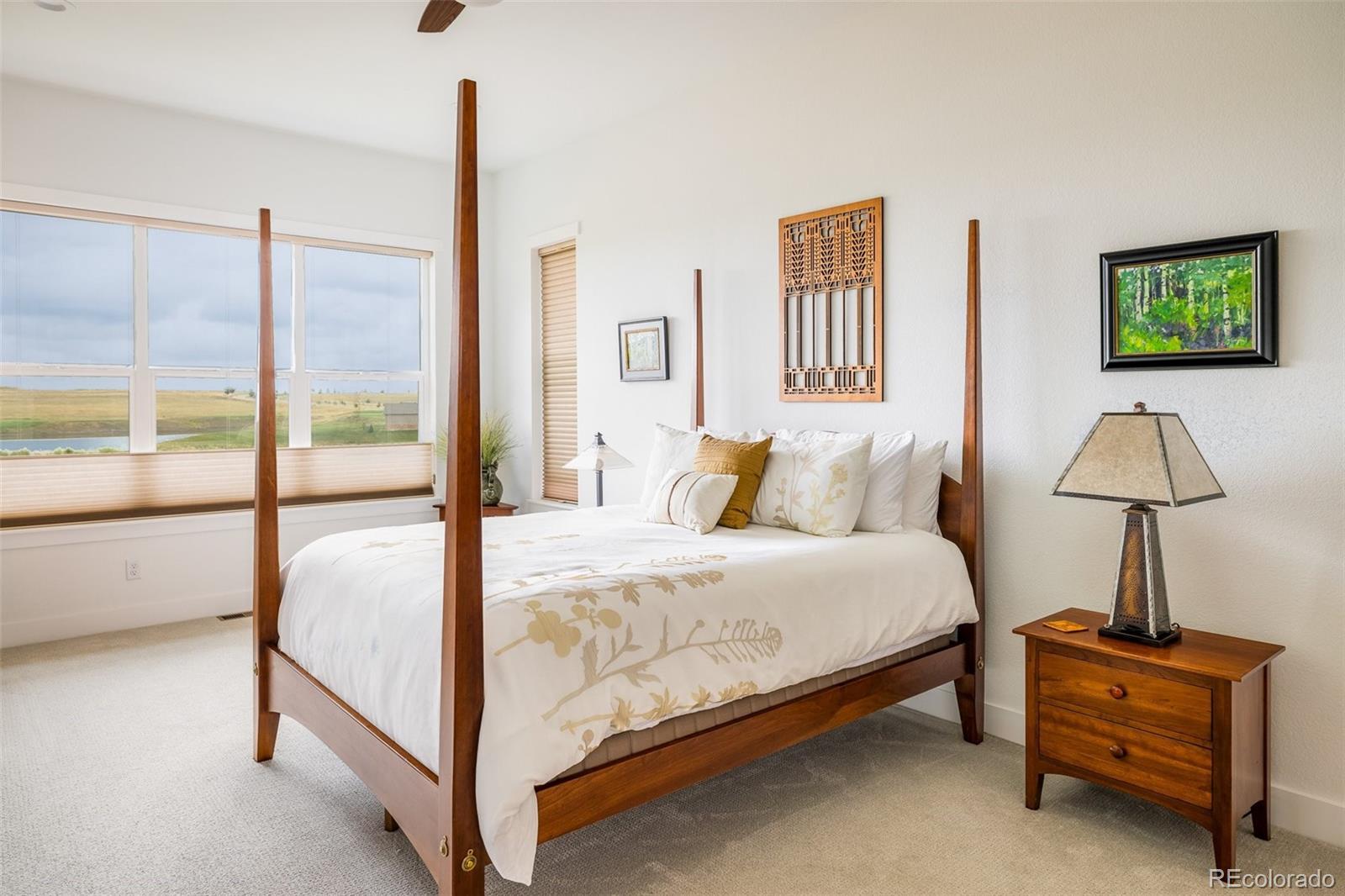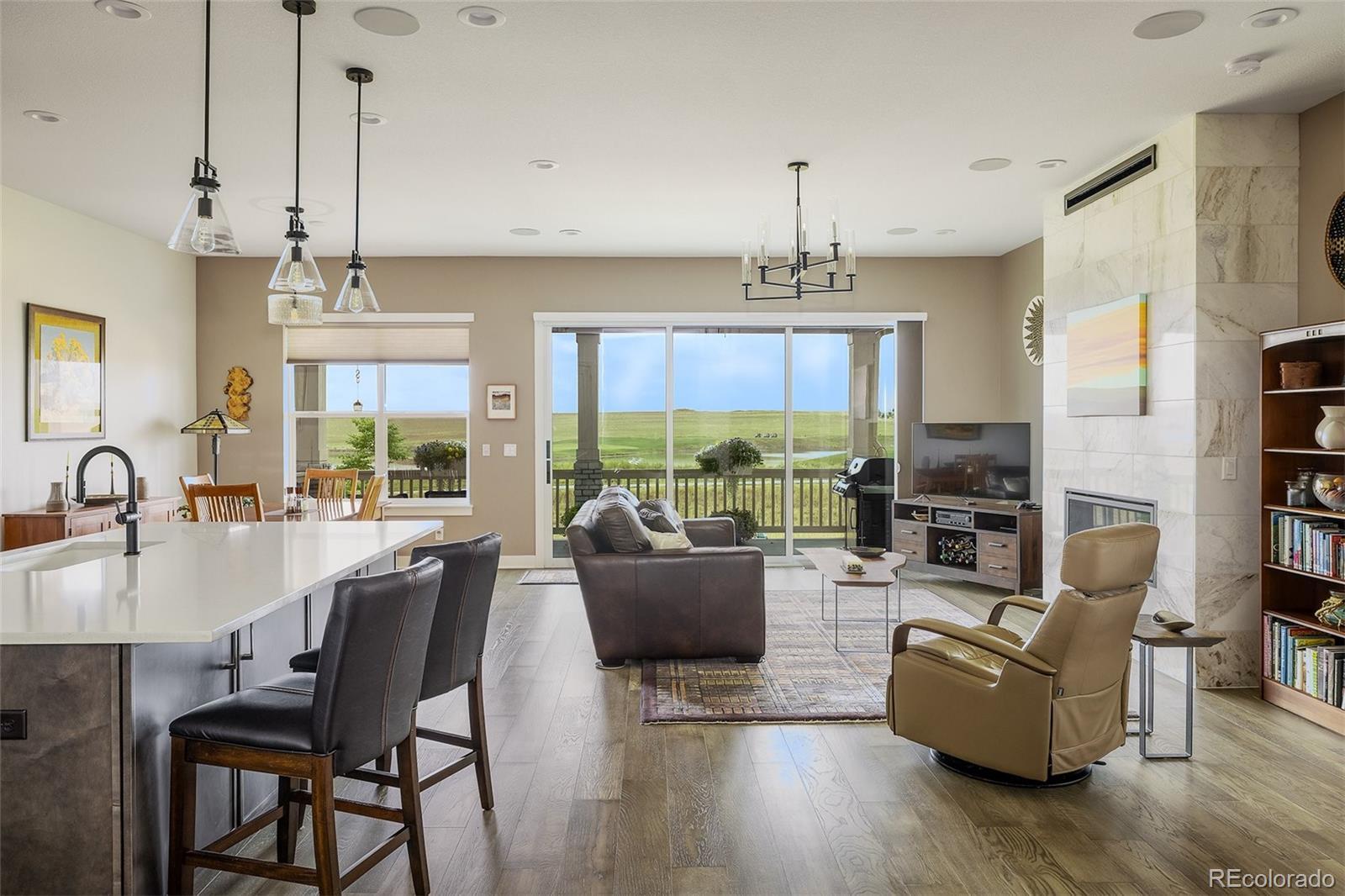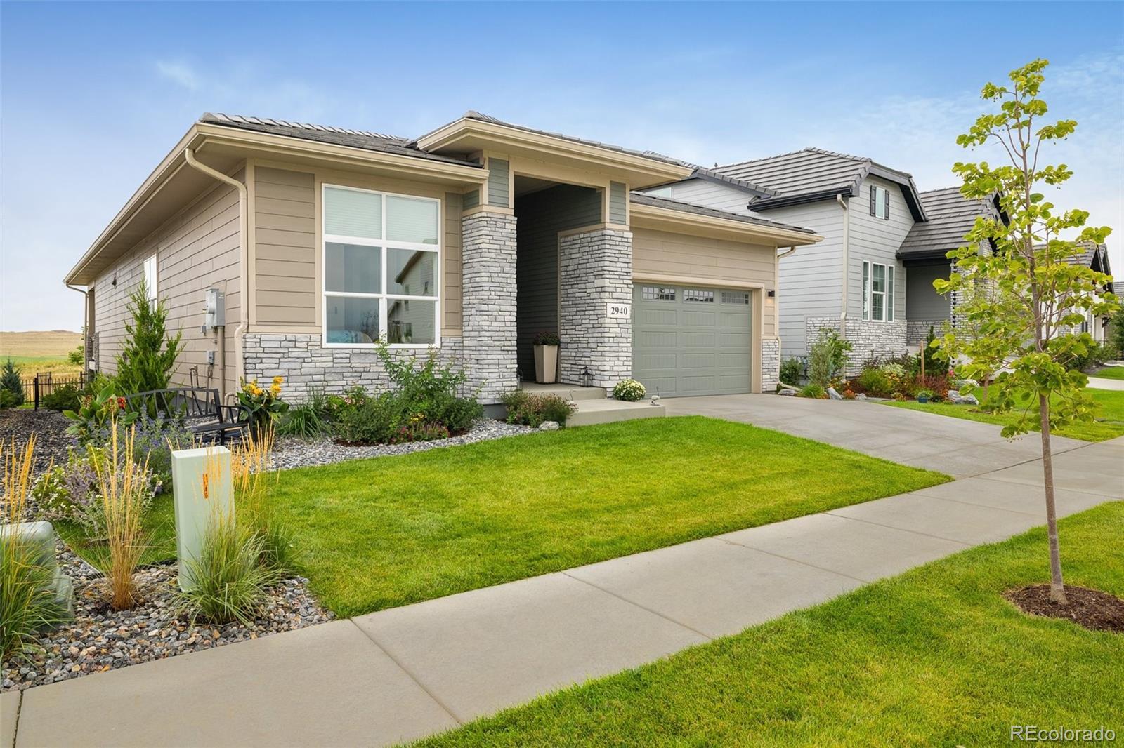 Discover your new home with stunning golf course, lake, & mountain views. This desired ranch-style home comes w/ maintenance-free living in a resort-style community. Situated away from the tee & the green on the 3rd hole of the Heron Lakes TPC golf course, you will enjoy the expansive views out the large windows & 3 panel sliding door. The open-concept design provides the perfect connection for the expanded kitchen, great room, large kitchen island & covered deck. A gas floor to ceiling fireplace & hardwood floors make this a comfortable place to spend your time. On this floor, you will find a spacious primary bedroom with two walk-in closets. Large bathroom with an ultra -shower, double vanity & water closet complete the ensuite. Down the hall, you will find an office (possible 5th bedroom), laundry room, full bathroom, and cozy bedroom with a view of the mountains. Head down the stairs to the garden level to find two large bedrooms w/ walk-in closets and large daylight windows. The rooms' transom windows extend the natural light into the game room, entertainment area w/ fireplace, and bonus craft room/wet bar/possible kitchenette. Beyond these rooms, you will find the third bathroom & ample storage areas. Light oak wood flooring & custom cabinets create a wonderfully livable area. On the covered deck, you can enjoy the views of the golf course & "Newfound Lake" on Colorado's warm summer evenings. The deck stairs will take you to the fenced yard & lead you out to the newly designed & installed xeriscape landscaping with bench to view the mountains. Weekly lawn care & winter snow shoveling are provided by the HOA. Enjoy all the amenities that come with owning a home at Heron Lakes. The beautiful clubhouse has two restaurants, a resort-style pool with a swim-up bar in the summer, a year-round state-of-the-art fitness center & miles of walking trails. Also available is membership to the Lone Tree Reservoir where you can boat, paddle, or swim during warmer months.