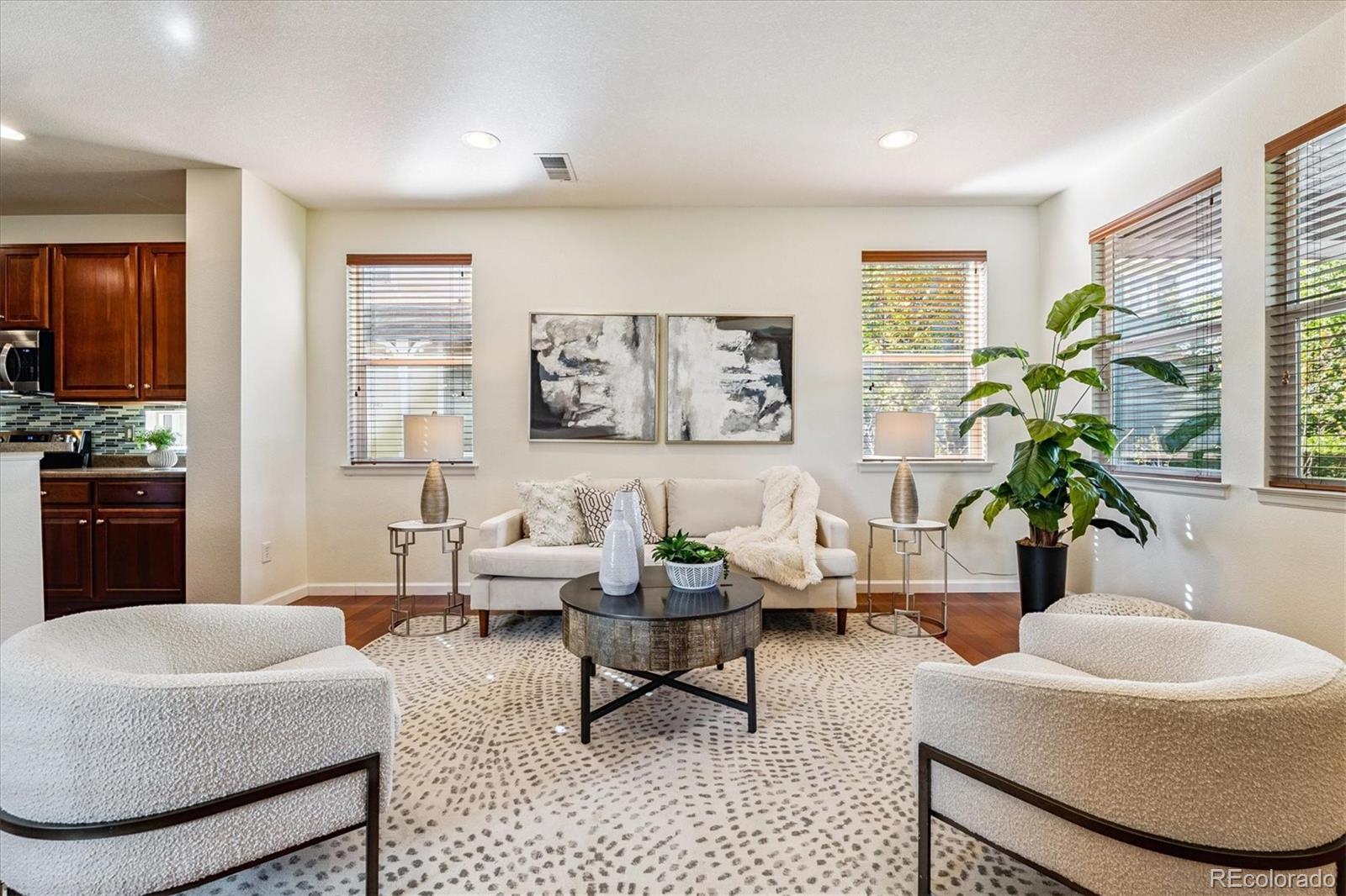 Incredible Buyer Incentive—Up to $12,598 in buyer credits—seller will contribute 1% (up to $6,299) toward buyer closing costs, prepaids, or a rate buydown—putting real money back in your pocket. Sample lender scenarios (as of 10/01/2025) show a Year-1 rate as low as 4.375% via buydown for qualified buyers. Even better? An additional 1% lender-paid credit (up to $6,299) may be available when financing with a participating lender. Ask agent for details. Or take advantage of a VA 2.375% INTEREST RATE ** That’s right, this home also features a VA assumable 2.375% interest rate for qualifying veterans, active military, and eligible buyers! LOCATION! LOCATION! This sought-after South End Neighborhood of Central Park home is perfectly located with close proximity to Central Park’s extensive trails, parks & open spaces, the 80-acre Central Park, the 29th Avenue Town Center, Stanley Marketplace, Anschutz Medical Center, 7 community pools, year-round community events, and more. Commuting is easy with quick access to I-70, the light rail A-train with an easy commute to Downtown Dever or Denver International Airport. This 3 bedroom, 3 bathroom Central Park home offers a picturesque curb appeal with a front covered porch where you will enjoy the lifestyle of a grassy courtyard. The main features an open floor plan including a spacious living room, open to the dining room and fantastic kitchen with stainless appliances, 42" upgraded cabinets, dine-in kitchen island, and large pantry. A convenient powder bath, laundry room, and attached 2-car garage add to the home’s thoughtful functionality. Upstairs, the serene primary suite provides a relaxing retreat complete with a large closet and 5-piece bath, two additional bedrooms, and a full bathroom. This home also features mature landscaping, rich wood floors, full-size washer and dryer, 2-car attached garage, a new roof (2025), new kitchen appliances, newer carpet; fresh interior paint, and fantastic outdoor grassy courtyard.