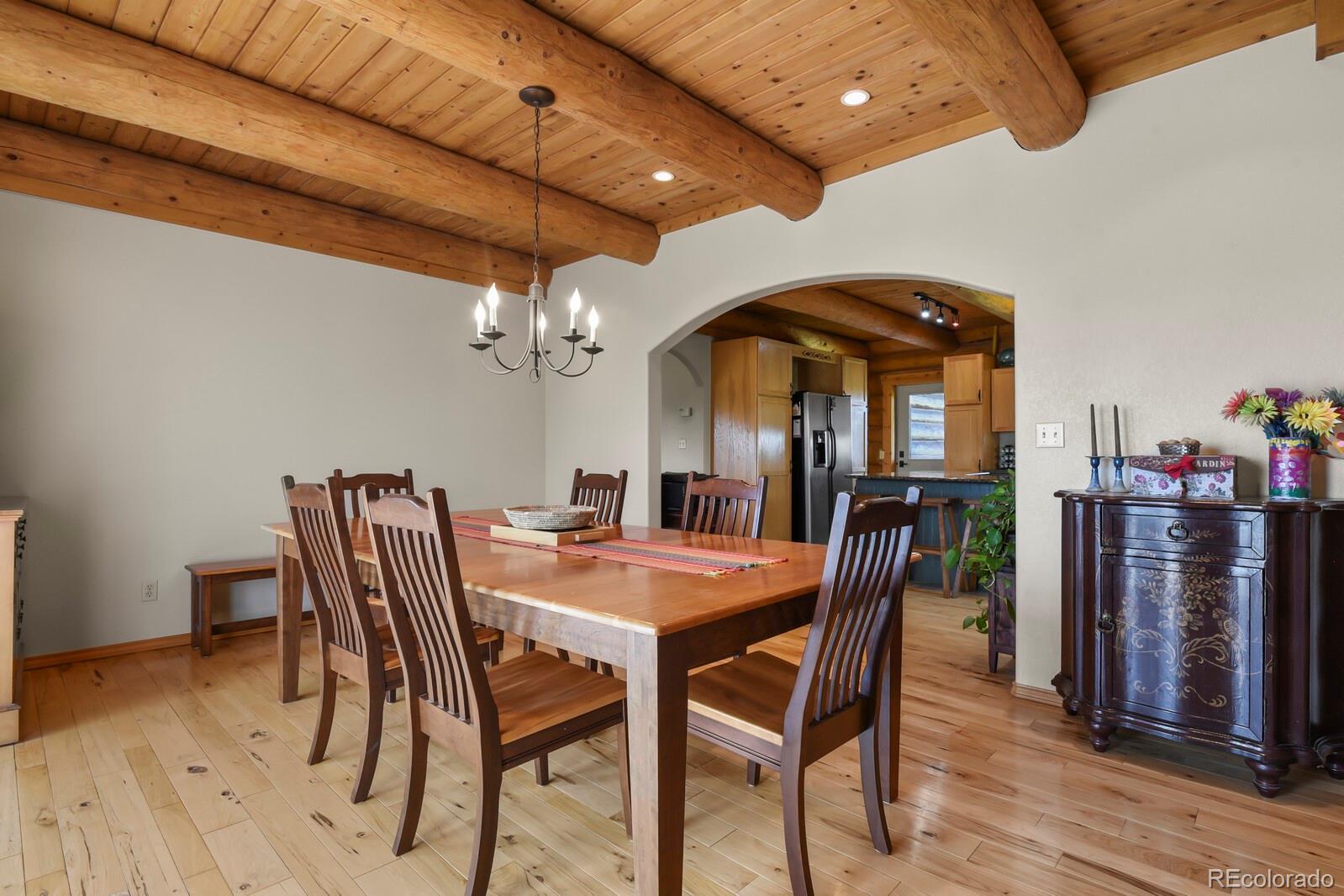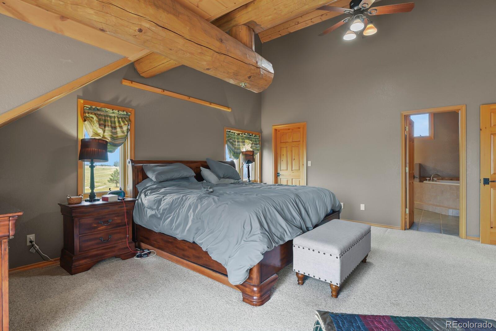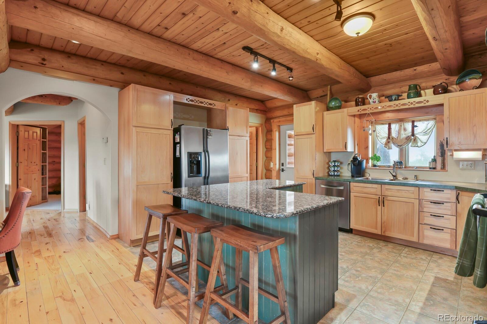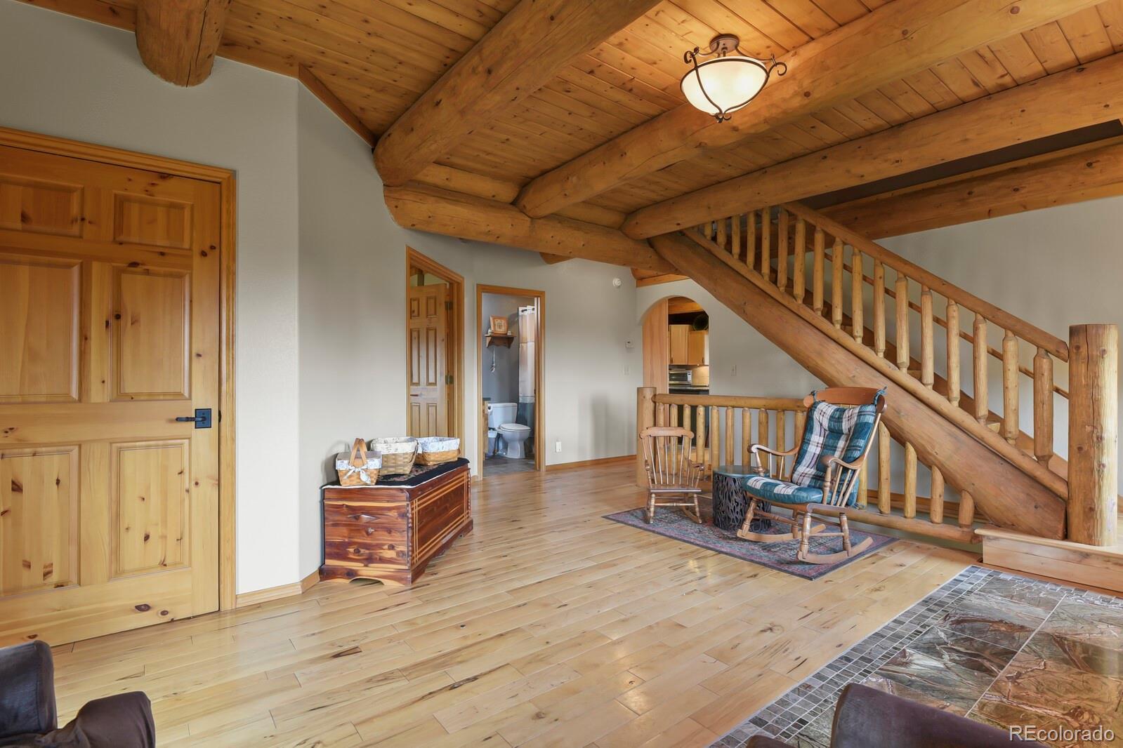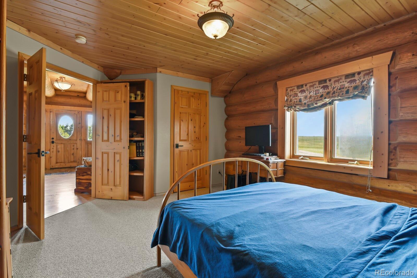 Own your private slice of Colorado paradise with this custom-built log cabin on over 36 acres—just minutes from downtown Castle Rock! This spacious four-bedroom, three-bath home features stunning log construction, soaring wood ceilings, and warm wood finishes throughout, blending rustic charm with modern comfort. The open-concept main living area is highlighted by a striking open fireplace, perfect for cozy evenings, while the kitchen offers stainless steel appliances and ample space for entertaining. A brand-new roof in 2025 adds peace of mind. Step outside to enjoy panoramic views of Castlewood Canyon State Park and the mountains from the expansive wood porch and back deck. The large unfinished basement is ready for your personal touch—ideal for adding living space, a home gym, or a media room. A three-car garage provides generous storage, and with horses allowed, there’s room to create your dream ranch setup. Whether you're looking for privacy, natural beauty, or room to roam, this property offers a rare combination of space and convenience.