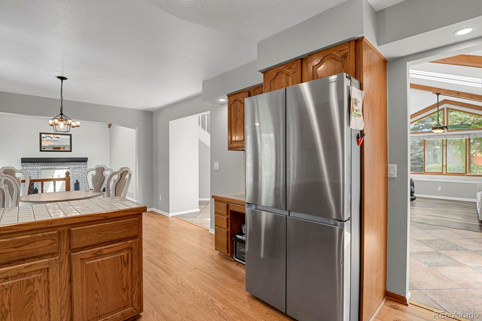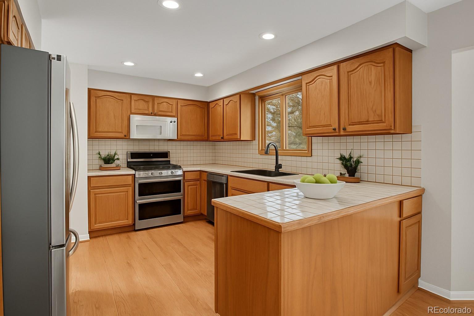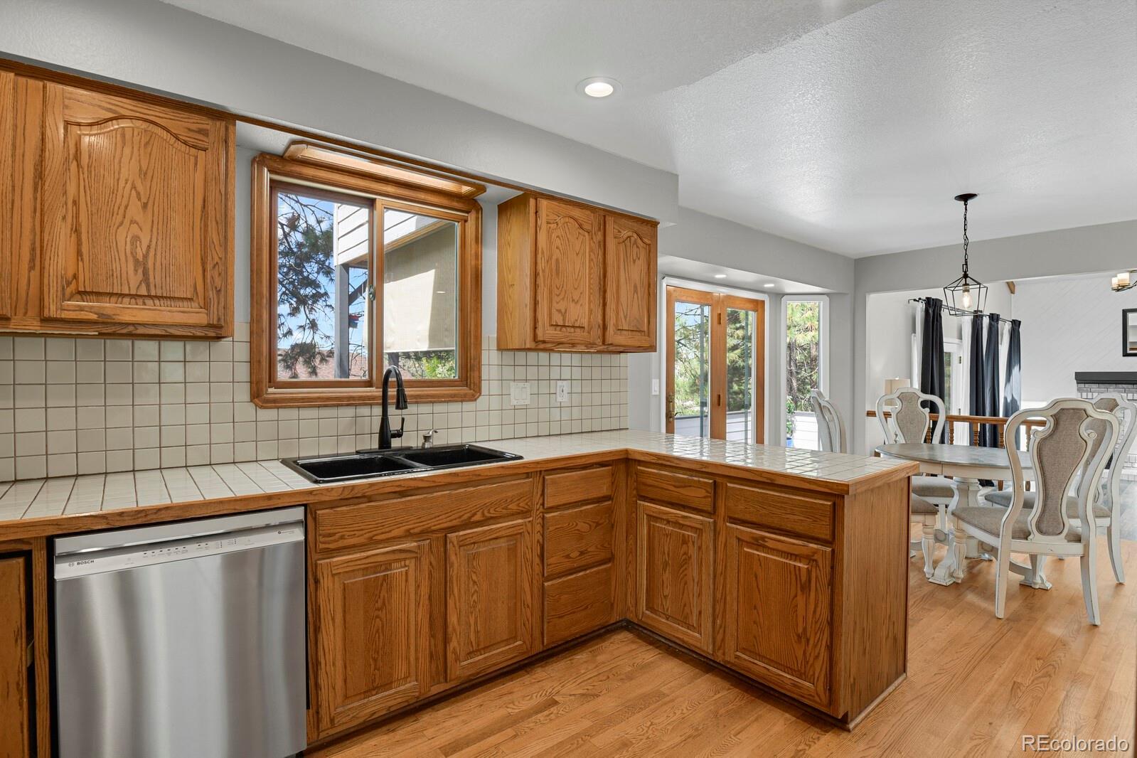 PRICE IMPROVEMENT! Welcome to The Pinery – where natural beauty meets exceptional living on a beautifully tree covered lot. Located just minutes from Denver, this sought-after community offers a rare combination of tranquility, wildlife, and suburban convenience. Positioned on a .23-acre lot, this well-appointed residence features 5 bedrooms and 3.5 bathrooms, including a finished walkout basement with a generous area perfect for den, game room or an additional family room, a fourth bedroom with en-suite bath, and a fifth non-conforming bedroom or office—ideal for guests, multigenerational living, or remote work. The upper level includes a spacious primary suite with a five-piece bathroom, two additional bedrooms, and a full hall bath. Interior highlights include: Updated flooring (with additional material included). Sensor lighting for enhanced efficiency and convenience. Skylight covers that open and close with ease. Significant recent improvements include a newer roof, interior and exterior paint, carpet, furnace, water heater, and kitchen appliances, providing peace of mind for years to come. The exterior offers professional landscaping, a sprinkler system (including turf coverage for self-cleaning), and an extended driveway pad for additional parking. The kitchen is fully functional and offers an excellent opportunity for customization—perfect for those looking to add value and personalize their home. Don’t miss this opportunity to own in one of the most desirable neighborhoods on the Front Range. Some of the photos have been virtually staged.