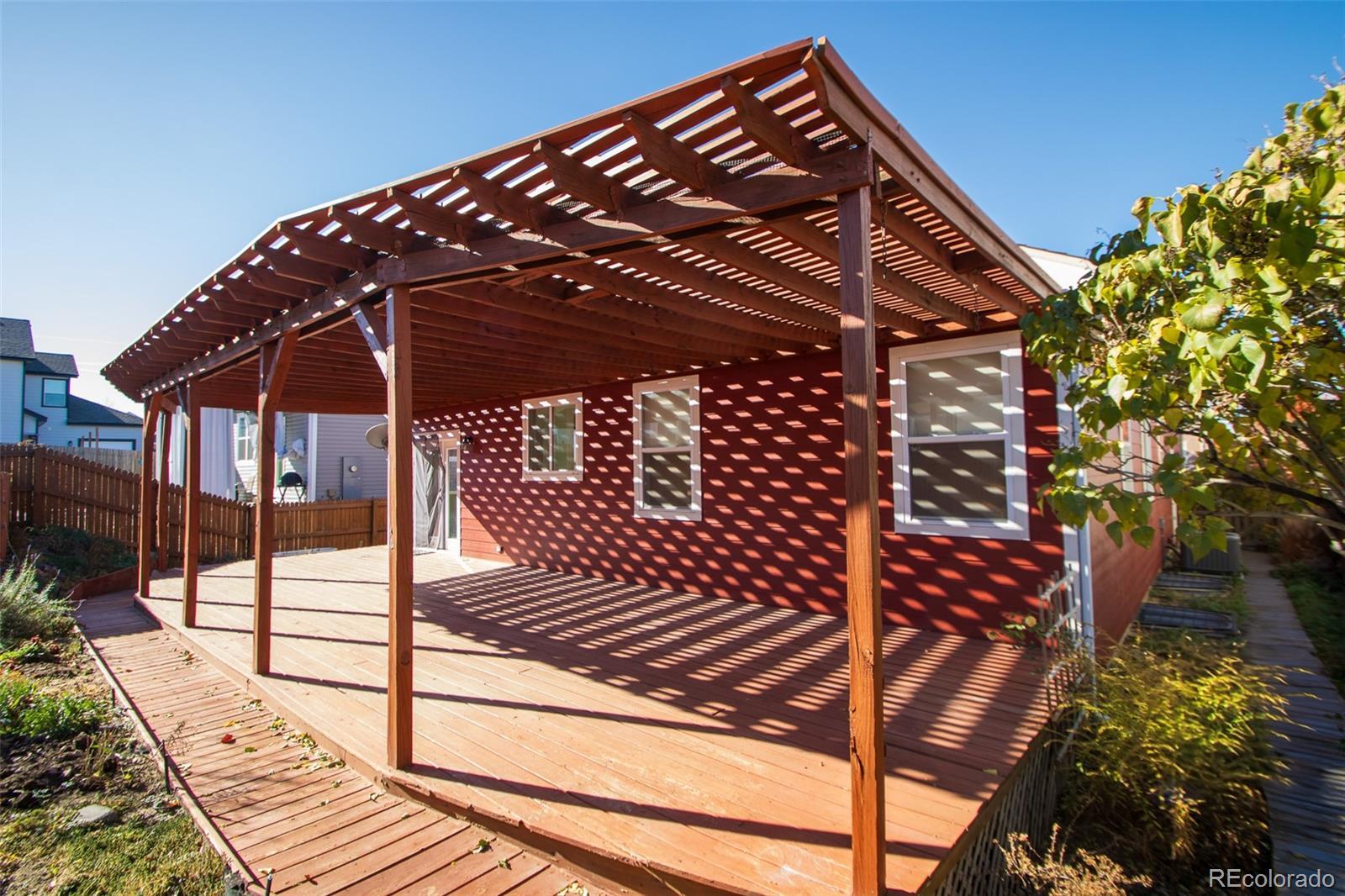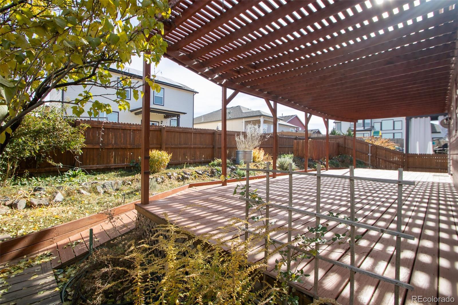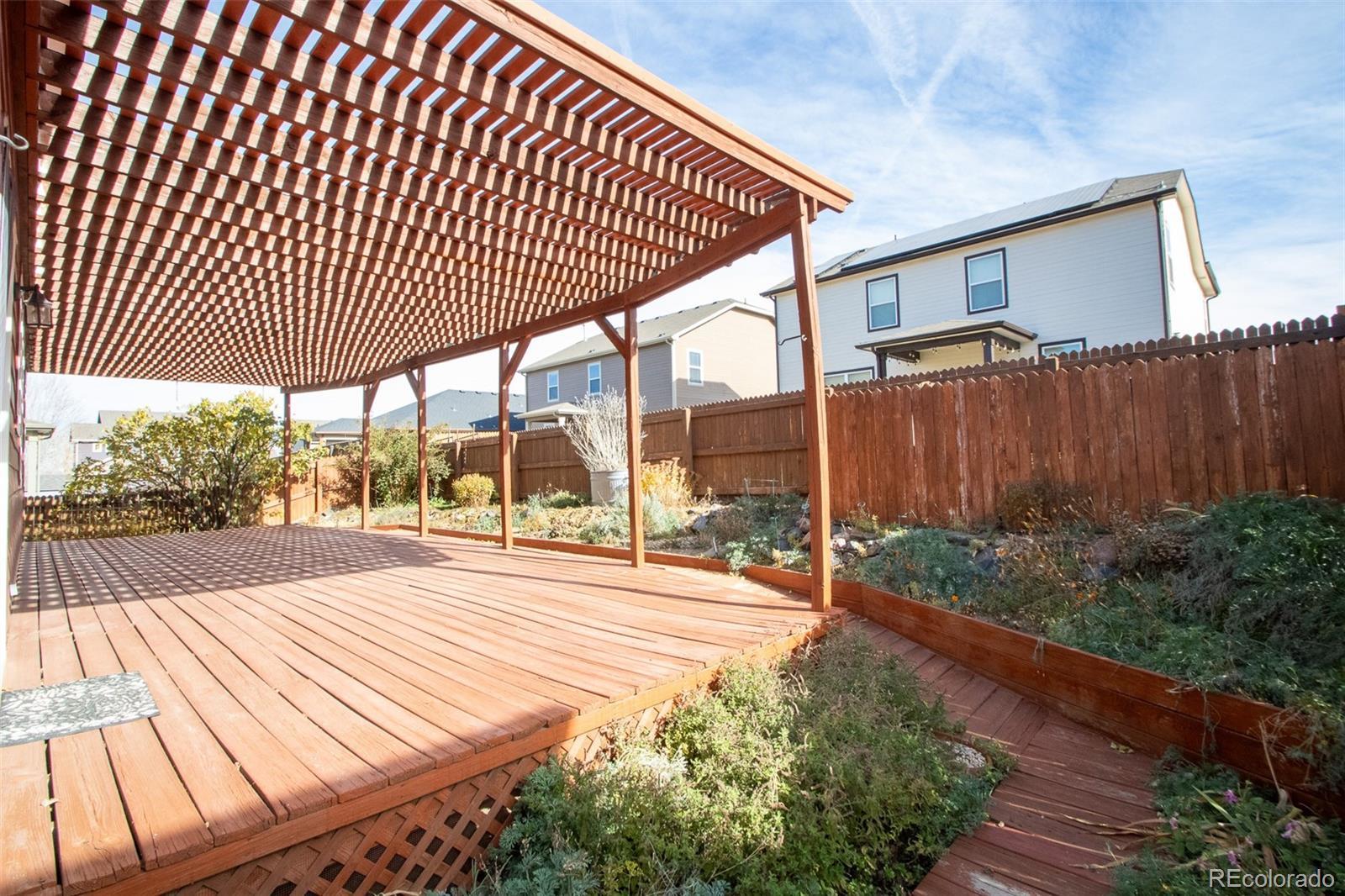 NO Metro Tax!! Welcome to this beautiful and meticulously maintained 3,066 sq ft ranch with a full finished basement. This one owner home shows true pride in ownership and features a gardener’s paradise, complete with a sprinkler system in the front, and drip lines in the back yard. Enjoy outdoor living on the large back deck in the private back yard, or on the inviting covered front porch. The main floor includes 3 bedrooms and 2 bathrooms, vaulted ceilings, an open concept layout, and abundant natural light. The spacious kitchen and dining area offer an island, pantry, and all kitchen appliances are included. The primary suite features a vaulted ceiling, bathroom ensuite with large shower and walk in closet; the secondary bedrooms are roomy with large closets. The fully finished basement provides an enormous rec room—perfect for entertainment, hobbies, or additional living space—and includes a convenient 3/4 bathroom. The 2 car garage offers storage shelves and an exterior door to the back yard. This home offers comfort, space, and outdoor beauty in one complete package!! HVAC system w/ smart thermostat and water heather are approx 1 year old. Located in a quiet established neighborhood, near parks, schools, restauraunts, shopping, and other amenities. Near I-76, Hwy 7and Hwy 85 and E-470, with a 20 min drive to DIA and 25 min drive to downtown Denver.