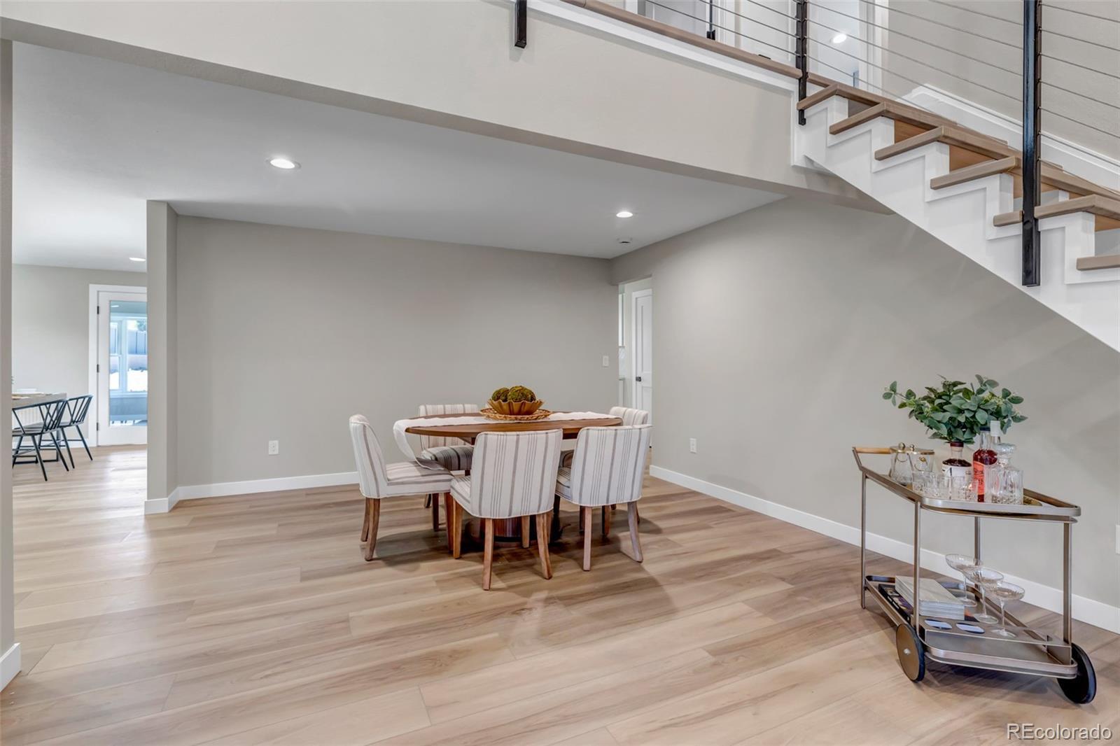 Welcome home to a stunning, fully renovated home that blends modern finishes with warm, livable spaces. This property is being sold together with 130 S Garrison St, offering a rare opportunity to own a combined .75-acre lot in the heart of Lakewood — perfect for expanded outdoor living, future development potential, or multi-generational living. Step inside to discover a complete top-to-bottom remodel featuring luxury vinyl plank flooring, all-new lighting, and designer finishes. The brand-new kitchen is a showstopper with custom cabinetry, premium Café appliances, perfect for both everyday living and entertaining. The inviting family room and lounge are anchored by a double-sided fireplace, creating a warm, connected space ideal for gathering. You'll also find a beautiful dining room and large enclosed sunroom, fully finished, expands the living area and offers year-round enjoyment. The main floor includes a bedroom and a stylish ¾ bath, providing flexibility for guests, a home office, or multi-generational needs. Upstairs, you’ll find three bedrooms, including a spacious primary suite with a large walk-in closet and a private ensuite bathroom featuring a custom double-sink vanity. You will also find a large secondary bathroom that services the additional bedrooms. All of the bathrooms in this home are equipped with high end finishes that include fixtures, mirrors, cabinetry and tile. The finished basement offers even more living space, with a large recreation room and wet bar complete with a wine cooler — perfect for entertaining. There’s also a laundry room with a utility sink, plus a flex room. Outside, You'll love the high end privacy fencing encompassing the backyard that provides direct access to Garrison St, offering a unique opportunity to build a guest house or pool house. This lot also includes a poured RV pad. With a massive lot, the possibilities are endless — add a pool, an ADU, or create your own private oasis to match your vision.