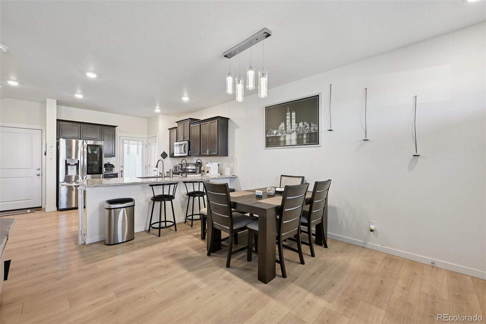 Welcome to this beautiful 3-bedroom, 2½-bathroom home in the Horizon Uptown master-planned community. Built in 2021 and approximately 1,577 sq ft, this single-family residence features a 2-car attached garage and modern, energy-efficient construction. Inside you’ll find an open layout with granite countertops in the kitchen, smart stainless steel appliances, and wide-plank flooring. The home also offers a tech niche, smart upgrades such as a video doorbell, smart thermostat, and radon mitigation system. Outside, enjoy a front porch, partial fencing, beautifully landscaped yards, and access to neighborhood amenities like walking trails, picnic and pocket parks, and playgrounds. Ideal for those seeking comfort, style, and modern living in a vibrant community.