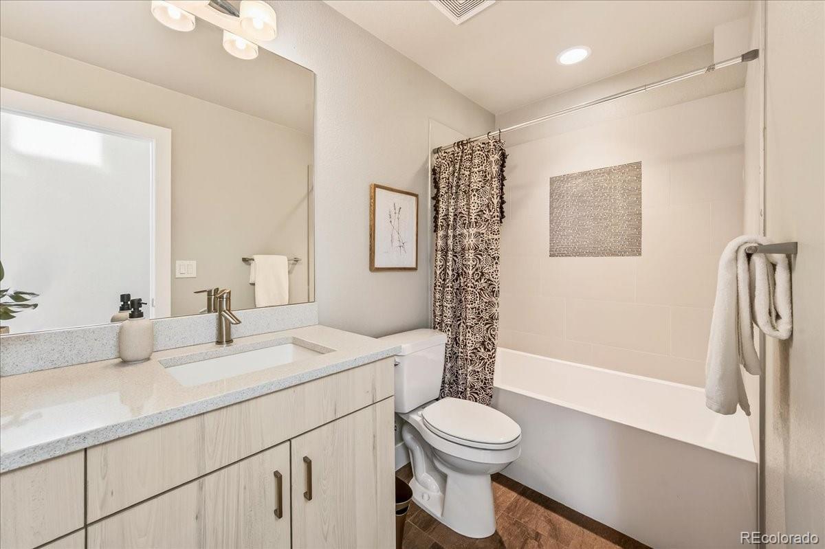 This must see end unit has been refreshed and ready for its next owner. Recently reintroduced with professional staging, updated photography and an even more enticing price! 4943 Lowell Blvd #1 presents exceptional value being near Regis University, Tennyson Street, pickleball, golf, parks, lakes and more. As a former model, you’ll find high end finishes and designer touches throughout with upgraded cabinets, lighting and fixtures. The main floor boasts a wonderful open floor plan that’s just perfect for entertaining! Here you’ll find a very spacious great room with a covered balcony, a bar area, gas fireplace and a corner nook perfect for a home workstation. The chef’s kitchen has a beautiful 10’ quartz island, stainless steel appliances, gas stove and nice sized pantry. Upstairs has a bright corner nook-perfect for a home office; your laundry area; and two very spacious bedrooms, as both can fit king size beds! The primary bedroom has a walk-in closet, a private balcony and an impressive en-suite bath with beautiful tile, a shower bench and dual rainfall shower heads. Let’s not forget the amazing rooftop deck which features both mountain and city views. This end unit townhome is truly the biggest bang for your buck. Perfect for buyers who value convenience, accessibility, and long-term gains. Whether owner-occupied or investment-minded, this is a compelling opportunity, all without an HOA.