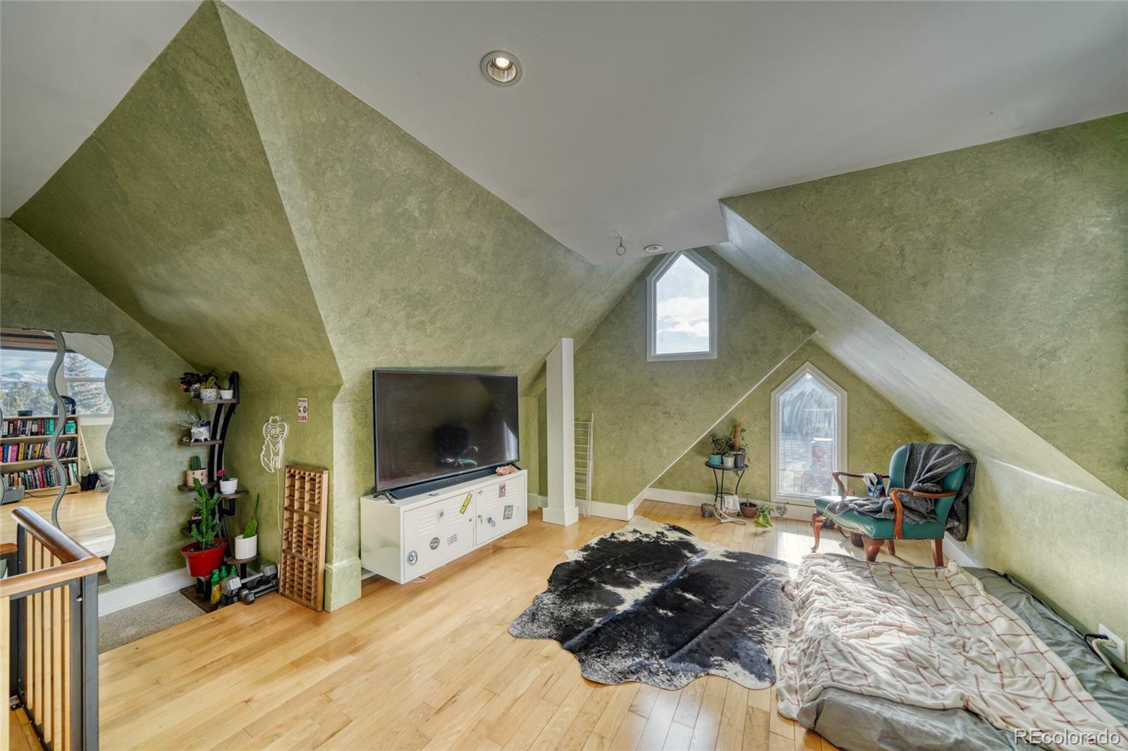 Perched high on desirable Ridgeview Dr, this 2,709 sq ft Leadville home delivers mountain views, vaulted ceilings, & an open layout filled with natural light. With 4 bedrooms & 2 baths, there’s room to spread out, host friends, & actually live comfortably—whether you’re here full-time or using it as a mountain getaway. The main level opens up beautifully with a spacious kitchen & living room that connect & invite conversation. French doors lead to the rear deck, making it easy to grill, gather, & enjoy summer nights under big Colorado skies. You’ll love the hardwood floors & the slate-tiled bath that adds a timeless, elevated touch. Upstairs, the loft level creates a private retreat with a large bedroom & walk-in closet perfect as a primary suite, guest space, or quiet escape. The lower level is a walk-out basement with serious potential with a layout that sets you up for a future lock-off style space. It includes one bedroom with an egress window, a living room, kitchen area with counter & sink, laundry, & a 3/4 bath—ready for your vision. Whether you want guest space, rental income, or a separate hangout zone, this level gives you the square footage & the opportunity to add value & make it your own. Outside, enjoy a spacious fully fenced backyard made for mountain living—kick back by the fire pit, let the dogs run, & store your extras in the bonus storage shed. The home also features a new solar system to help reduce energy costs (third-party owned with a set monthly payment). An attached 2-car garage offers plenty of room for gear, tools, & toys, plus bonus attic storage. Conveniently located close to the bus stop, grocery store, & downtown Leadville shops & restaurants, & just a short drive to world-class skiing—10 miles to Ski Cooper, 25 miles to Copper Mountain, & about 45 minutes to Keystone, Breckenridge, & Vail. If you want mountain living with space, views, & room to personalize—this one delivers.