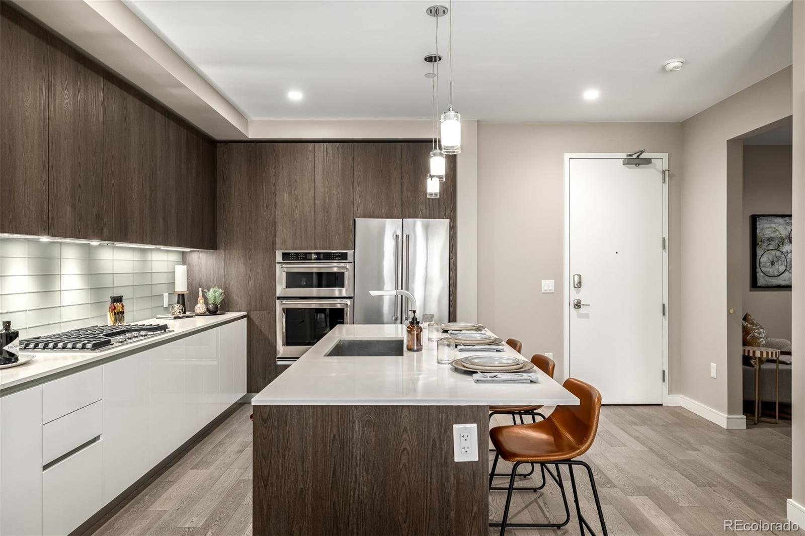 Experience modern elegance and luxury living at its finest in this beautiful Lakehouse residence! Perfectly designed for the sophisticated urban lifestyle, this beautifully appointed unit is waiting for you. The inviting interior showcases tall ceilings, tons of natural light, a neutral palette, and wood flooring throughout. You'll love the seamlessly flowing open layout, excellent for everyday living & entertaining! The impeccable kitchen boasts quartz counters, a glass-tile backsplash, flat-panel cabinetry, recessed & pendant lights, and a sizable island with a breakfast bar. Also including high-end stainless steel appliances with a cooktop gas and a wall oven & microwave. Need extra space? The versatile den offers the ideal spot for work or relaxation! The cozy bedroom includes a walk-in closet with direct access to a chic Jack & Jill bathroom. Enjoy your morning coffee or evening wine on the private balcony, while taking in the vibrant urban vibe! Lakehouse redefines resort-style living with 7,000+ sq ft of luxury amenities! Year-round heated lap pool, hot tub, fitness lab, yoga studio, sauna, meditation gardens, pet spa, sports workshop, kayak rentals, and more. Unwind in the Resident's Lounge with indoor/outdoor kitchen, pizza ovens, fire pits, and an organic garden. With a 24/7 front desk, secured parking, and a full calendar of wellness events, every detail is crafted for elevated city living. PLUS! Located directly across from Sloan's Lake and its expansive park, tennis courts, playgrounds, & trails. Easy access to restaurants, shopping, entertainment, and major highways, this is the urban lifestyle you've been dreaming of. Welcome home!