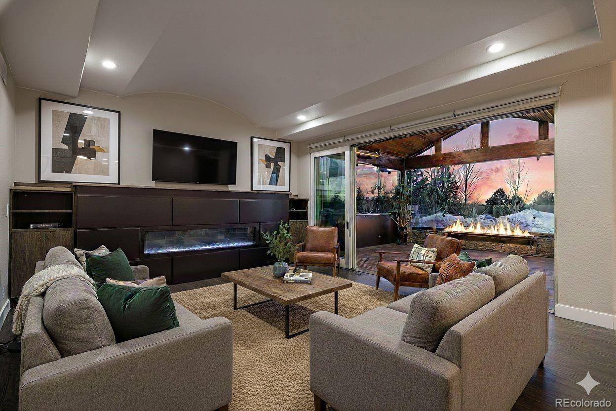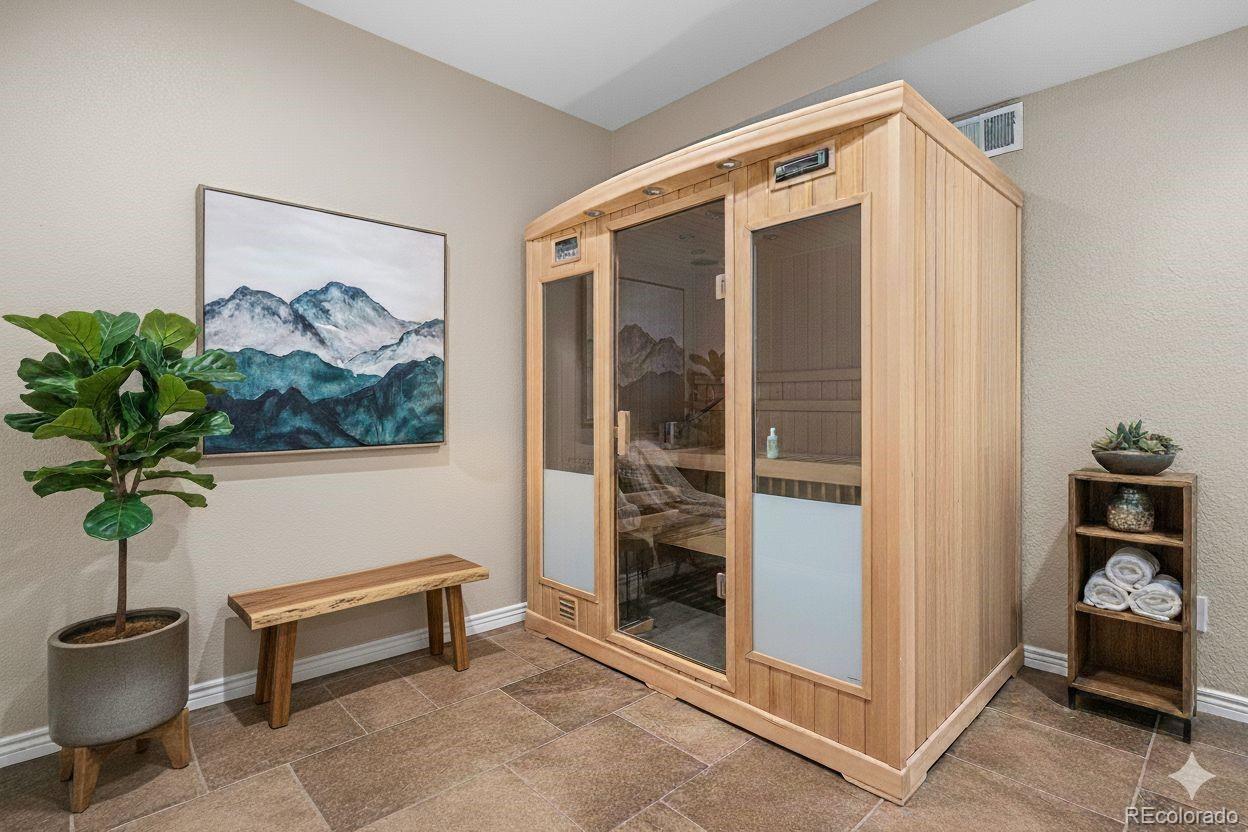 A beautiful fusion of European and Colorado design elements brings this 1.27-acre estate to life. Built by Renaissance Homes, this single-owner home is located minutes from shopping, golf, and downtown Parker in the desirable Robinson Ranch community. Enjoy entertaining and serene sunsets in this one-of-a-kind “Colorado Room,” thoughtfully designed to embrace year-round indoor–outdoor living. This four-season space features over $230,000 in architectural design and construction, including a sliding glass wall, vaulted ceilings, exposed beams, hurricane-rated glass, two oversized radiant heaters, a long elegant luxury firepit, pergola, hot tub, and stone entertaining spaces—truly a must-see. Relax with exceptional privacy, peace, and quiet, enhanced by noise-resistant windows and natural topography paired with mature landscaping that create a surprisingly quiet setting. Inside, timeless European influences shine through barrel-vaulted ceilings, tiled art coves, and a dramatic two-story entry, complemented by rich Colorado wood floors and curated designer lighting. The home unfolds with intentional, well-proportioned living spaces that balance elegance and comfort. Upstairs, the primary suite offers a serene retreat with a sitting area, barrel ceiling, and spa-inspired bath featuring heated floors and a wet-room design. Secondary bedrooms include a private ensuite and a Jack-and-Jill layout. The finished basement completes the experience with a generous entertainment area, wet bar, and a state-of-the-art sauna and spa room, creating a private wellness escape at home. The grounds are equally impressive, with over $160k invested in professional landscaping and ongoing maintenance, resulting in a lush, established setting with 50+ mature trees, a level lawn ideal for play, and unobstructed views of Fourth of July fireworks. A large cul-de-sac accommodates gatherings, with golf cart access to Colorado Golf Club and walkable access to Stroh amenities. AN ABSOLUTE MUST SEE!