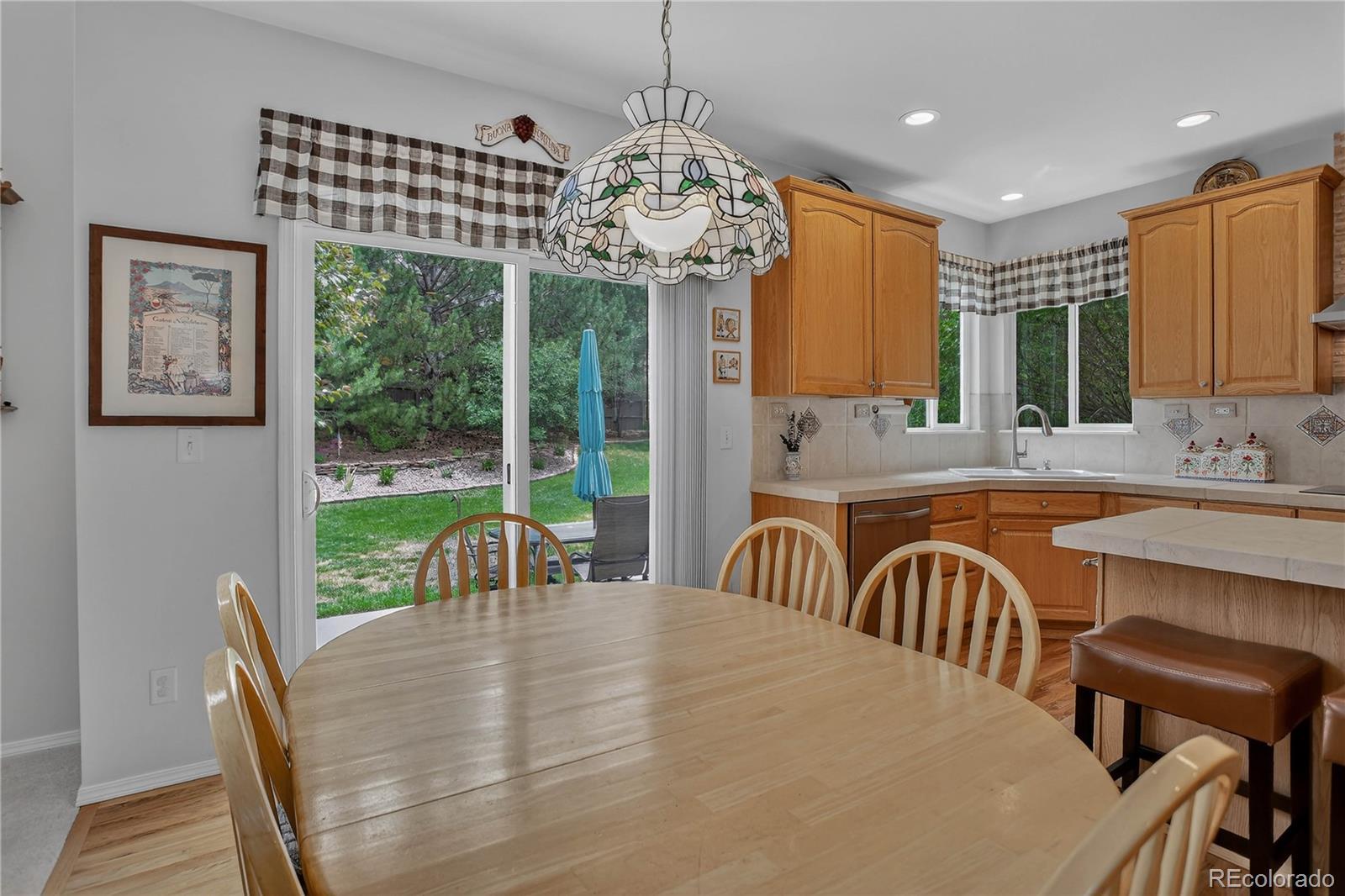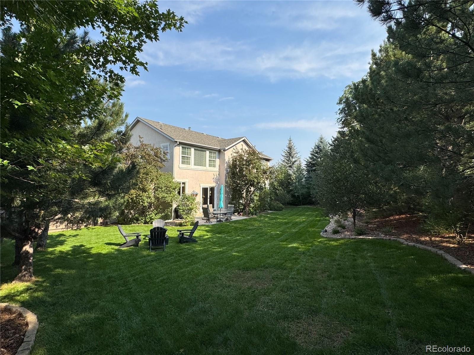 Located at the end of a quiet cul-de-sac in highly desired Pine Creek Golf Course community. This move in ready home is within walking distance to top-rated District 20 schools. Safely walk or bike to the elementary & middle schools without crossing a street. Upon entry, the solid oak HRD wood floors flow through the main level into the newly updated gourmet kitchen, a true showpiece featuring new: quartz countertops, quartz sink, and under counter lighting. Perfect for entertaining, the kitchen showcases a 6-ft quartz island, Whirlpool Gold cooktop, double ovens, vent hood, refrigerator, and a generous walk-in pantry. Natural lighting flows throughout the adjacent open great room & impresses w/ 20ft+ ceiling, soaring windows, & stacked-stone gas fireplace. The newly updated 1/2 bath, dedicated office, formal living, & formal dining w/ HRD wood floors complete the main level’s luxurious flow. Upstairs, the spacious primary suite offers a tray ceiling, picture windows overlooking the private backyard, & en-suite 5-piece bath, generous soaking tub, dual vanities, Pikes Peak views, & a walk-in closet. Three additional large bedrooms also enjoy treed and mountain views, & secondary bath. The finished basement includes a private fifth bedroom, a newly updated bath w/ glass shower, a large rec room w/ a wet bar, pool table, and mini fridge. Ample storage w/ built-in shelving. 3-car west-facing garage, which benefits from natural snow and ice melt. The fully fenced backyard is a true retreat, featuring mature Pines, Aspen, Maple, and Cherry trees. A large patio expands your outdoor living space. Just minutes from the Air Force Academy, Peterson AFB, parks, dining, shopping, entertainment, hospitals, this home combines comfort, convenience, and exceptional location.