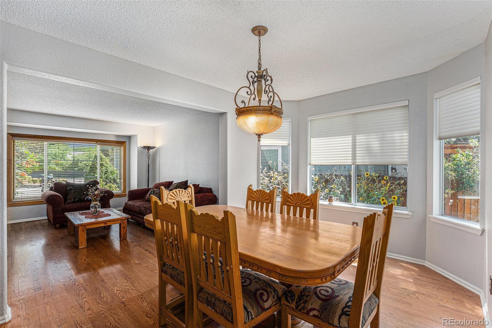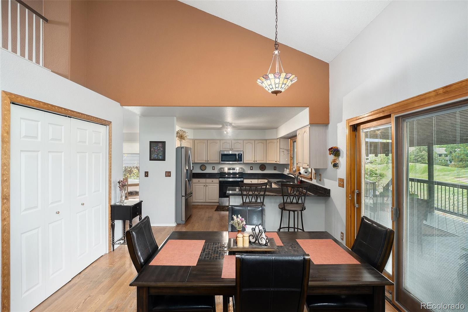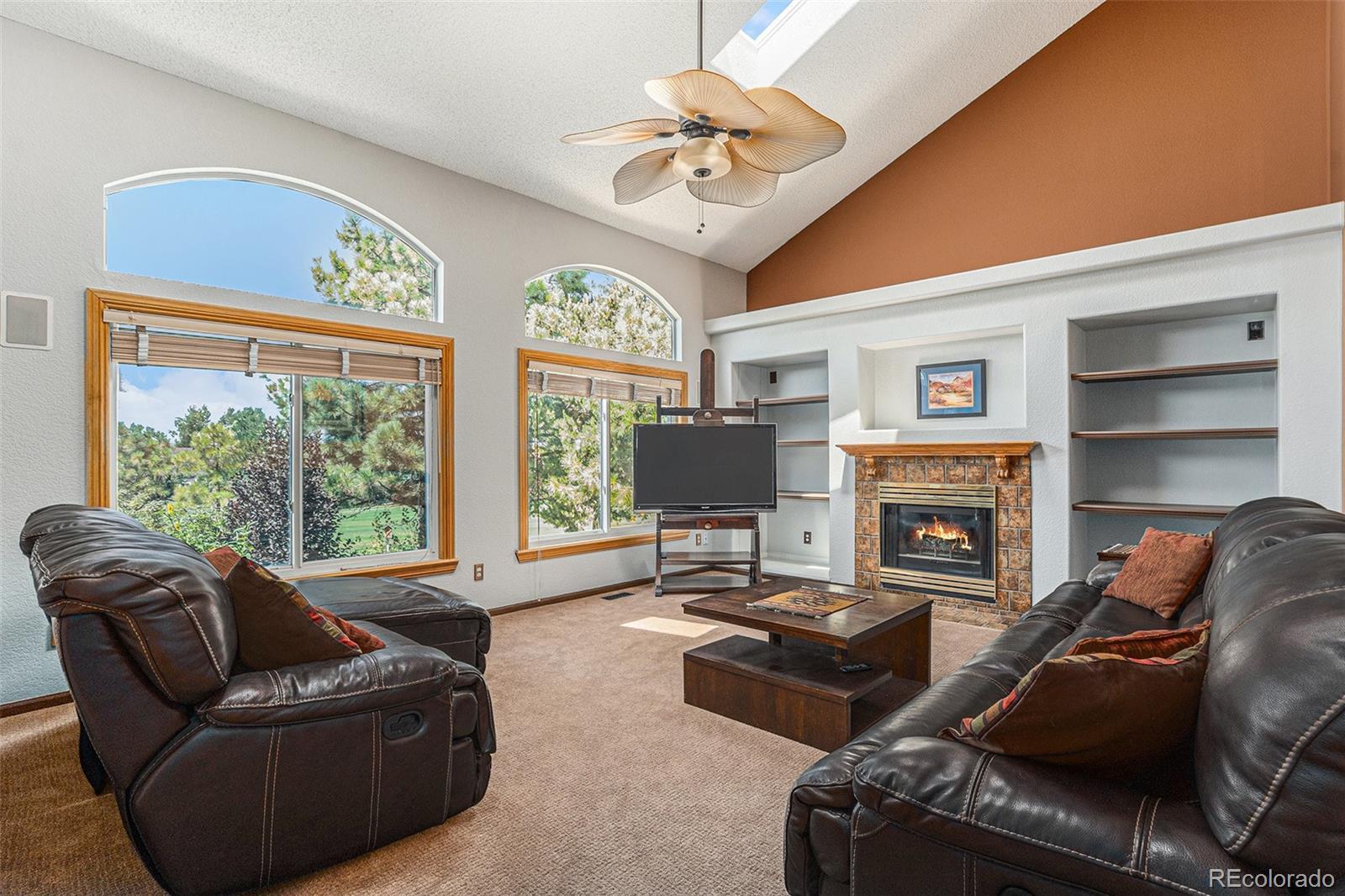 Tucked into the Village at Hunters Glen, this beautiful two-story home backs to the 15th hole of the Thorncreek Golf Course—offering sweeping greenbelt views you’ll enjoy year-round from the expansive covered deck. Inside, the thoughtful layout features soaring ceilings, warm natural light, and nearly 3,000 finished square feet. Also, many of the rooms have fresh paint! The kitchen is a standout with granite counters, new stainless steel stove, pantry storage, and a breakfast nook overlooking the course. A spacious family room with vaulted ceilings, a gas fireplace, skylights and large windows makes it the heart of the home. Upstairs, you'll find four bedrooms—including a large primary suite with vaulted ceilings, a walk-in closet, and a luxurious 5-piece bath. The finished basement is an entertainer’s dream, complete with a large recreation room (pool table is included!) and a ¾ bath. Other highlights: 3-car garage, whole house water purifier, attic fan and newer furnace & air conditioner. You’re steps from community amenities like a pool, clubhouse, tennis courts, trails, and playgrounds. Trail Winds rec center (not part of the HOA fees) is less than 5 minutes away and also offers great amenities! Easy access to I-25, Topgolf, The Orchard, and Denver Premium Outlets means shopping and dining are just minutes away. The high speed light rail station that leads directly to Union Station in Downtown Denver is only about a mile away! Experience the lifestyle of one of Thornton’s most sought-after neighborhoods with rare golf course living right out your back door! You will love this home and all that it offers!