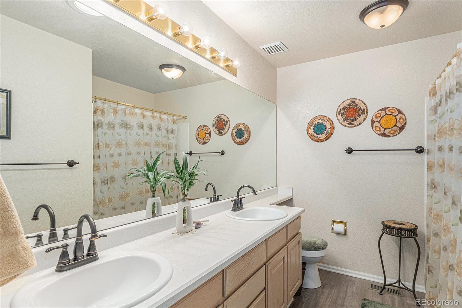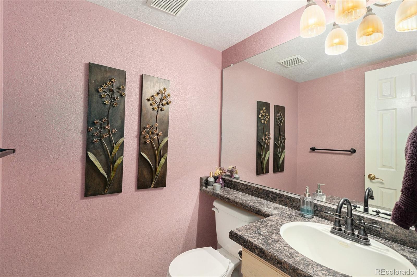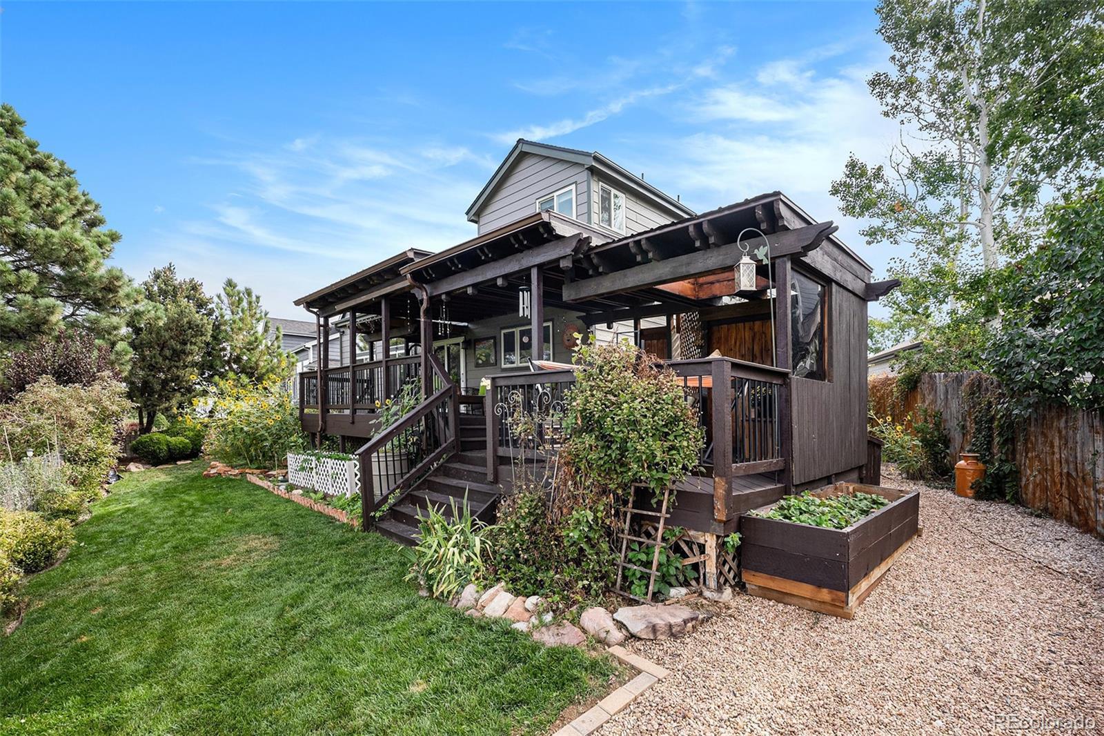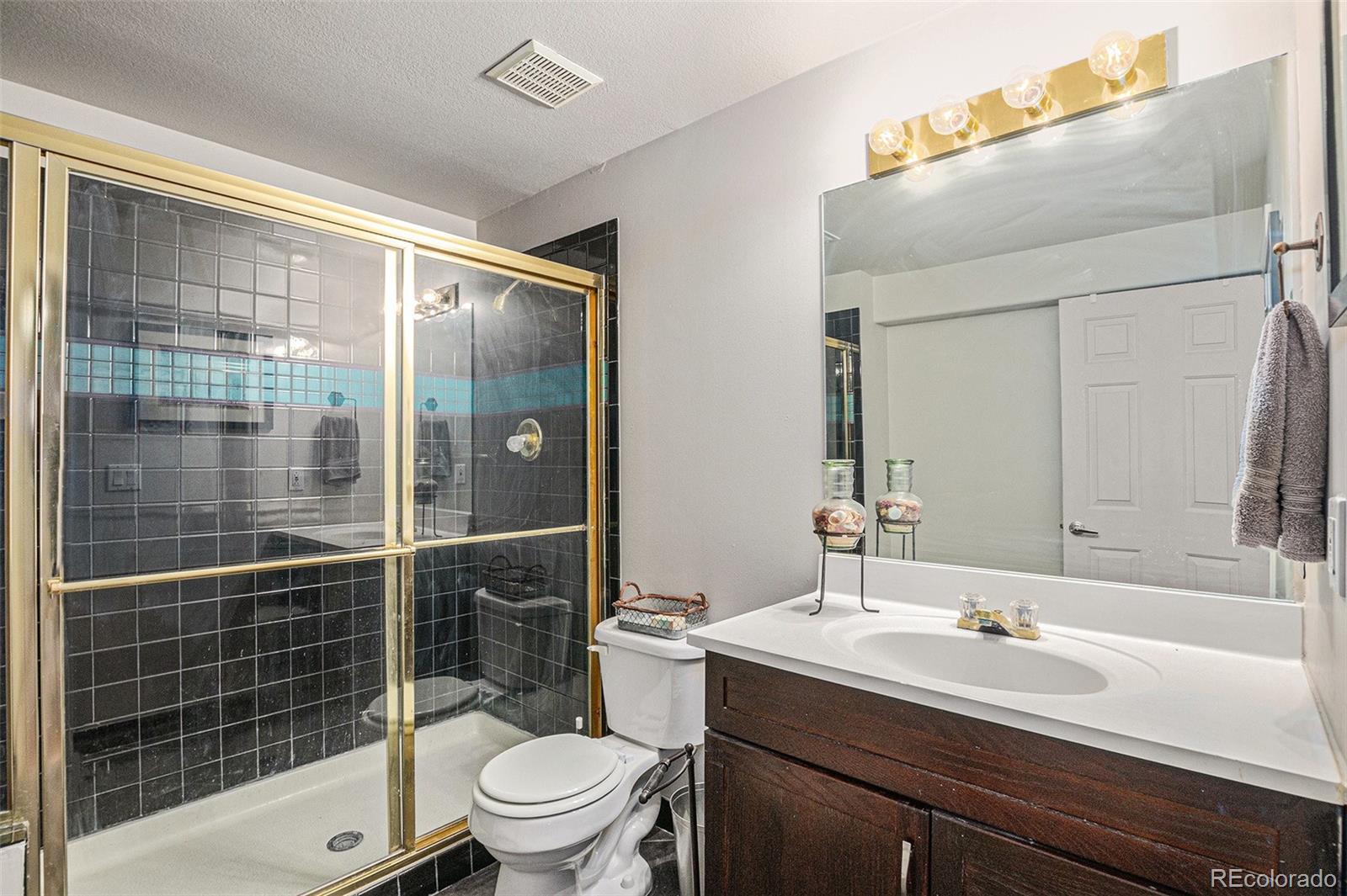 Tucked into the Village at Hunters Glen, this beautiful two-story home backs to the 15th hole of the Thorncreek Golf Course—offering sweeping greenbelt views you’ll enjoy year-round from the expansive covered deck. Inside, the thoughtful layout features soaring ceilings, warm natural light, and nearly 3,000 finished square feet. Also, many of the rooms have fresh paint! The kitchen is a standout with granite counters, new stainless steel stove, pantry storage, and a breakfast nook overlooking the course. A spacious family room with vaulted ceilings, a gas fireplace, skylights and large windows makes it the heart of the home. Upstairs, you'll find four bedrooms—including a large primary suite with vaulted ceilings, a walk-in closet, and a luxurious 5-piece bath. The finished basement is an entertainer’s dream, complete with a large recreation room (pool table is included!) and a ¾ bath. Other highlights: 3-car garage, whole house water purifier, attic fan and newer furnace & air conditioner. You’re steps from community amenities like a pool, clubhouse, tennis courts, trails, and playgrounds. Trail Winds rec center (not part of the HOA fees) is less than 5 minutes away and also offers great amenities! Easy access to I-25, Topgolf, The Orchard, and Denver Premium Outlets means shopping and dining are just minutes away. The high speed light rail station that leads directly to Union Station in Downtown Denver is only about a mile away! Experience the lifestyle of one of Thornton’s most sought-after neighborhoods with rare golf course living right out your back door! You will love this home and all that it offers!