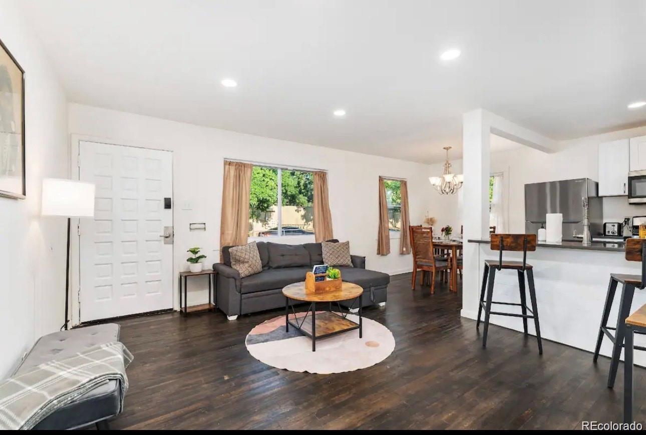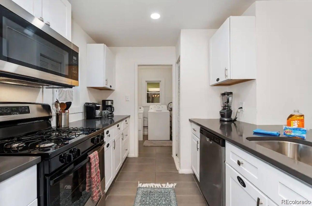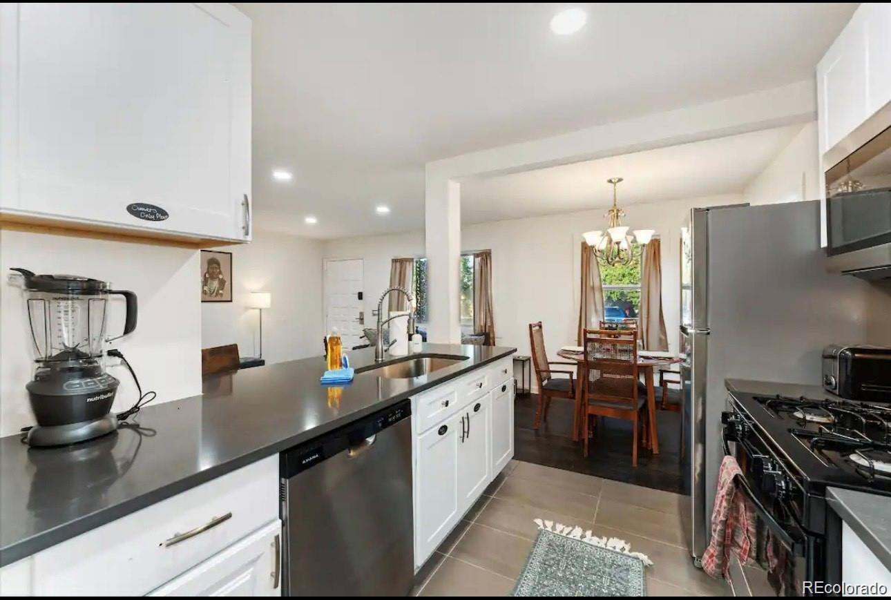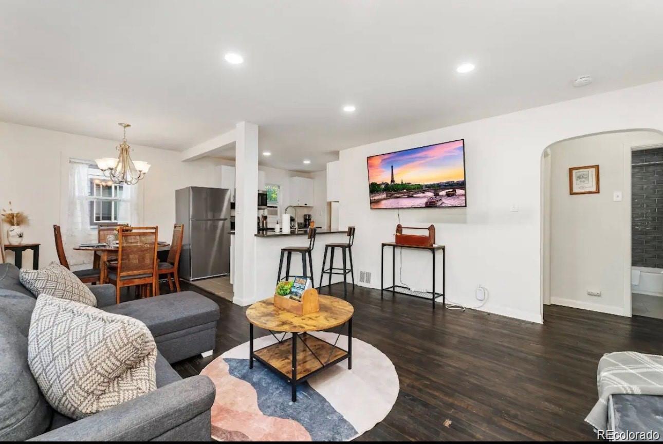 Move-in ready and beautifully updated! This charming 3-bed, 1-bath ranch features a fully fenced backyard and an impressive 4-car tandem garage—a rare find. Step inside to a stylishly remodeled interior with newer windows, modern cabinets, quartz countertops, and refreshed kitchen and bath spaces. Enjoy hardwood floors throughout the living room and bedrooms, with durable tile in the kitchen, bath, and laundry areas. All appliances are included, and 6-panel doors add a polished touch. A fully finished sunroom opens to your private backyard retreat, complete with a patio ideal for relaxing or entertaining. Located just minutes from downtown Denver, you’ll love being within walking distance of restaurants, shopping, and a large park. A standout home in a prime location—don’t miss it!