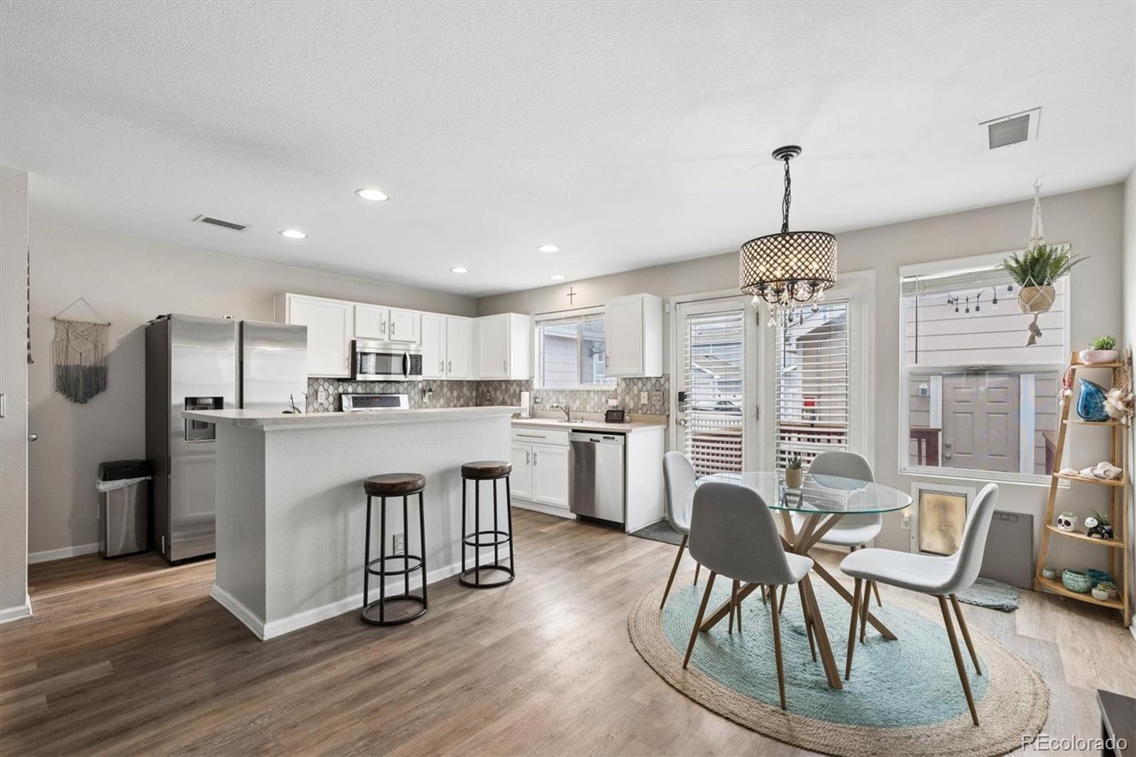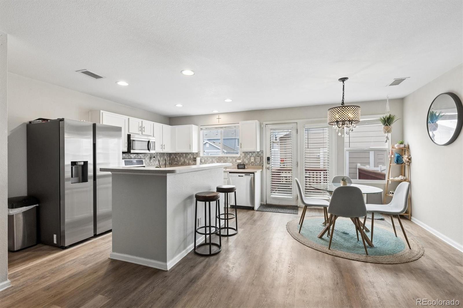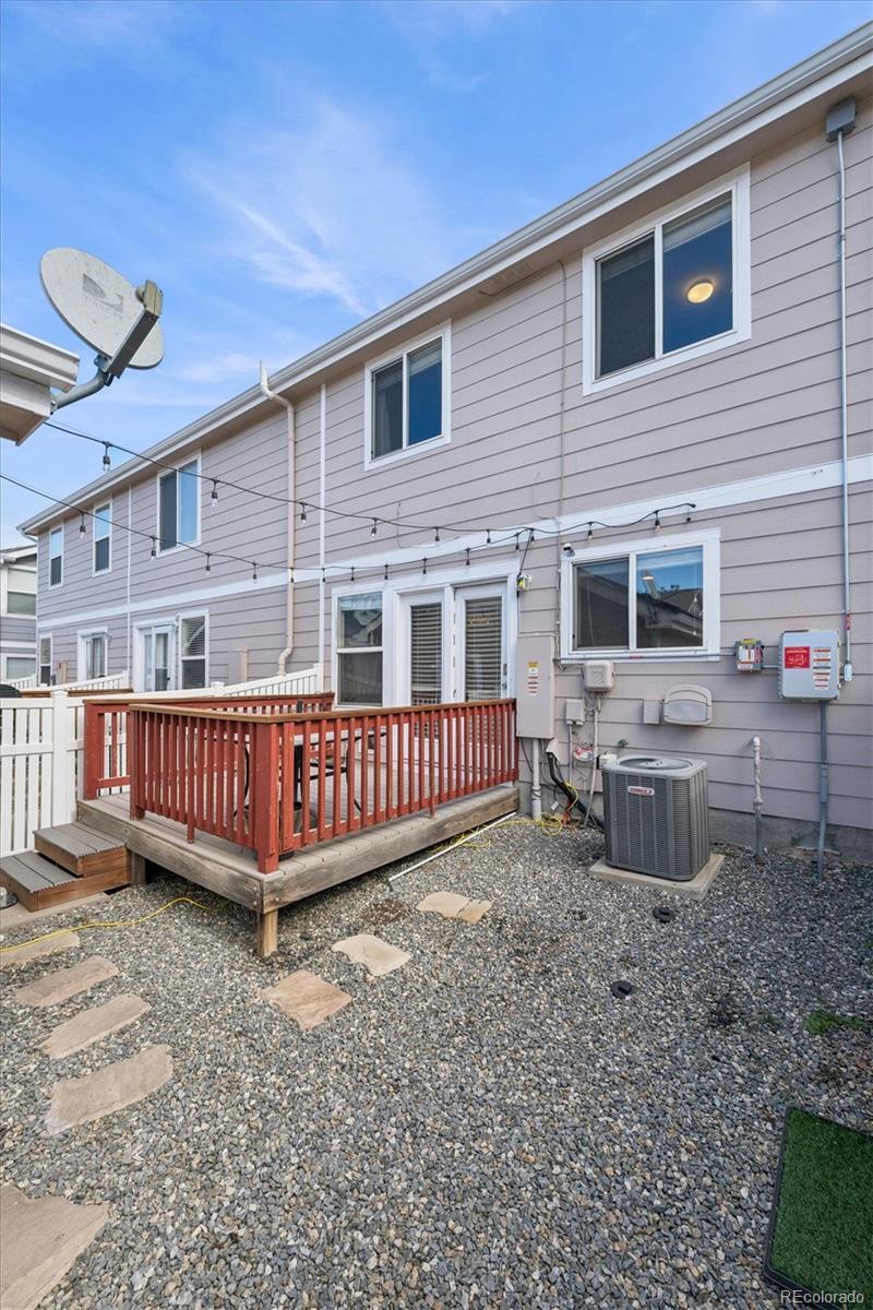 Welcome to this wonderful townhouse featuring 3-bedroom, 2-bath built in 2005 and situated in the vibrant Green Valley Ranch neighborhood of Denver. The main floor offers an open living and dining area filled with natural light, creating a comfortable flow for both everyday living and entertaining. The kitchen features generous cabinetry and ample counter space, designed to be both functional and efficient. You’ll also find a convenient main-level laundry room along with a powder room. Upstairs, there are three well-sized bedrooms, including a spacious primary suite complete with a full bathroom. A second full bath serves the additional bedrooms. The property also includes a one-car detached garage that connects directly to the private patio, adding both convenience and outdoor enjoyment. SOLAR PANELS are LEASED.