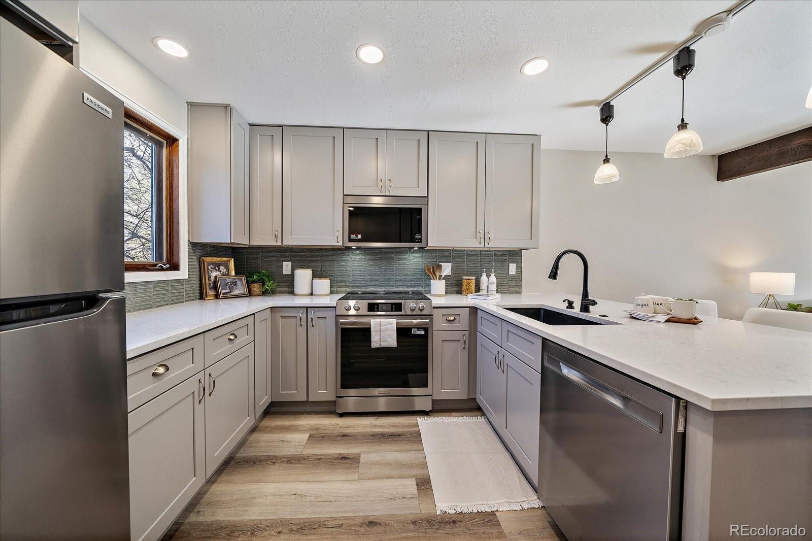 With high-end renovations, thoughtful design touches, and a location that makes commuting and recreation easy, this move-in-ready home delivers the very best of Boulder living. This beautifully remodeled 3-bedroom, 2-bath townhome offers stylish finishes, smart upgrades, and quick access to the Diagonal Highway and downtown. Enjoy easy commuting to the center of Boulder, Niwot, and Longmont. Plus you’re just minutes from the University of Colorado Boulder. Inside, the home has been beautifully renovated with modern comfort in mind. The main level offers a bright, spacious kitchen that connects naturally to the living room, ideal for both daily living and entertaining. Every detail in the kitchen is new, from the cabinetry and appliances to the lighting, outlets, and switches, and the professionally designed layout includes a sleek flush-mounted microwave with a hidden turntable. Step out back onto your private deck or curl up by the cozy wood-burning fireplace, both are ideal for morning coffee or peaceful evenings at home. Recent updates include luxury vinyl plank flooring and new carpet throughout, fresh interior paint, updated doors with new hinges and hardware, and modern light fixtures that elevate the space. Upstairs, the primary and secondary bedrooms share a stunning, design-forward bathroom featuring rich sage green tile, paired with a new tile floor and a vanity with a matching backsplash. The lower level provides exceptional flexibility with a comfortable second living area, a third bedroom, and a beautifully remodeled bathroom featuring elegant gray tile, a new vanity, and modern fixtures. An enclosed laundry space adds convenience. Behind the walls, major system upgrades provide peace of mind: All-new plumbing throughout, New electrical panel with increased capacity, Energy-efficient heat pump has lower operating costs, is environmentally friendly and provides both heating and cooling. This move-in-ready home delivers the very best of Boulder living.