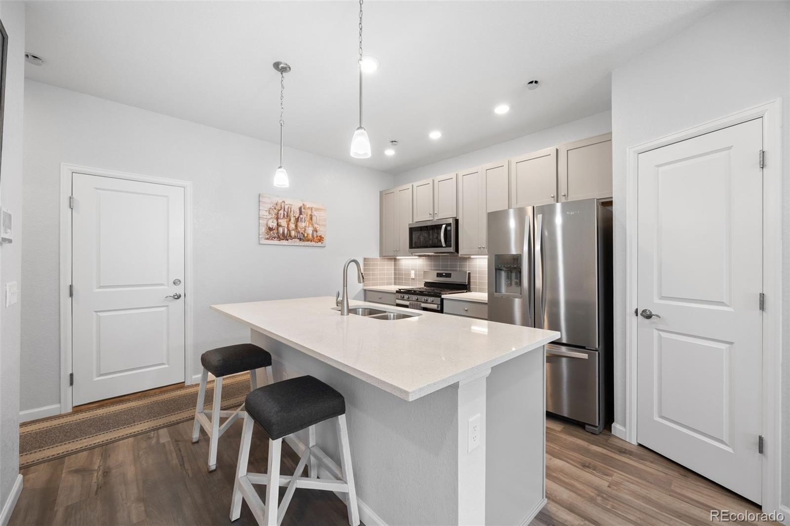Beautiful - Turn Key - 2 Bedroom, 2.5 Bathroom - 2 Car Garage (finished) - Townhouse located in the Hunting Hill Community in Douglas County. This newly built, professionally painted townhome features modern comforts throughout including quartz countertops, stainless steel appliances, modern lighting, an open layout, and a custom built-in bench near the garage entry way. The main floor includes a spacious living room, a powder room, and a gourmet kitchen complete with an oversized island perfect for entertaining. LVP flooring flows throughout the main floor offering durability and style. For your convenience there is ample storage on the main level, including large cabinetry, a pantry for your kitchen needs, and a storage closet. Upstairs, the sizable Primary Bedroom includes an upgraded ceiling fan & light, linen closet, walk-in closet, and gorgeous primary bathroom (complete with quartz countertops) with a dual sink vanity and a glass enclosed shower with a sitting bench. The secondary bedroom includes a walk-in closet, upgraded ceiling fan & light, and private en-suite bathroom. The laundry room is also conveniently located on the second floor along with an additional linen closet in the hallway. This townhome offers luxury and location with c-470 being minutes away for your next great adventure to the mountains, Downtown Denver, Red Rocks Amphitheatre, or DIA. Other close by amenities include: Aspen Grove Shopping Center, High Line Canal, Children's Hospital, UC Health Hospital, Town Center Shopping Center, and so much more! Schedule your showing today!
