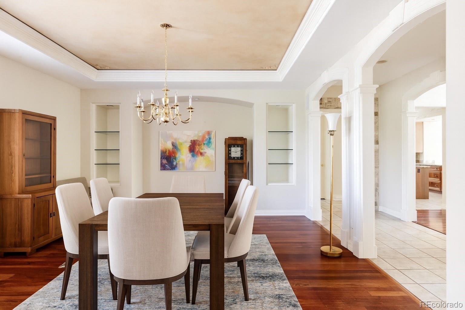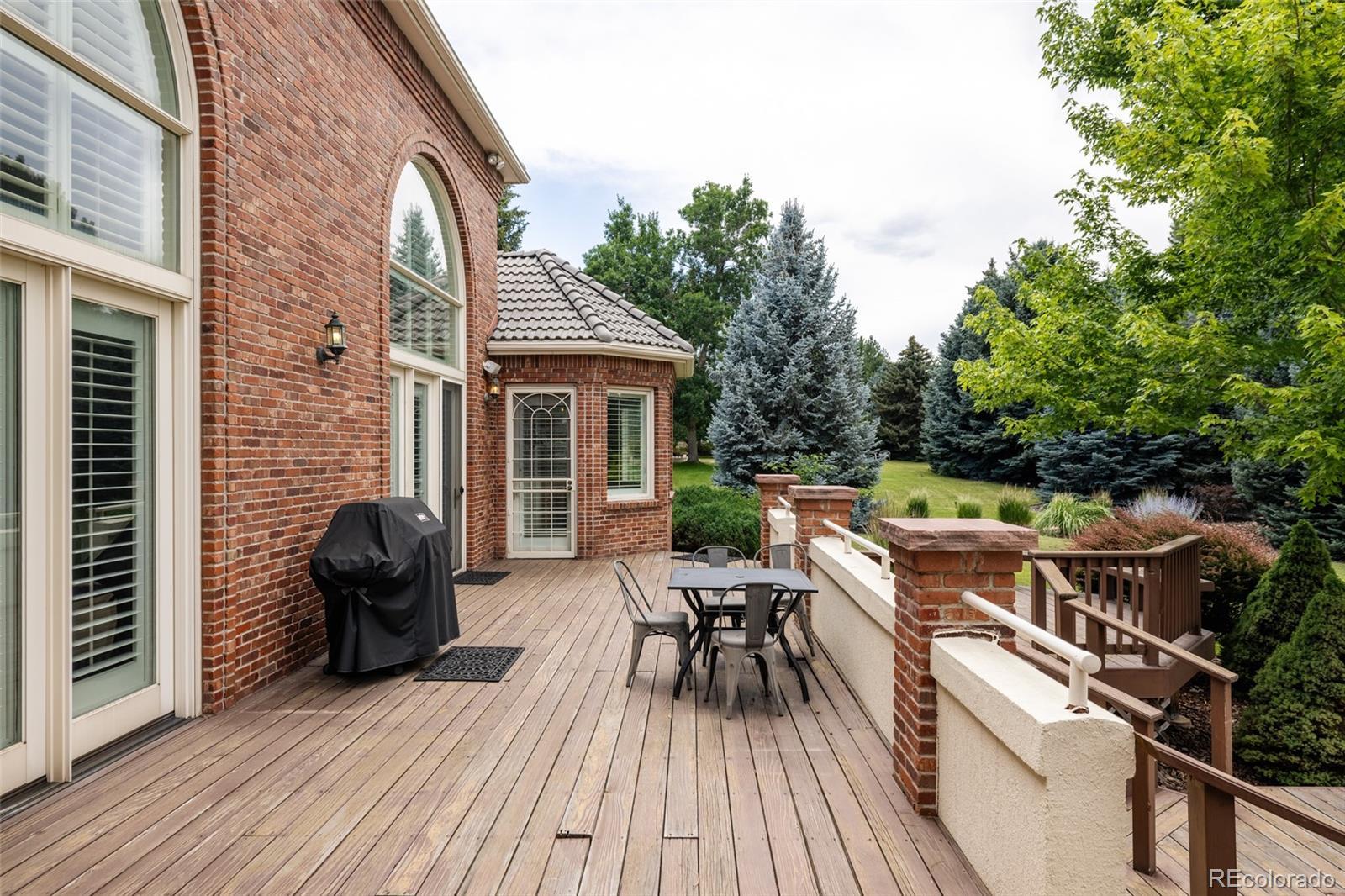 Just moments from the Rec Center, tennis courts, and community pool, on one of the most sought-after streets in The Preserve at Greenwood Village, 5671 S Elm Street offers an exceptional opportunity to own a special residence with incredible curb appeal in one of Greenwood Village’s most prestigious neighborhoods. Set on over half an acre of beautifully landscaped grounds, this stately two-story home features refined living space designed to balance everyday comfort and an elegant lifestyle. Lovingly maintained by the same family for 19 years, the home blends timeless architectural charm. Soaring ceilings, sun-filled living spaces, and rich cherry hardwood floors define the main level. Formal living and dining rooms open to a spacious kitchen with granite counters, custom cabinetry, and a sunny breakfast nook leading to the back patio. A dedicated main-floor office offers quiet, natural light, and ideal work-from-home space. The striking family room features floor-to-ceiling windows, a fireplace, and built-in shelving, perfect for relaxing or hosting guests. The main-level primary suite provides a peaceful retreat with a spa-like five-piece bath, walk-in closet, and serene garden views with direct deck access and a fireplace. Upstairs are three additional bedrooms and two full baths. The partially finished basement adds flexibility with two bedrooms, a recreation room, optional guest suite or office, and ample storage, including more than 2,000 square feet of unfinished space for a gym, theater, wine cellar or workshop. Outside, enjoy patios with a multi-level deck, lush lawn, and an in-ground hot tub tucked under mature trees. As a Preserve resident, you will enjoy access to the 71-mile High Line Canal Trail, a private Jr Olympic-sized community pool, private tennis courts, and access to the 55-acre Marjorie Perry Nature Preserve. It is a peaceful natural escape within each reach. This is a home built for memories. It is now ready for its next chapter.