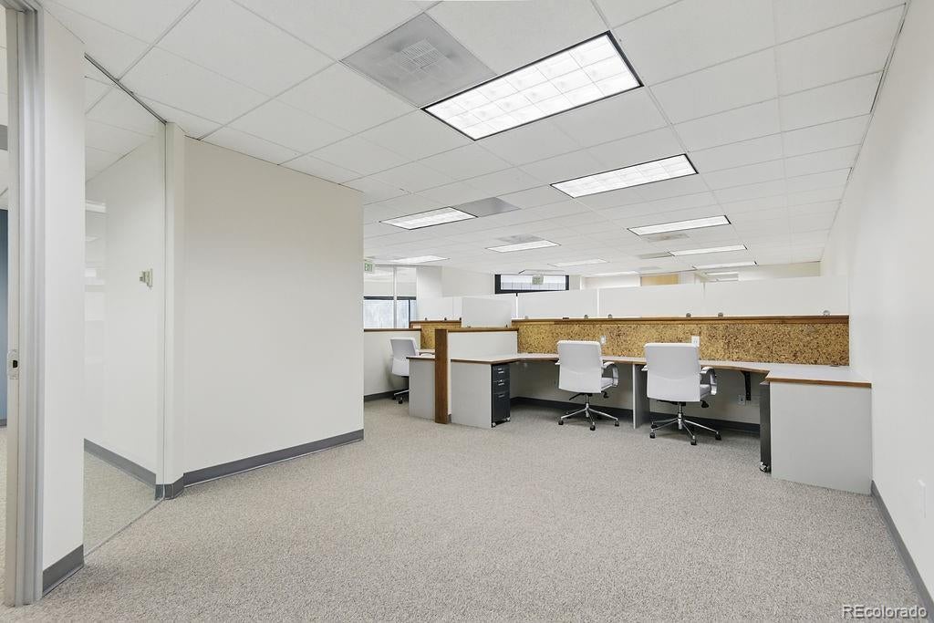 Situated in the vibrant heart of Greenwood Village within the Denver Tech Center, this beautifully remodeled office building offers convenient access to consumers, employees, dining options, and the I-25 corridor. The property boasts a sophisticated, bright, and spacious layout, complemented by a striking glass facade that fills the interior with natural light and effortlessly blends indoor and outdoor spaces. This office features 6 cubicle desks, 4 private offices, a spacious conference room, an inviting entry area, one convenient storage space, and a fully equipped kitchen. Every detail has been thoughtfully designed to combine functionality with elegance. This exceptional office building provides businesses with an unmatched opportunity to make a lasting impression in one of Denver's most sought-after locations. All square footage and tax figures are approximate and believed to be accurate, though they need to be verified by the buyer. The property is subject to a Homeowners' Association (HOA), which owns the Common Area and Parking Spaces. While the parking arrangements were more than sufficient for the seller, it is the buyer's responsibility to independently verify parking availability to ensure the arrangement aligns with their specific needs. Monthly HOA Dues of 1,393 has been included in the actual cap rate.