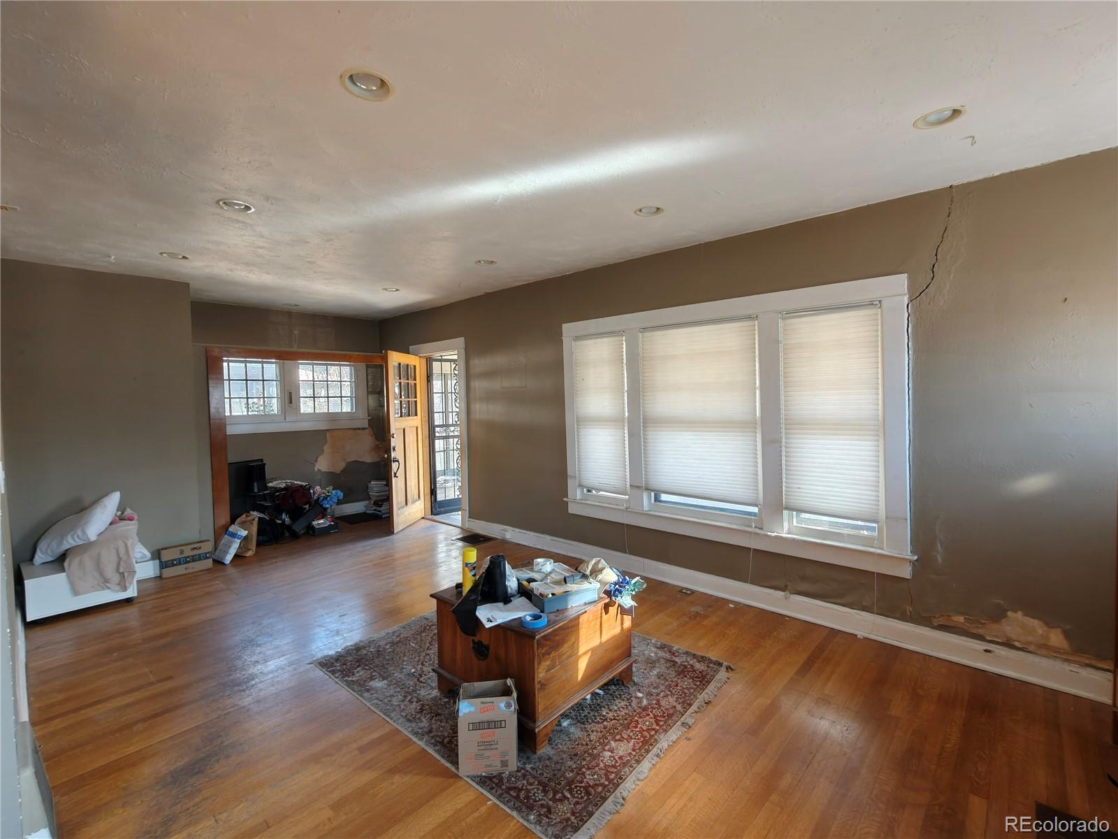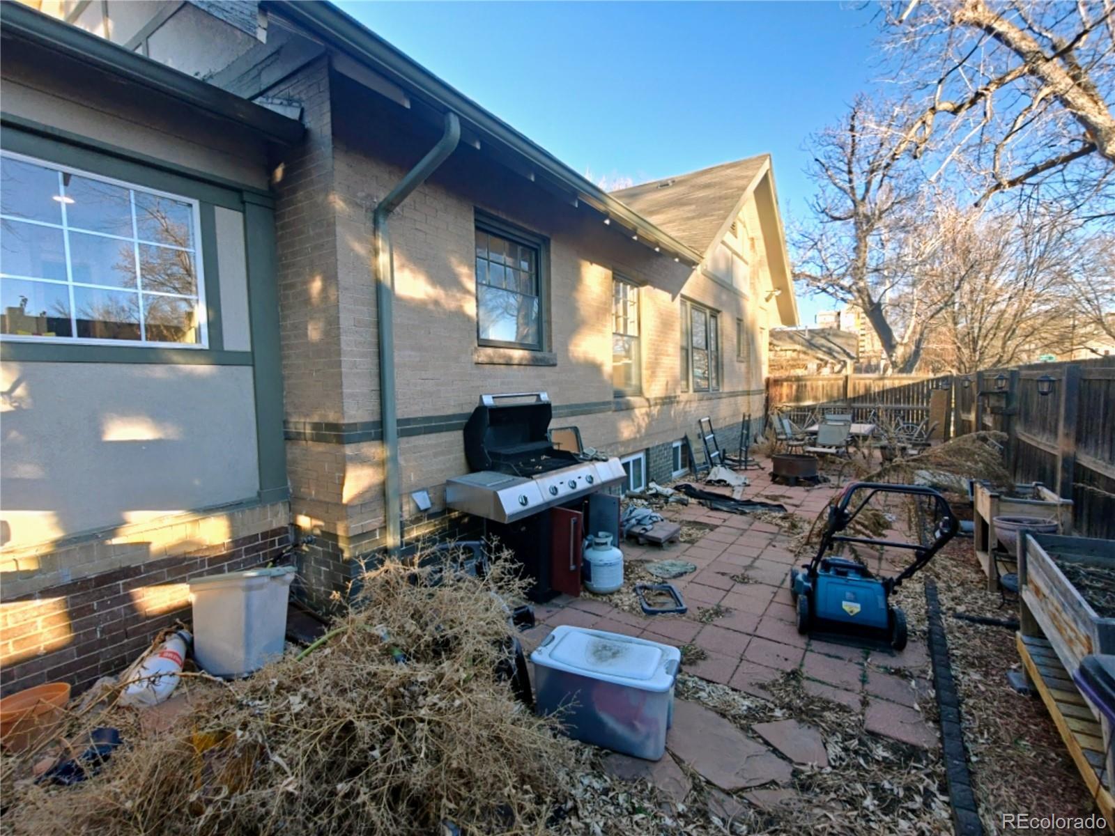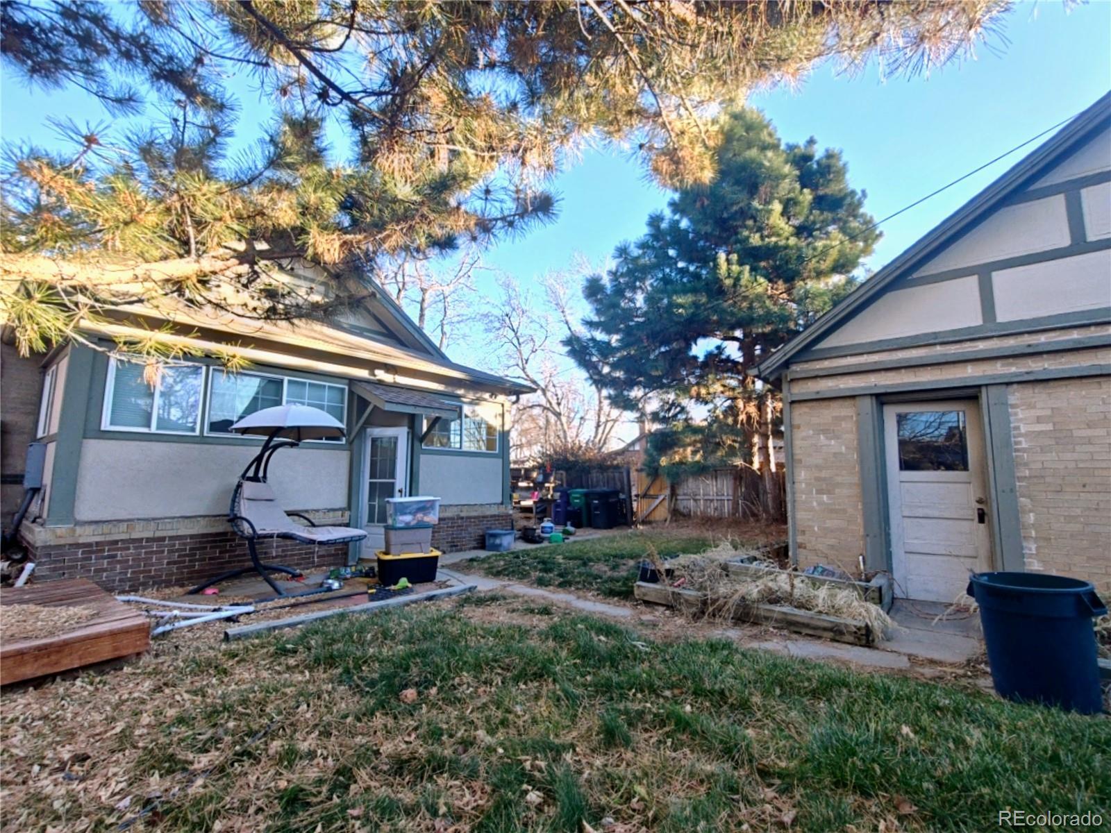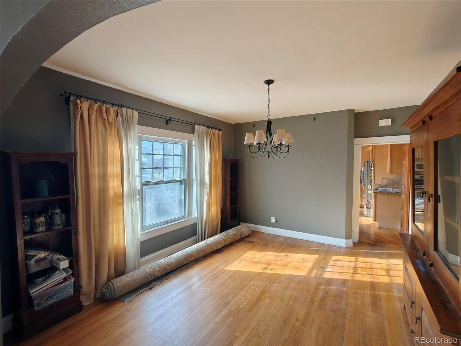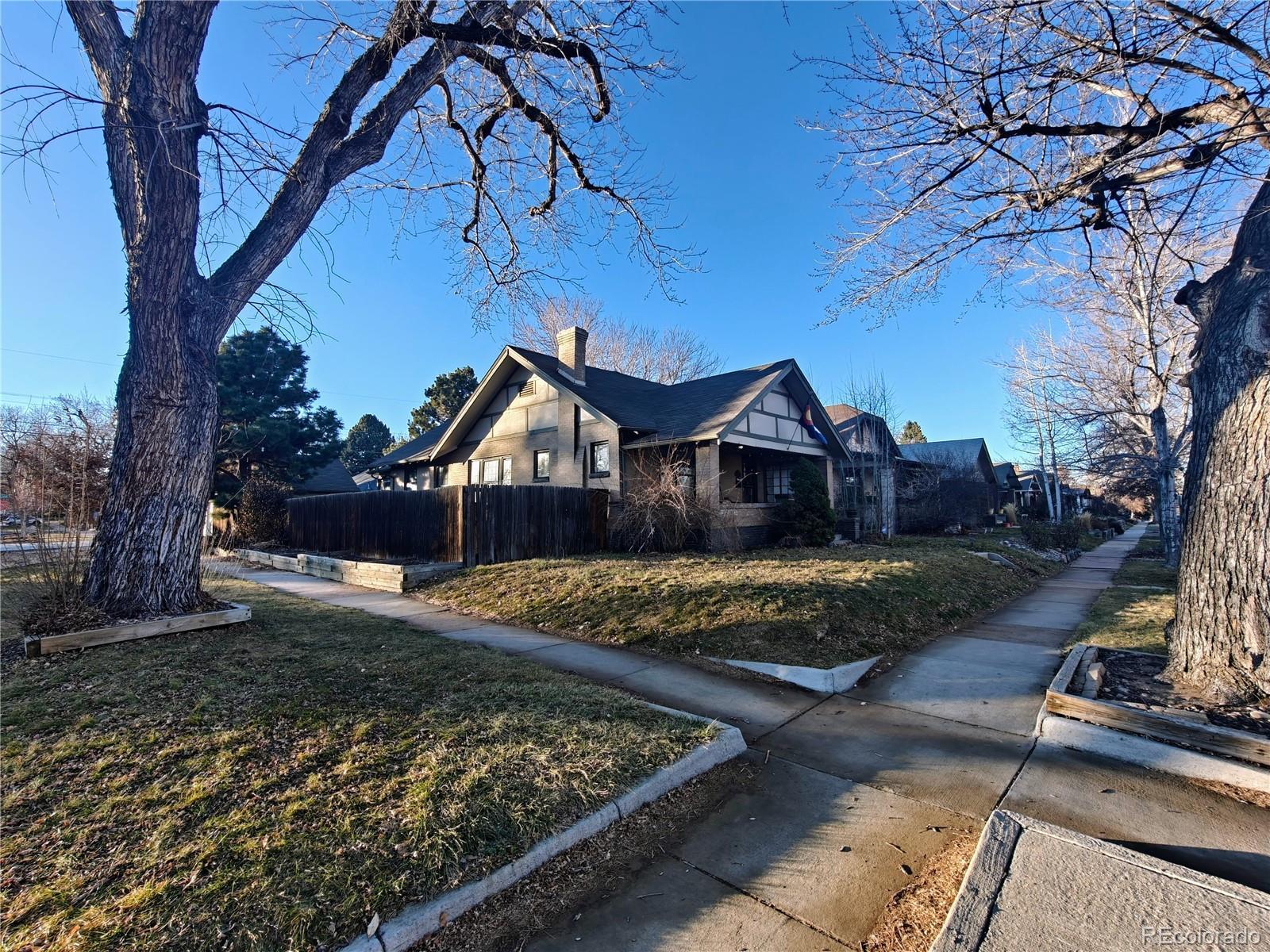 Excellent opportunity in desirable Congress Park. Quintessential Denver bungalow 4 bed/2 bath on corner lot. 3 bedrooms upstairs with large kitchen, dining and living rooms. Expansive room sizes, wood floors, fireplace and original details throughout main level. Large kitchen includes updated cabinetry, countertops and gas stove. Nicely sized bedrooms with remodeled bathroom. Finished basement is complete with laundry, large living room, bedroom egress window, remodeled bathroom and more. Large south facing side-yard, backyard with mature trees and alley access, 2-car garage and concrete driveway faces south to 10th Ave. Cash only, Sold As-Is.