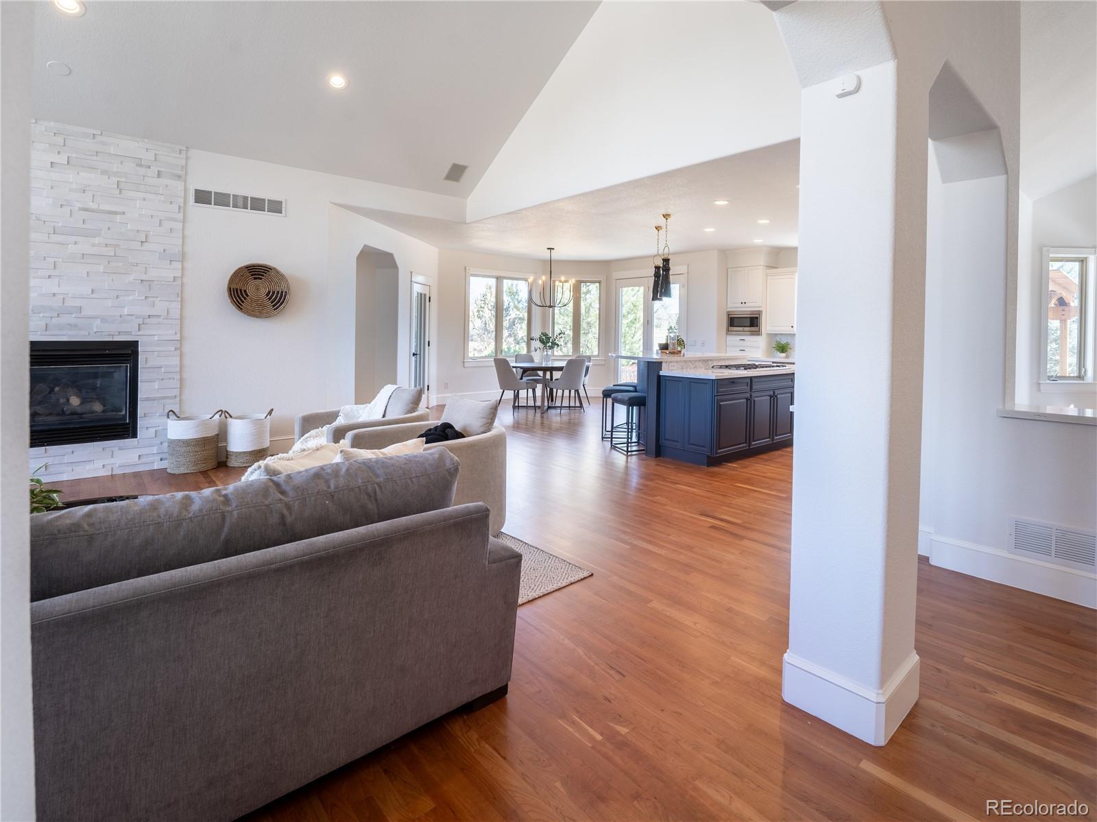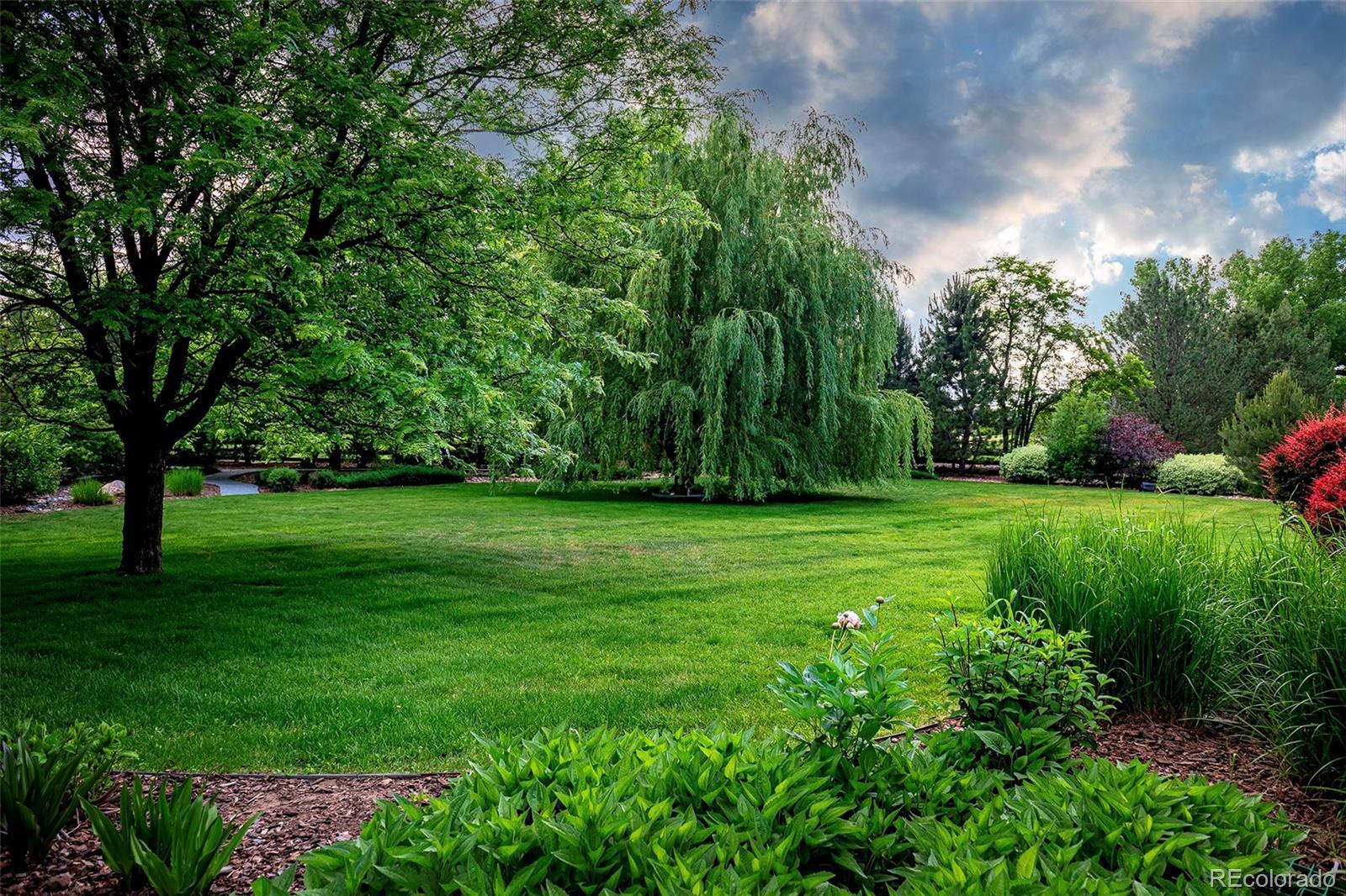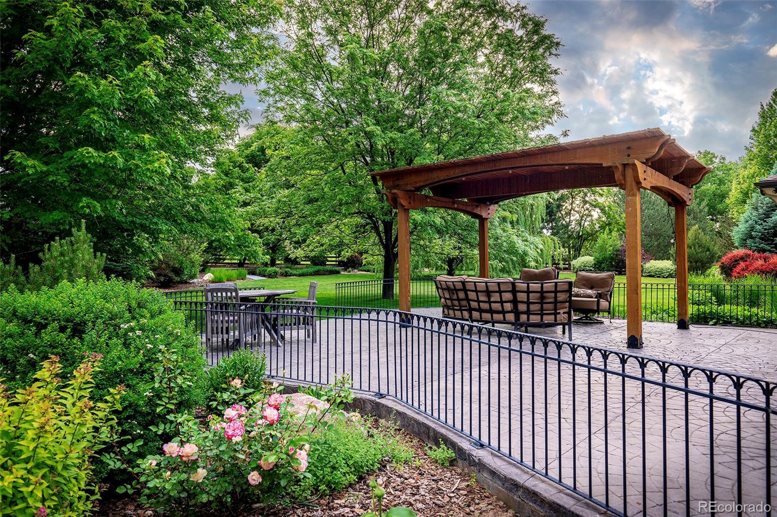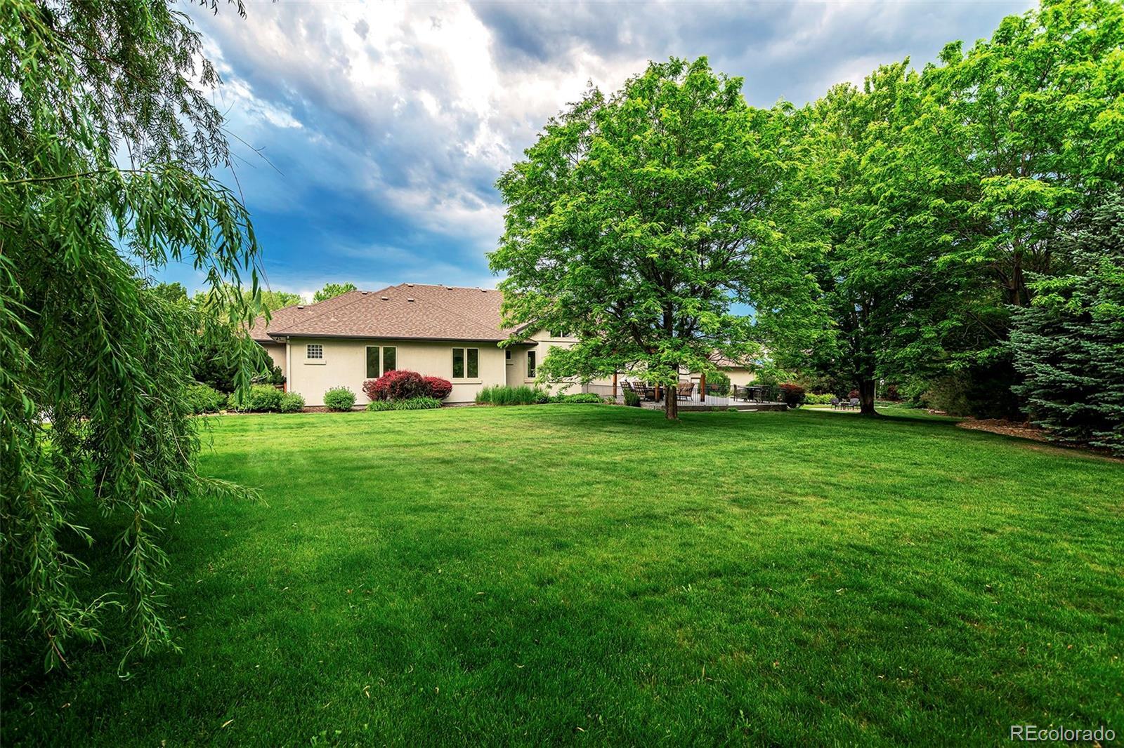 Welcome to your Boulder County dream estate nestled on over an acre of pristine land in an exclusive enclave of custom homes, where every moment feels like a cherished memory in the making. A sprawling front porch stretches across the entire facade, beckoning you to take a seat and soak in the breathtaking mountain views. A generous expanse of windows and soaring ceilings throughout amplify natural light, suffusing the carefully crafted open interior with an airy brilliance. The home effortlessly blends modern elegance with functional livability with an open concept ranch plan that encompasses everything you need on the main floor. Each generous room is carefully oriented to integrate the lush outdoor splendor into the interior living spaces. The chef’s kitchen with its sophisticated color palette is a testament in culinary refinement with soft white cabinets, a contrasting island, quartz counters, designer pendants and stainless appliances bringing a luxury that transcends time. The sun-drenched great room showcases a soaring 15ft vaulted ceiling and a stacked stone fireplace that adds a warm ambiance. Immerse yourself in the pinnacle of pampered living in the primary bedroom suite with a lavish bath carefully curated to elevate your daily routine and provide a sanctuary for well-being. Every desire for fun and entertainment finds fulfillment in the sprawling 3700 sqft finished basement. Discover the thrill of friendly competition within multiple game rooms, a vast rec room or the dedicated exercise area. Delight in cinematic experiences, gather around the warmth of the fireplace or unwind with your favorite reads in the intimate library. Lush greenery stretches as far as the eye can see in the meticulously manicured backyard where spirited games and the sounds of sizzling grills and crackling fires fill your summers. Colorful foliage and evergreens frame the perimeter providing a vibrant backdrop offering privacy without obstructing the wide open space views.