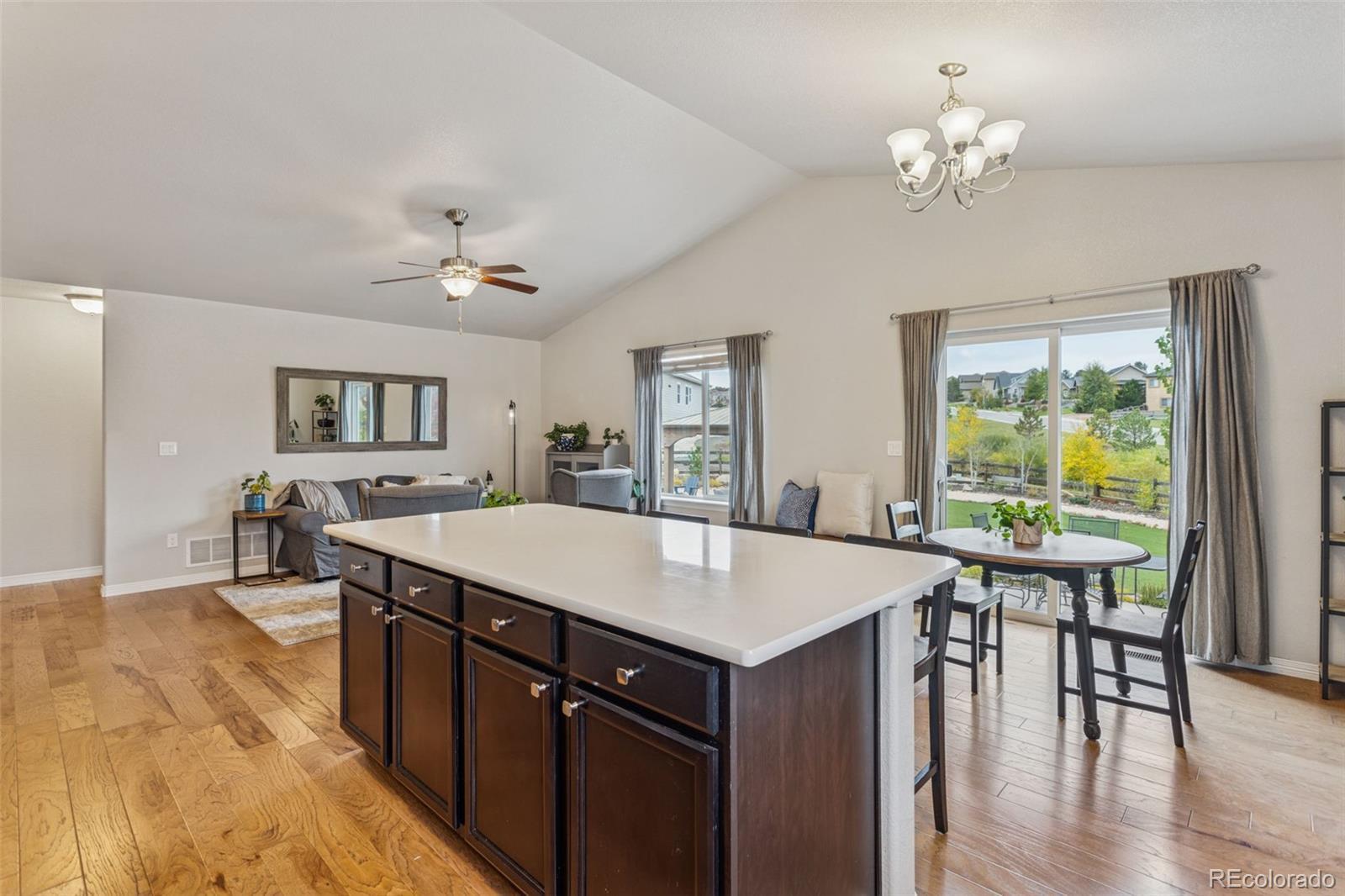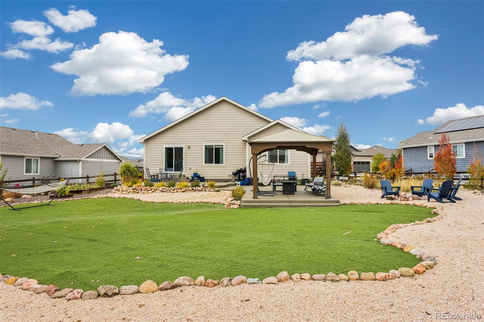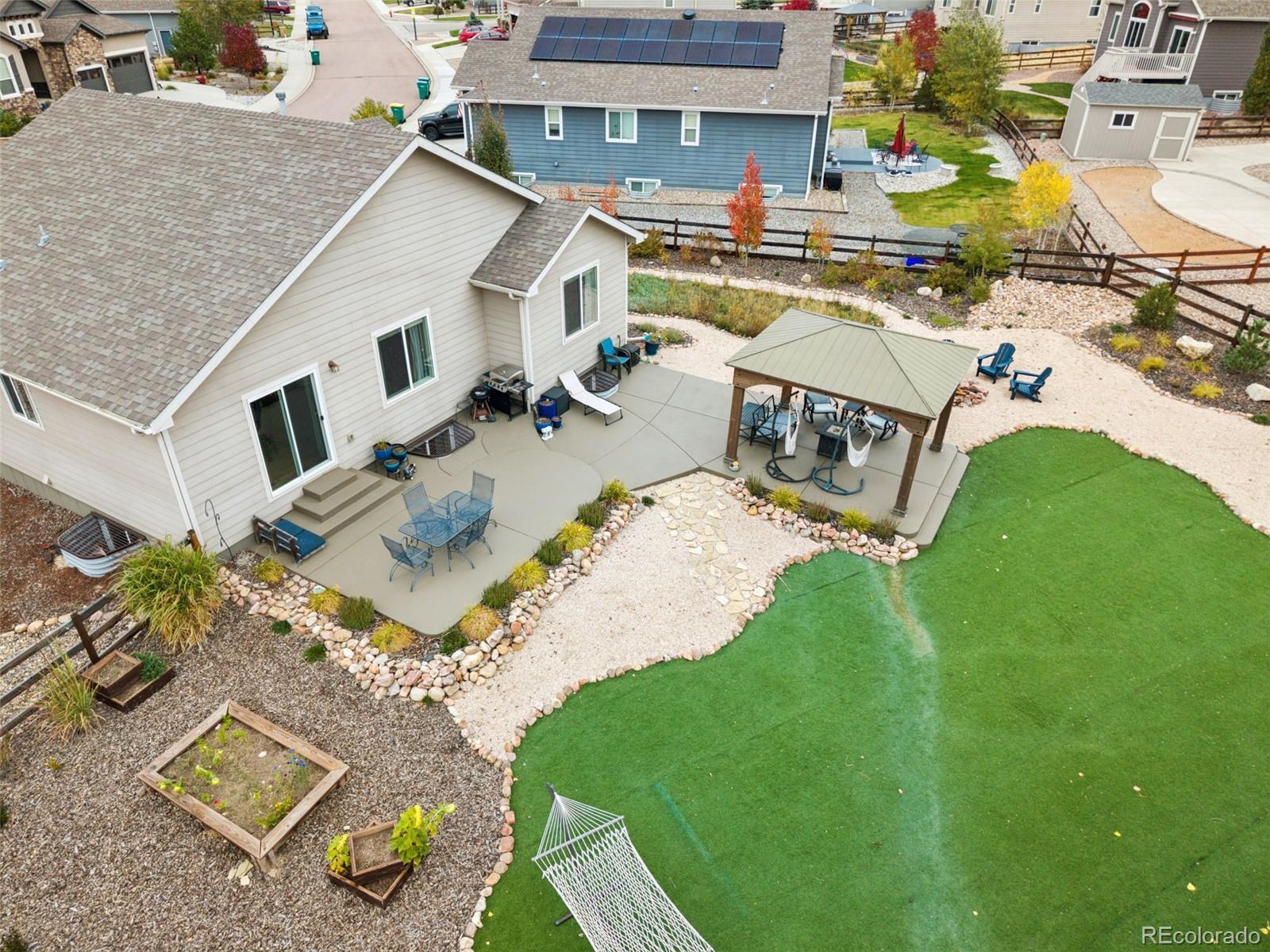 Welcome to this stunning ranch-style home in the heart of Monument that perfectly blends comfort, design, and Colorado living. Enjoy true main-level living with the primary suite and laundry conveniently located on the main floor. Soaring vaulted ceilings fill the home with natural light, while the gourmet kitchen impresses with elegant finishes, a large island, and quality appliances. The beautifully finished basement offers additional living and entertaining space, ideal for family nights or guests. Outside, you’ll love the zero-scaped front yard for easy maintenance and the huge, stunning backyard featuring a concrete patio, fire pit, and charming gazebo—perfect for a family who loves to relax and entertain under the Colorado sky.