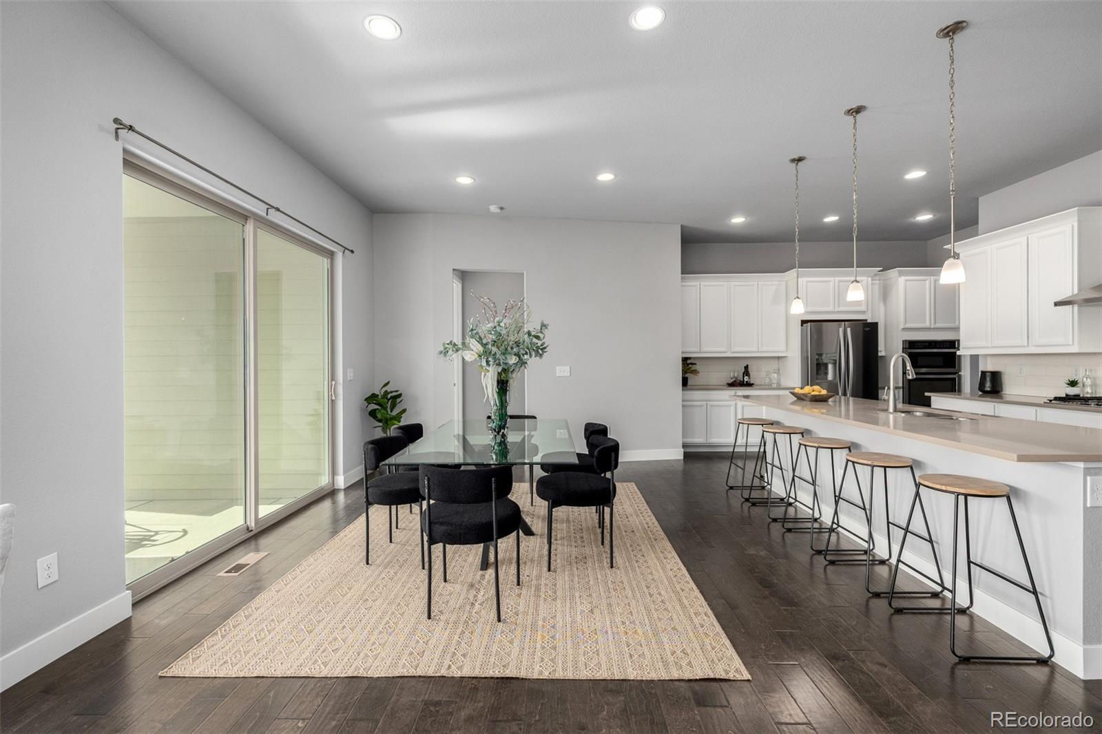 Luxury Ranch Living in the Heart of Candelas Welcome to a home that truly embodies the spirit of Candelas living — refined, relaxed, and beautifully Colorado. This thoughtfully designed ranch combines comfort, elegance, and functionality in perfect balance. Step inside to soaring ceilings, rich hardwood floors, and natural light that pours through every window. The open-concept layout centers around a chef’s kitchen with stainless appliances, an oversized island, and granite counters — seamlessly connecting to the dining area and inviting living room anchored by a cozy fireplace. The primary suite offers a peaceful retreat, complete with a five-piece bath, soaking tub, and spacious walk-in shower. Two additional en-suite bedrooms ensure privacy for guests or family. A dedicated office nook, generous pantry, and built-in mudroom make everyday living effortless. Out back, unwind on your private deck and take in the mountain views — or enjoy a little adventure on the basement’s one-of-a-kind climbing wall. The three-car garage offers room for all your Colorado gear. With owned solar panels, this home is as smart as it is stunning. Ideally located near Maverick Mesa Park and just moments from pools, trails, clubhouses, parks, and top-rated schools, you’ll experience the best of Candelas right at your doorstep. Move-in ready and meticulously maintained, this is a rare opportunity to own a ranch home in one of Arvada’s most sought-after communities.
