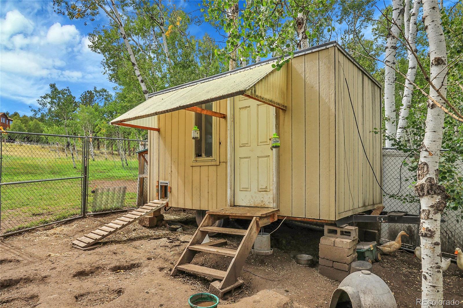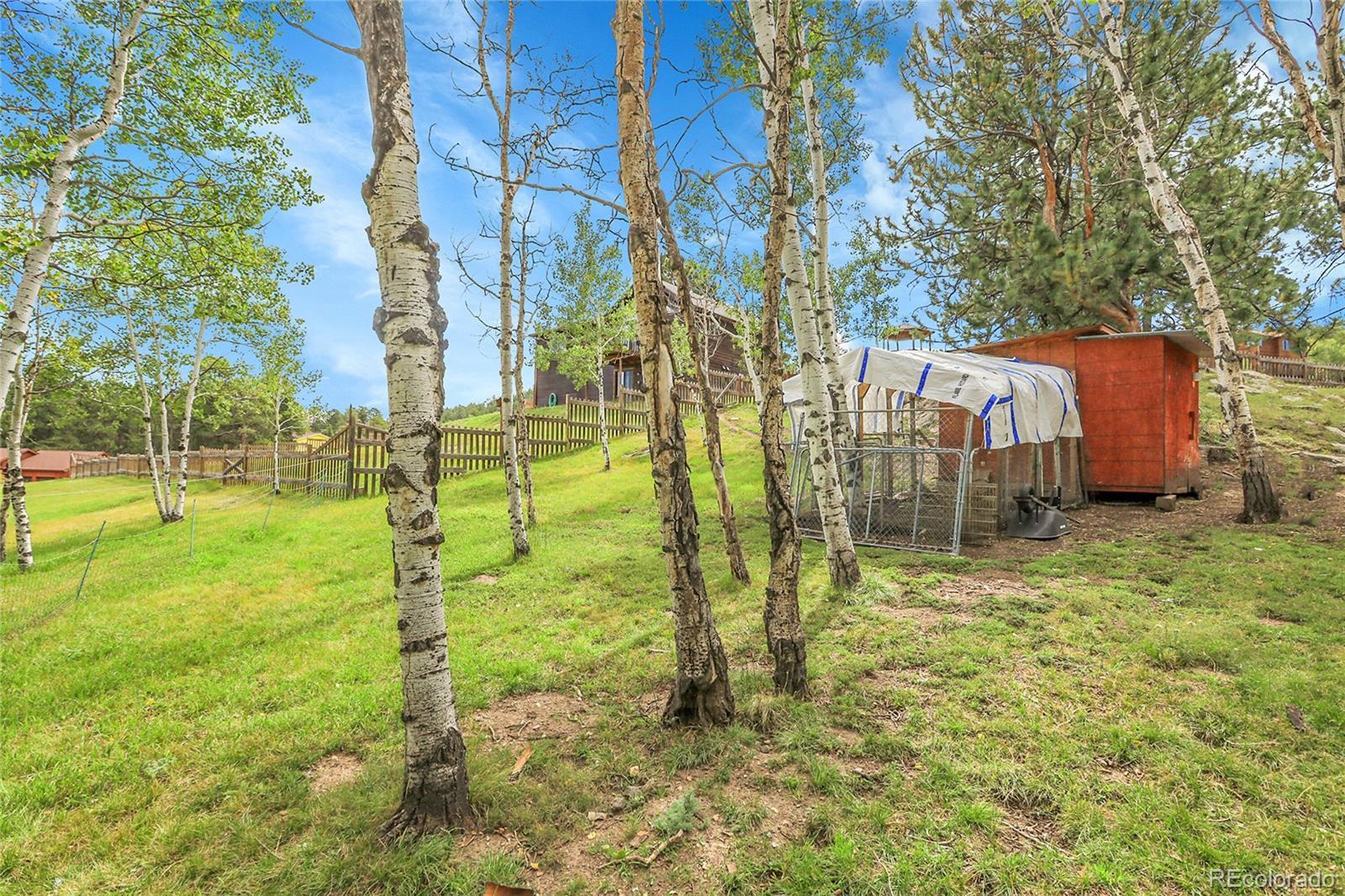 Mountain Living Meets Hobby Farm Potential in Bailey. Set on 2.5 acres of aspens, pines, and meadow, this property offers the ideal balance of mountain beauty, privacy, and a ready-made hobby farm lifestyle. Tucked back from the main road, you’ll enjoy peace, fresh air, and frequent visits from deer. The land is thoughtfully set up with multiple chicken coops and animal shelters, perfect for goats, ducks, or chickens. With watering rights and allowance for up to two horses, the property has excellent equestrian potential as well. Inside, vaulted ceilings with exposed wood beams create a warm and open feel in the main living area. The eat-in kitchen features oak cabinets and stainless steel appliances, blending functionality with mountain charm. Main level primary bedroom is complete with wood floors, walk in closet and an ensuite bath. Main level is complete with another bedroom and updated full bath. Downstairs offers a big mudroom featuring the laundry room, hickory cabinets & pellet stove is ideal after a day of playing in the mountains to keep the mud and gear localized. The cozy living room with wood paneling and built-in shelving is perfect for relaxing or gathering with family and friends. Lower level bedroom enjoys wood paneling and is conveniently located next to the lower level updated full bath. The deck overlooks the meadow, making it the perfect spot to watch your animals roam, take in colorful sunsets, or enjoy a quiet cup of coffee in the mornings. Property includes 2 water stock shares that allows for the watering rights of animals. All this comes with the bonus of being just minutes from Bailey’s restaurants, shops, the Sasquatch Outpost, and access to hiking trails that make the area so special.