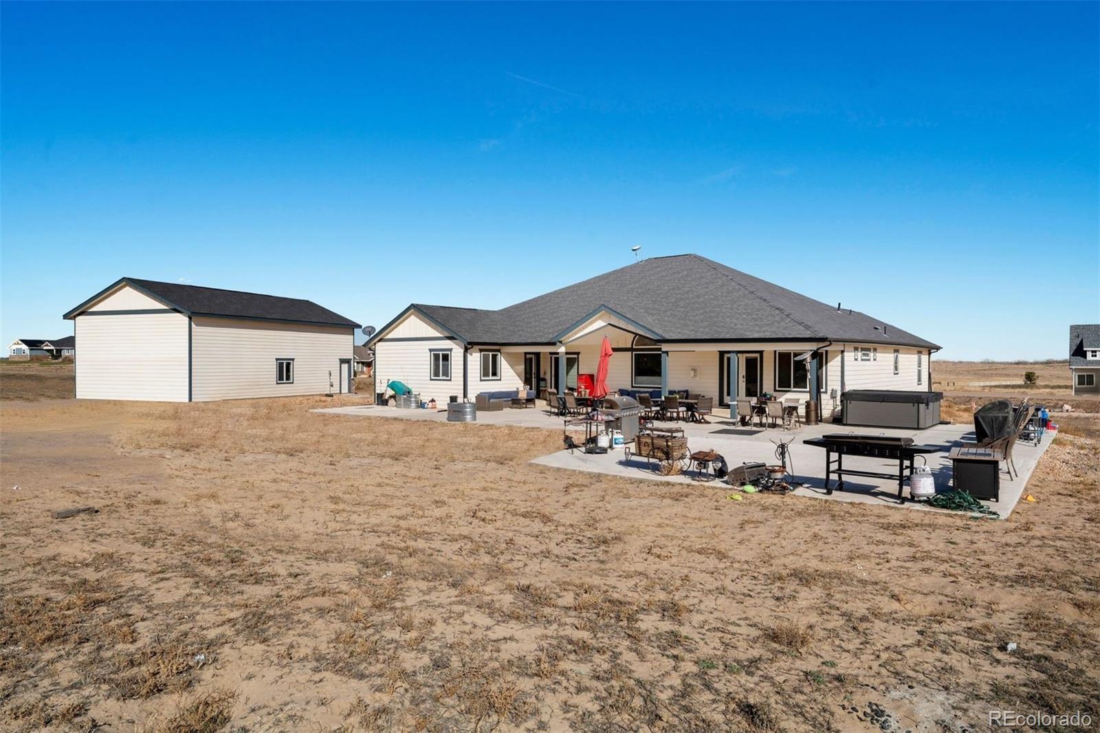 Discover this exceptional 5-bedroom, 4-bath equestrian smart home estate set on 5.52 flat, fully usable acres in the highly sought-after Pelican Lake Ranch community. With multi-generational living potential, three en-suite primary bedrooms, and a modern open-concept layout, this home blends comfort with contemporary convenience. Features include smart home systems, nearly new appliances with a gas range, granite counters, soft-close cabinets, laminate flooring, a gas fireplace, a tankless water heater, and a spacious 3-car garage. With 9-ft ceilings, generous rough-ins, and upgraded window well safety features, the unfinished basement is perfectly suited for creating a personalized extension of the home. Outdoors, the property shines with a fruit orchard in progress, a 40' x 25' barn with 100-amp service, and plenty of room to add additional outbuildings. A rare, fully paid Central Weld County water tap provides an extraordinary 300,000 gallons per year for irrigation, livestock, and landscaping—an unmatched benefit in the area. Additional perks include an oversized septic system, underground oil lease income of approx. $320/month, and breathtaking views from every angle. Pelican Lake Ranch offers resort-style amenities, including bridle paths, miles of horse trails, horse arena, pool, tennis, pickleball, and basketball courts. Residents also enjoy playgrounds, and event space. This rare property combines acreage, luxury, functionality, and lifestyle, perfect for anyone seeking peaceful rural living with top-tier amenities.